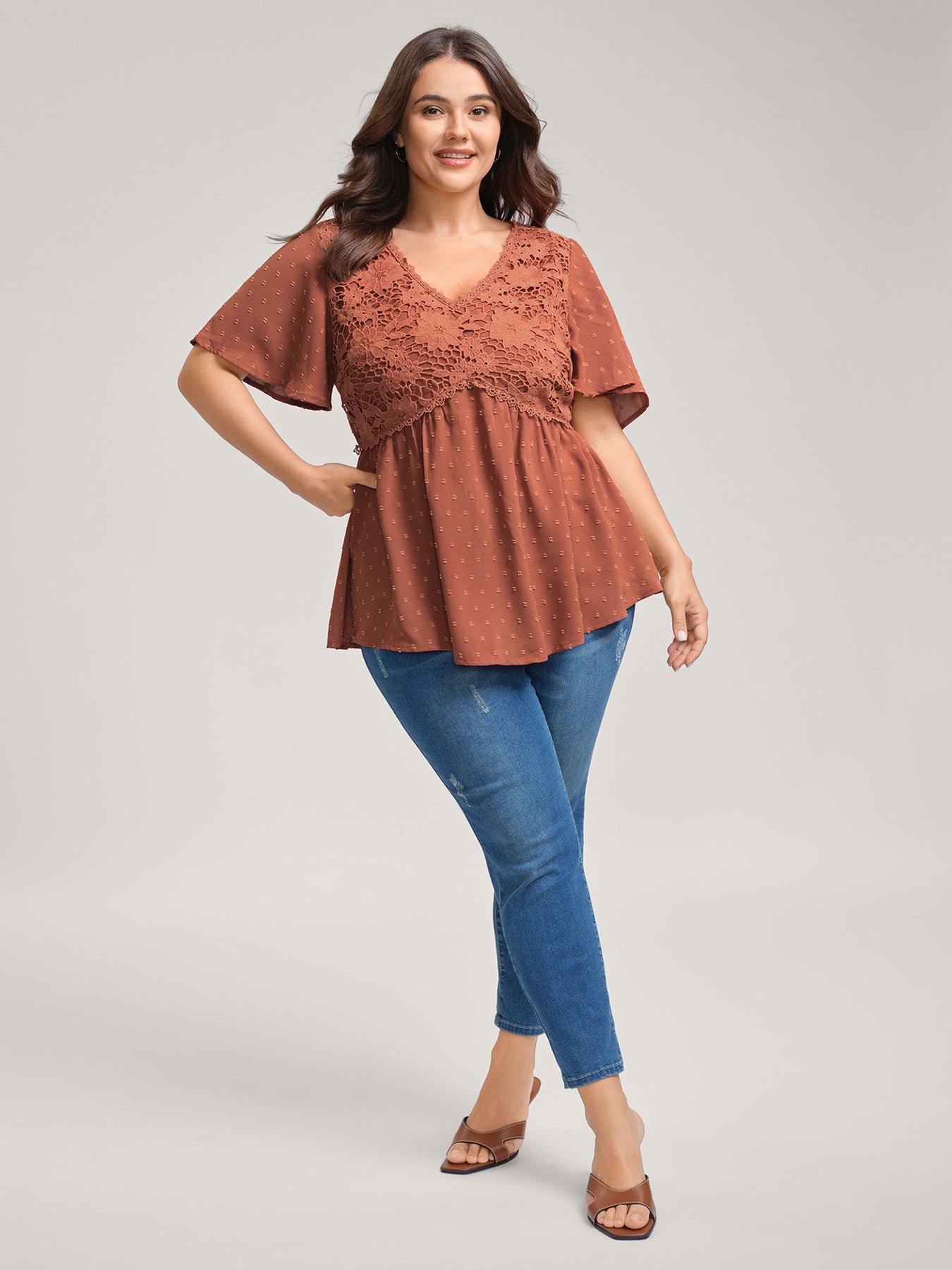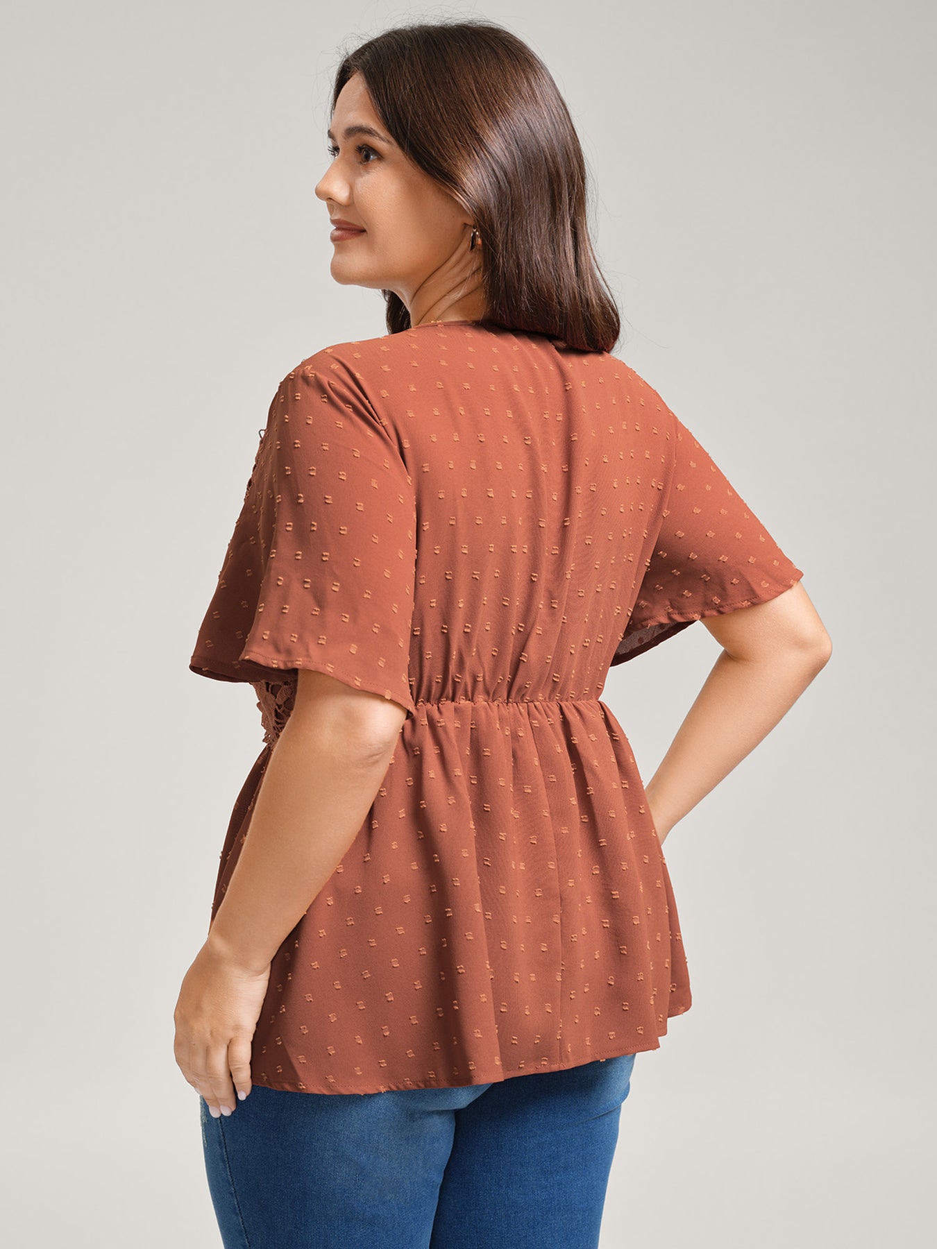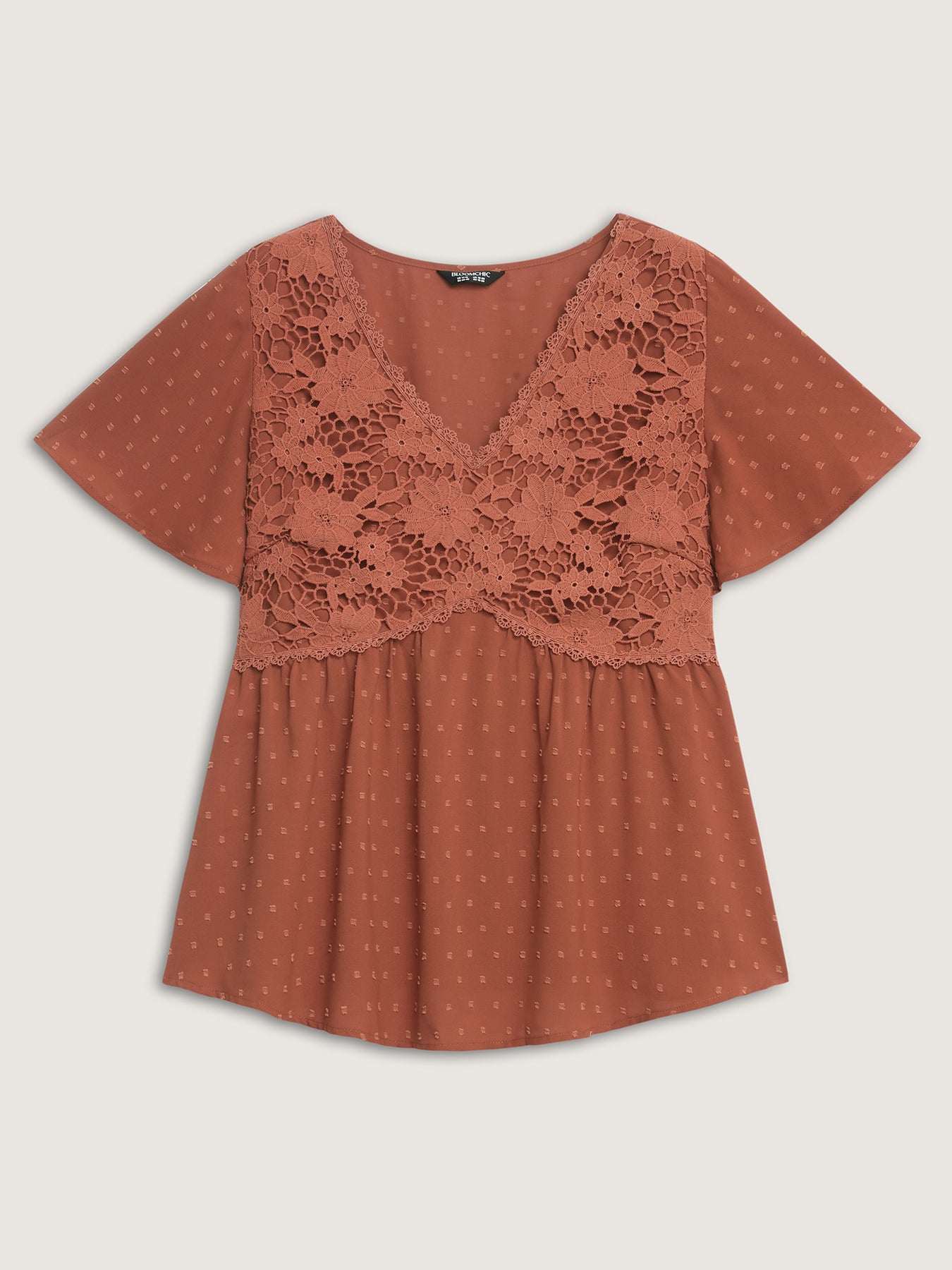 Lace Textured Cinched-Flared Waist Blouse