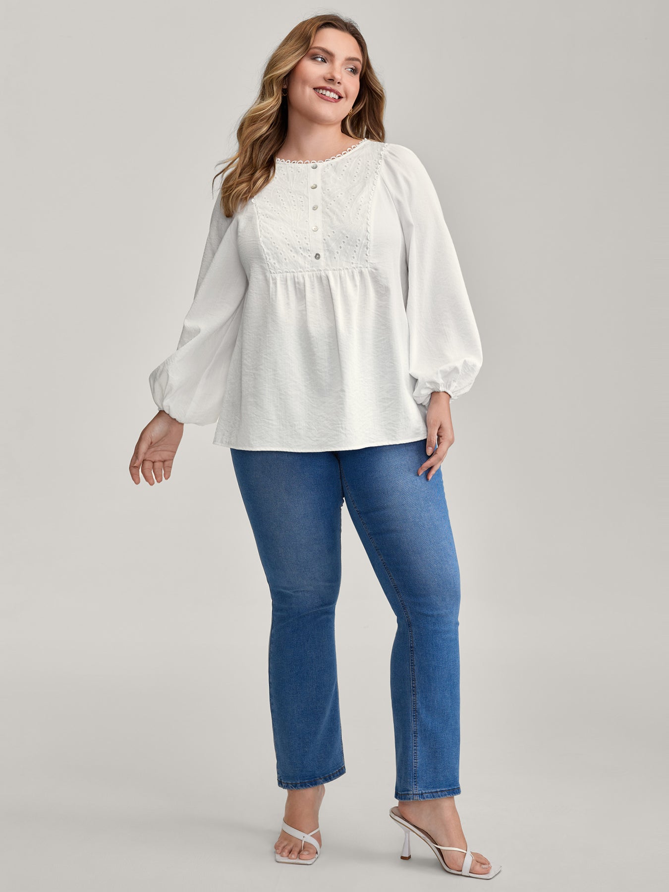 Lace Trim Button Decor Blouse