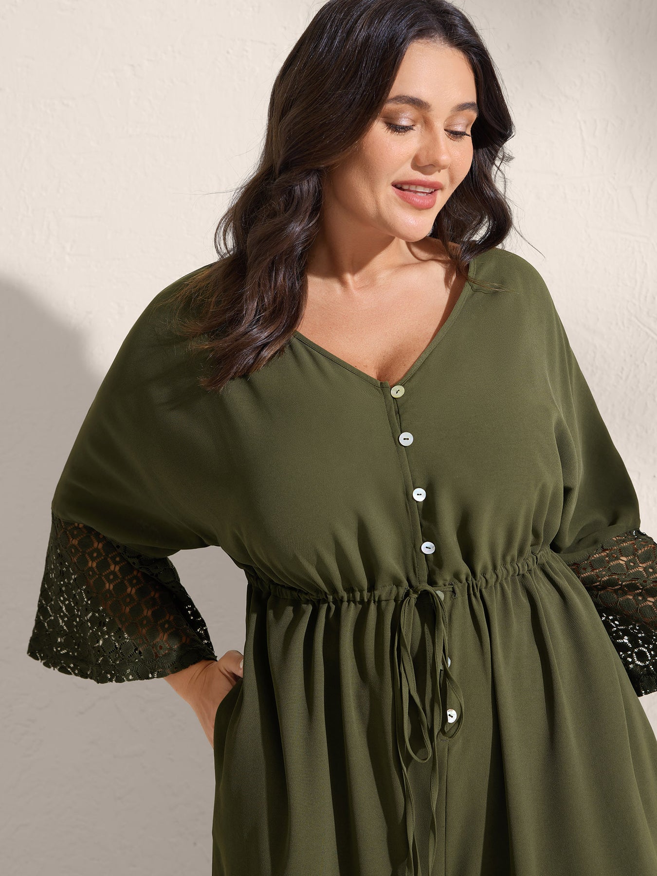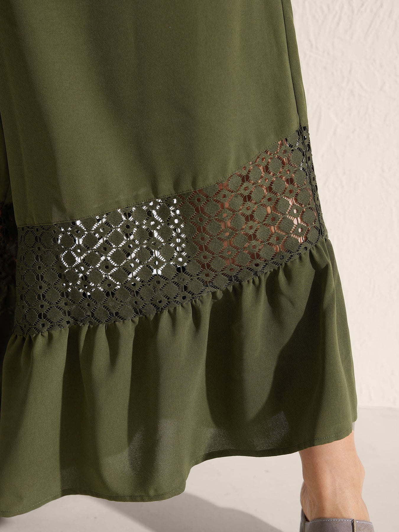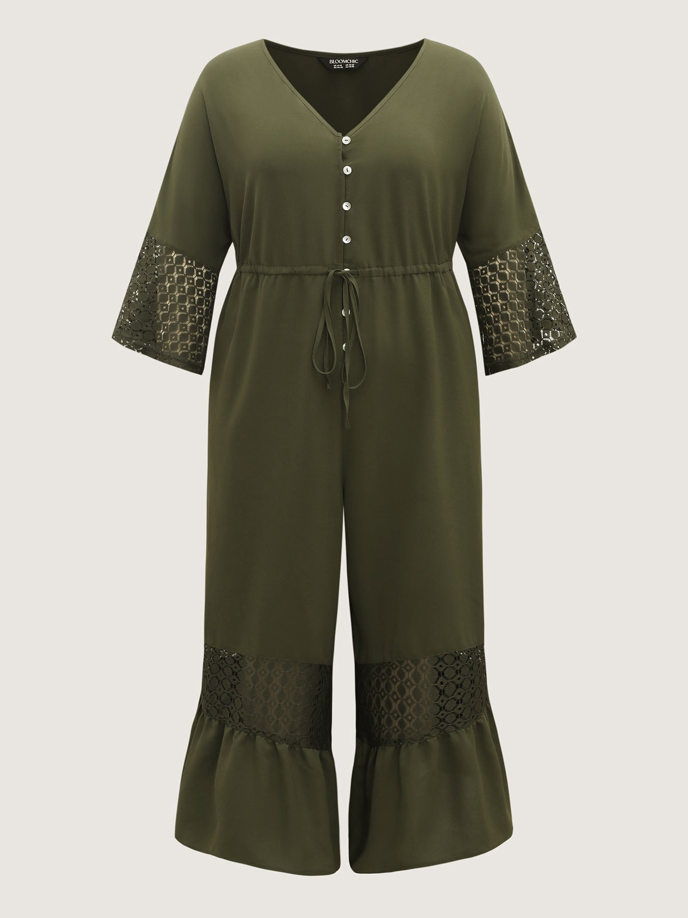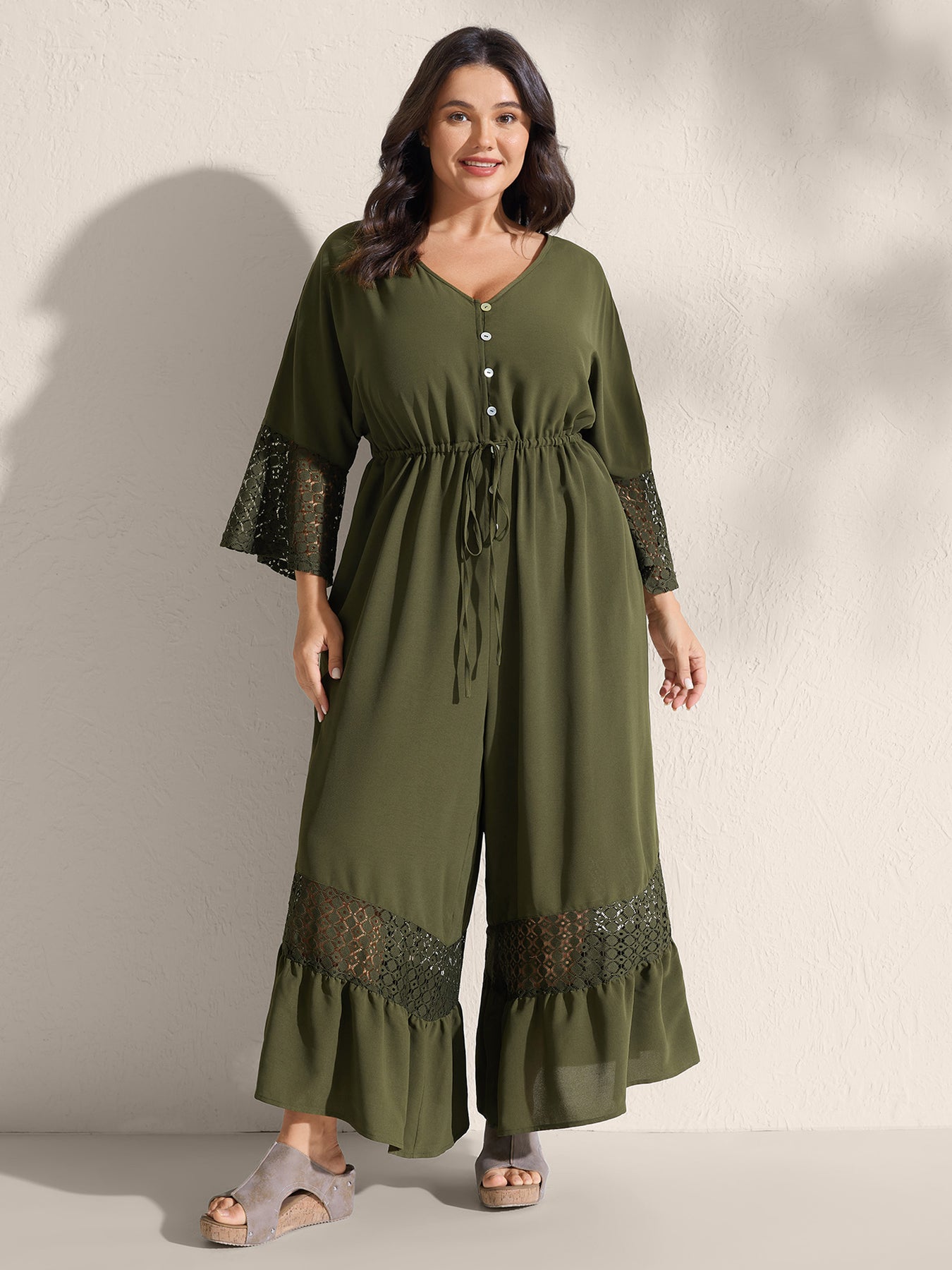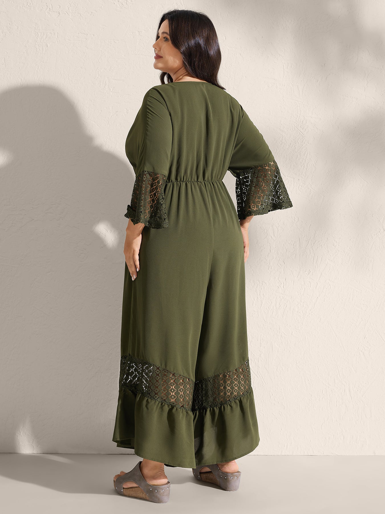 Lace Trim Curvy Tiered Hem Jumpsuit