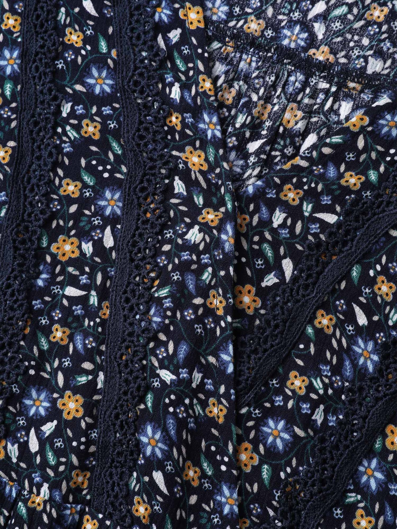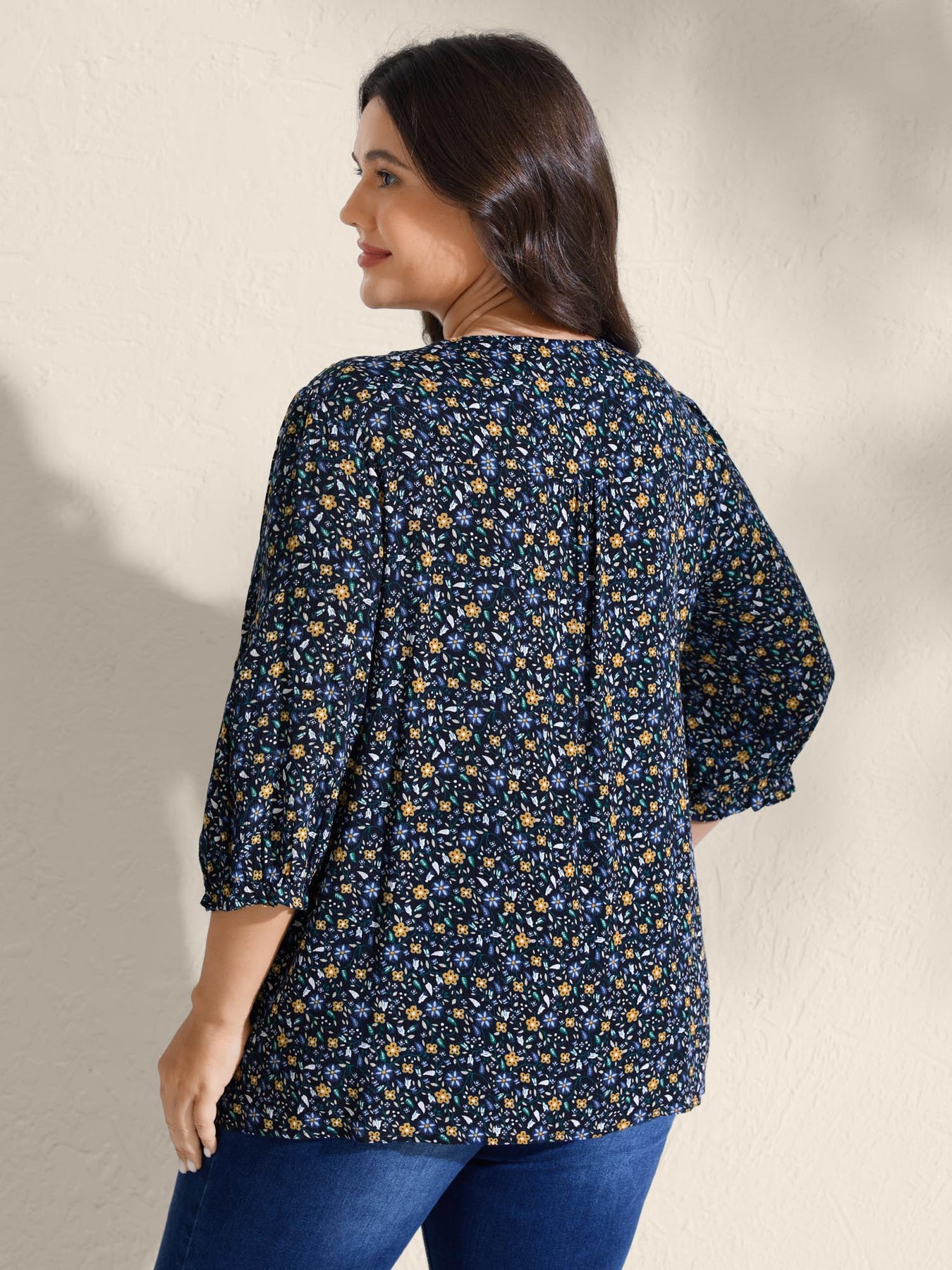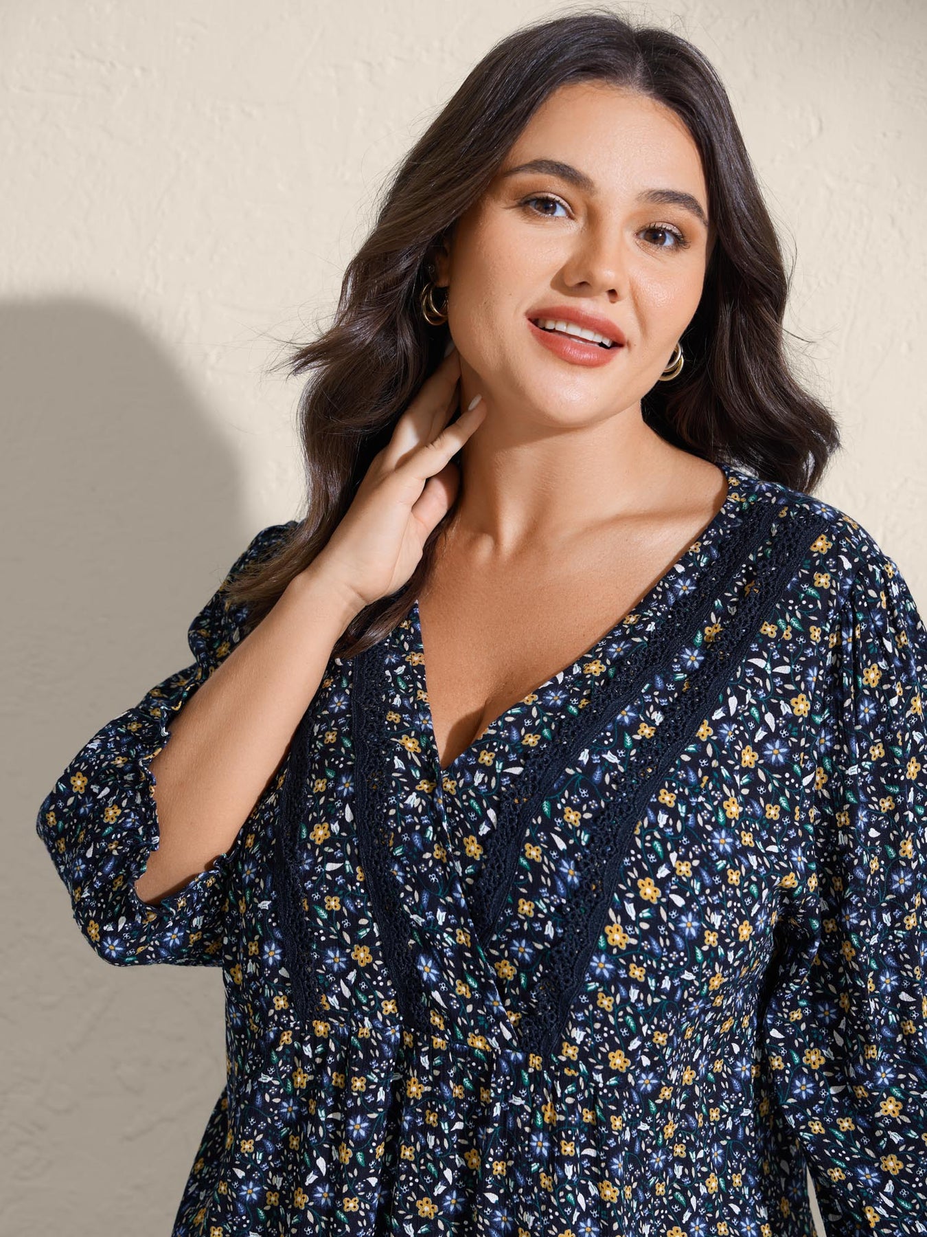 Supersoft Lace Trim Floral Print V-Neck Blouse