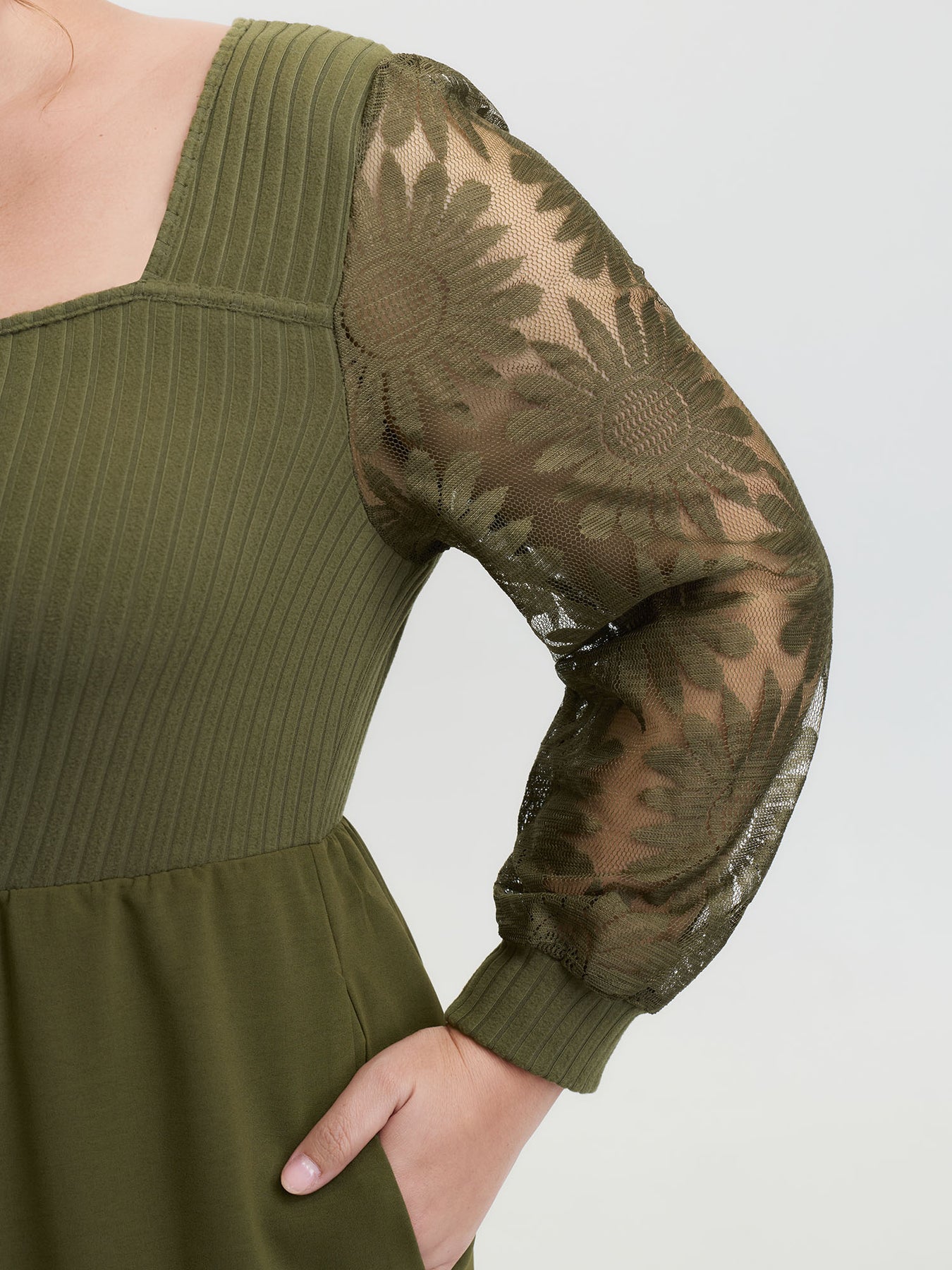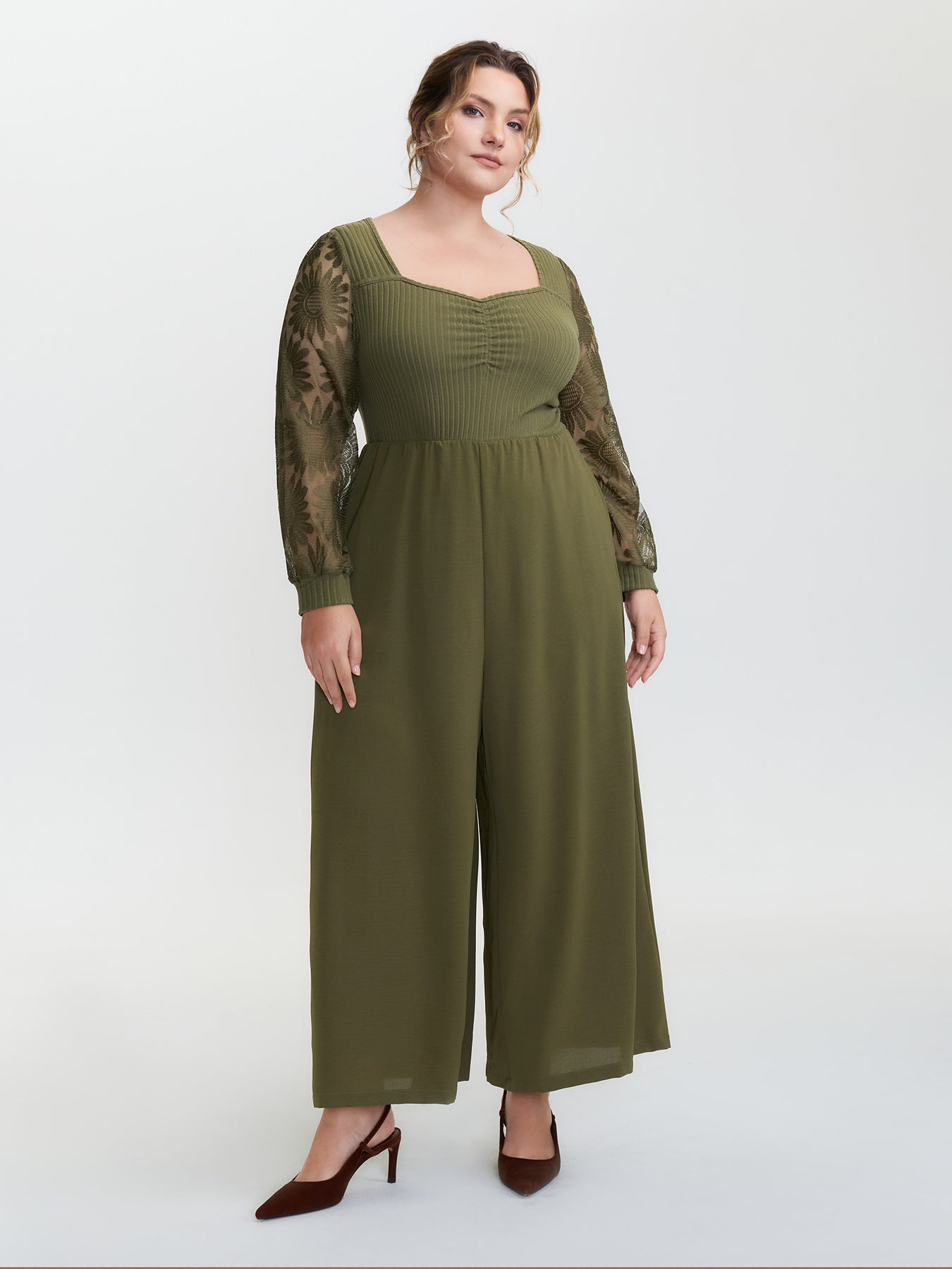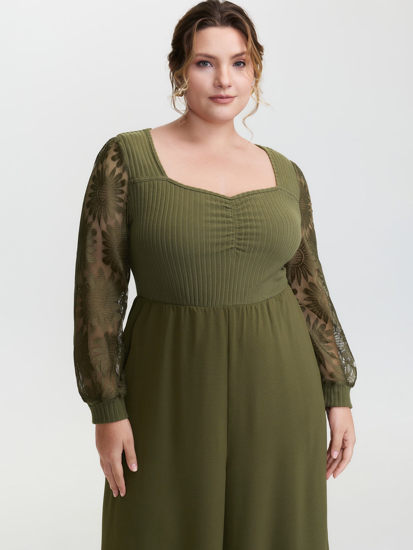 Lace Trim Ruched Velvety Bodice Jumpsuit