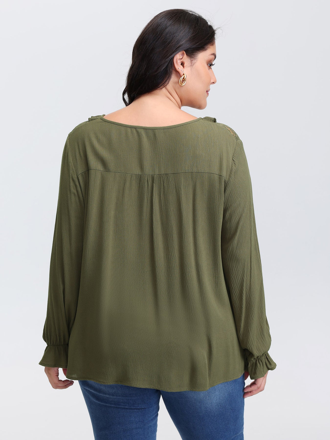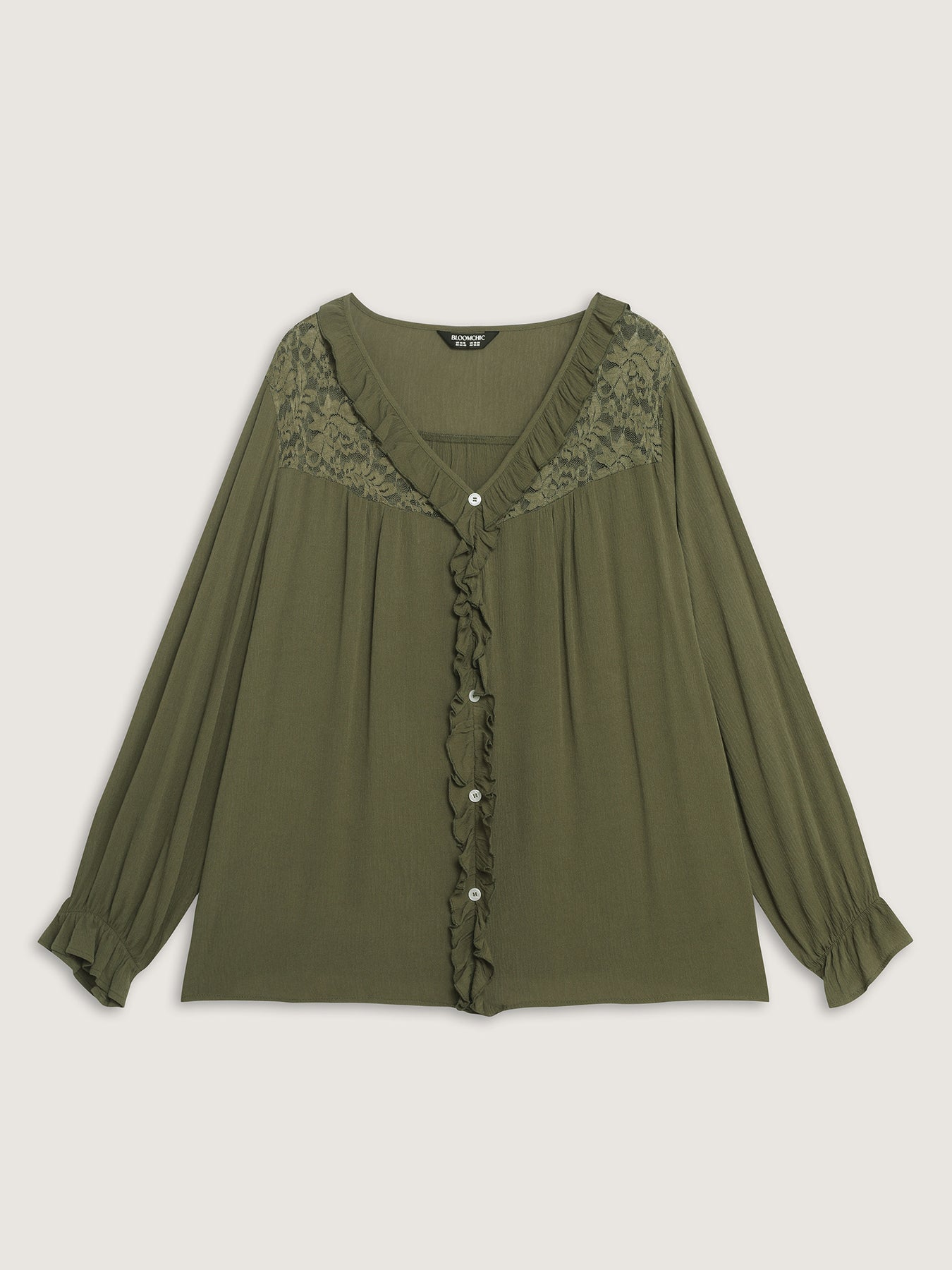 Lace Trim Ruffled Edge Button Blouse
