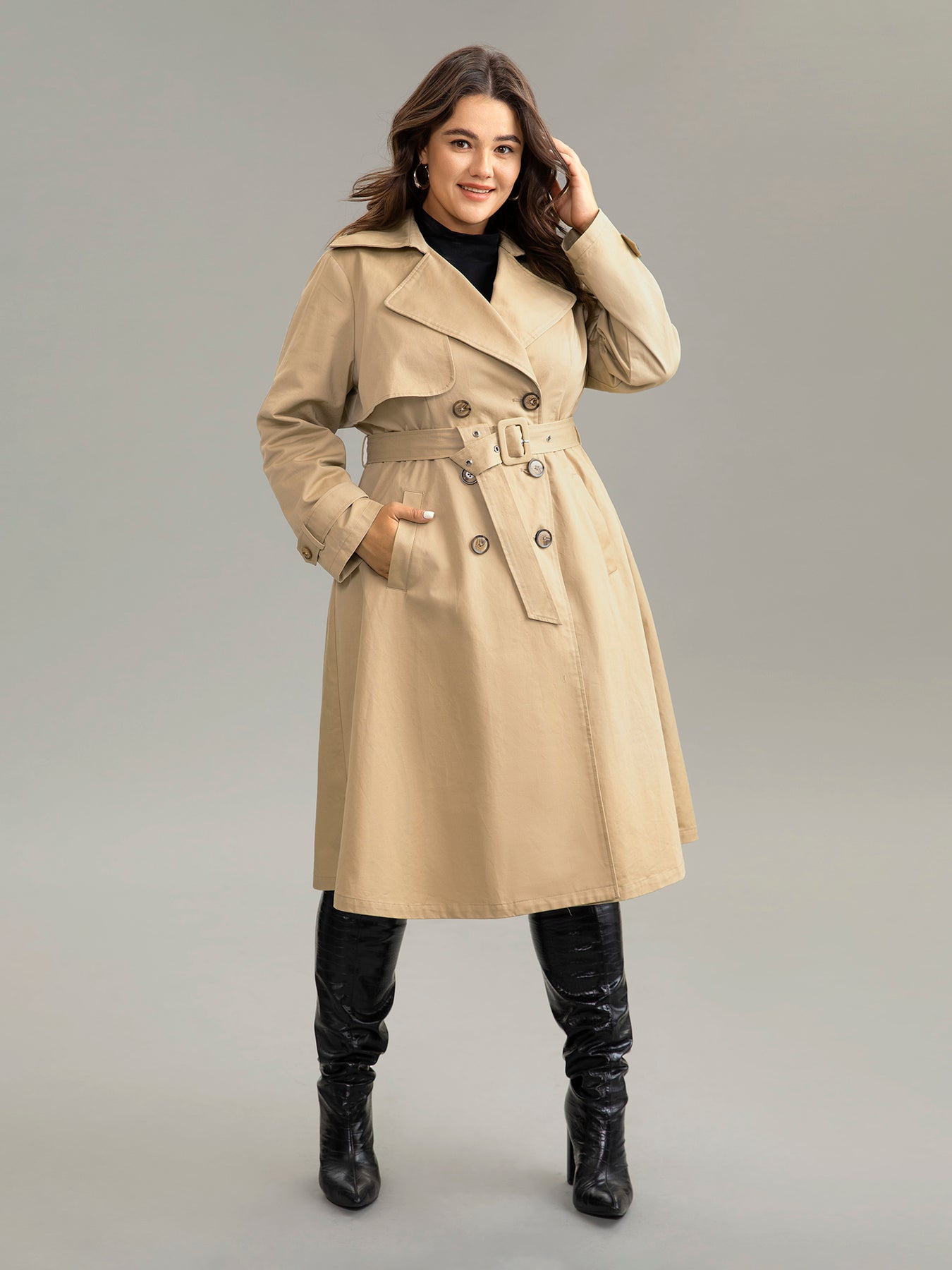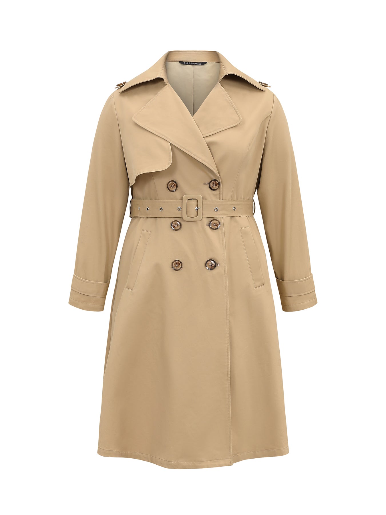 Lapel Collar Belted Buckle Detail Double Breasted Coat