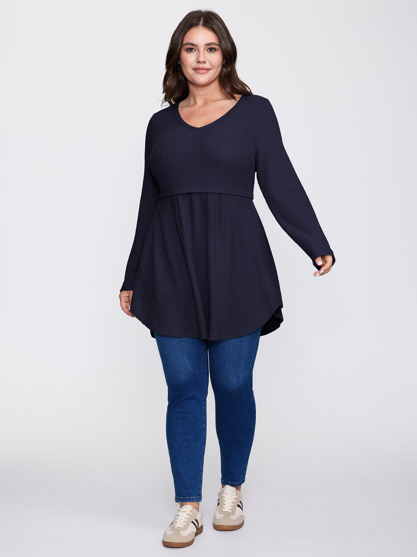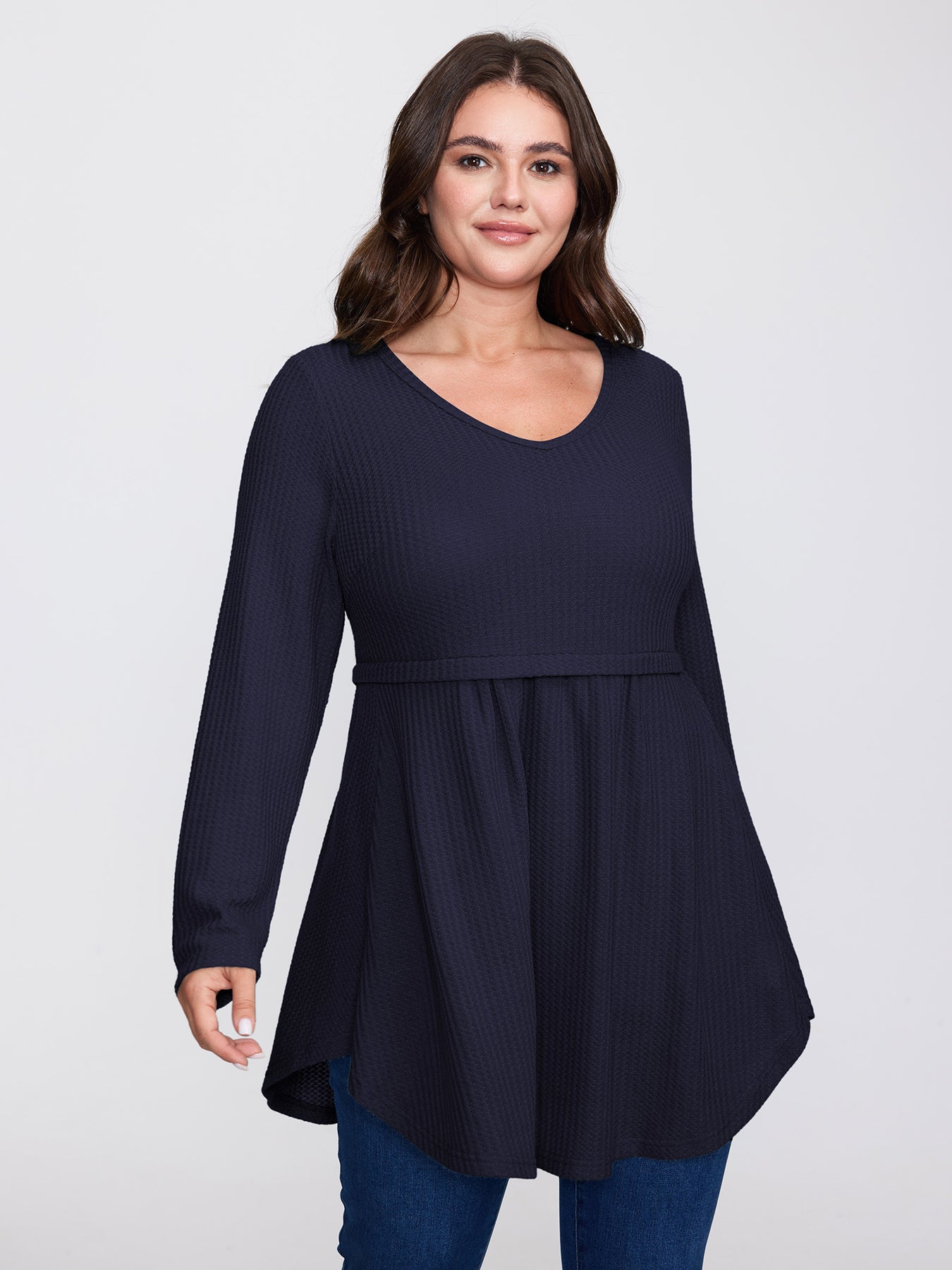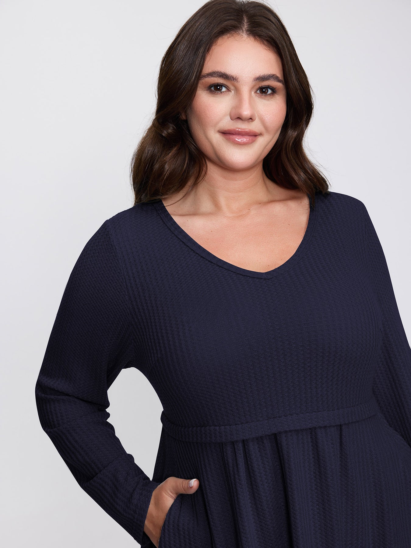 Layered V-Neck Fit and Flare Knit Top