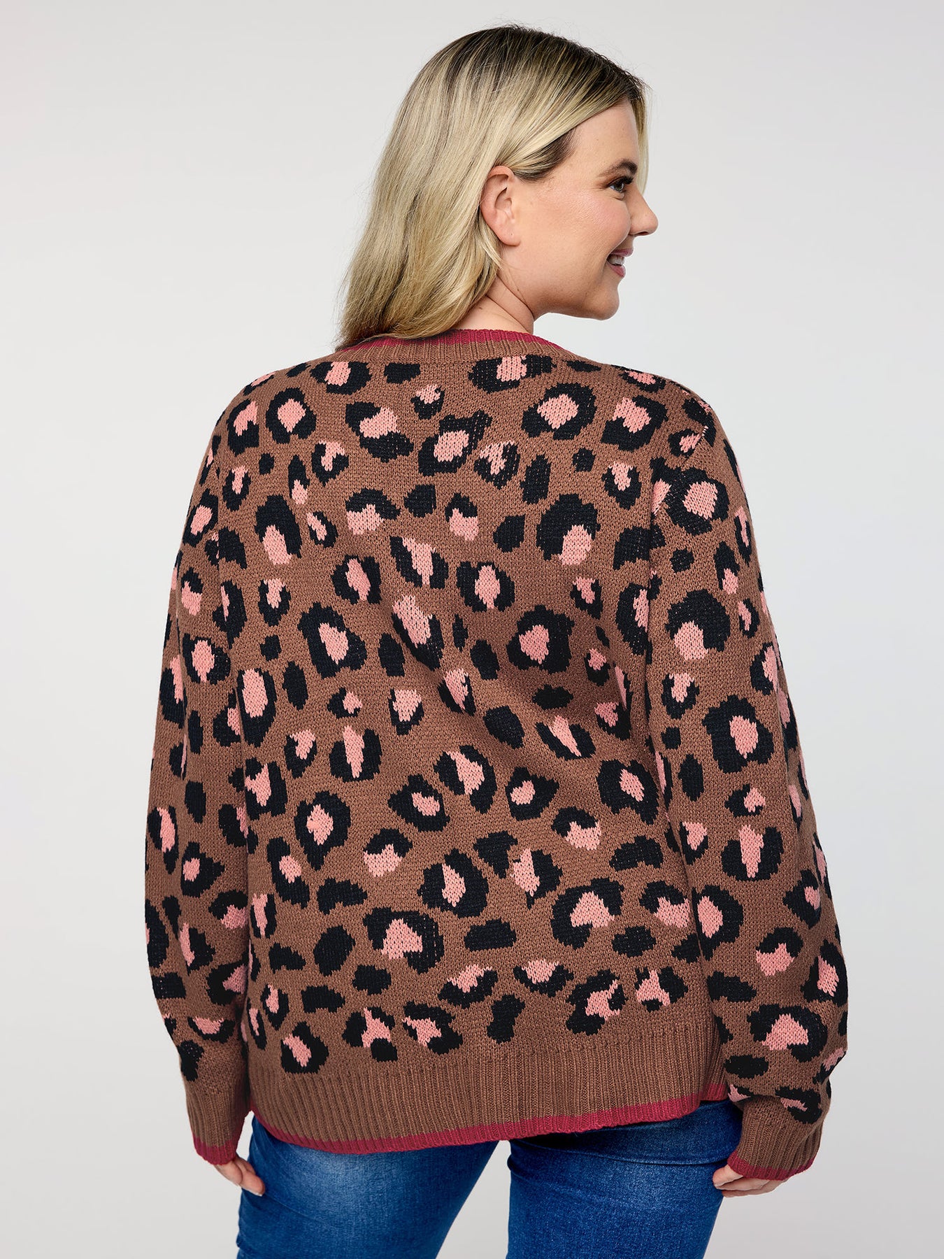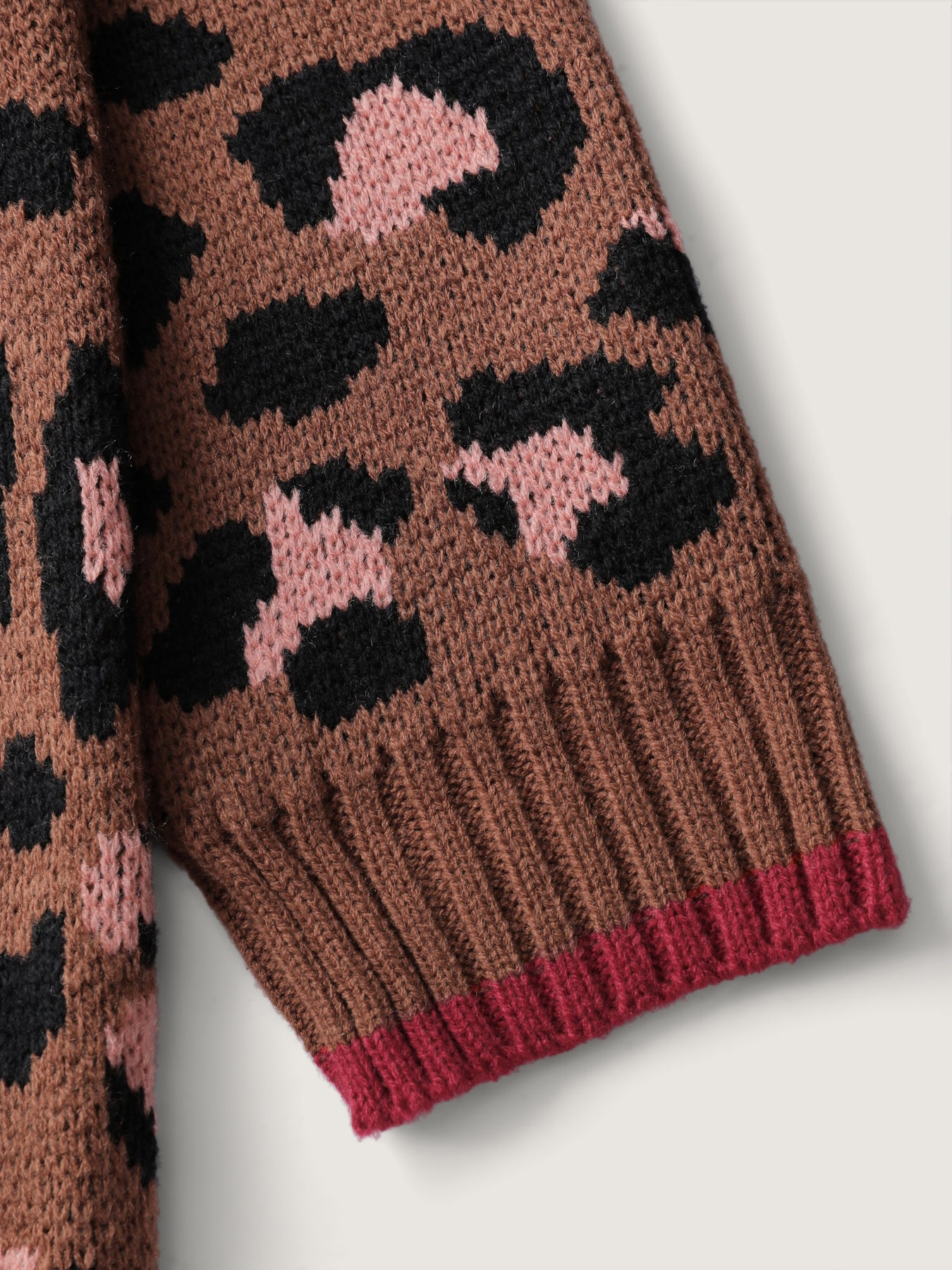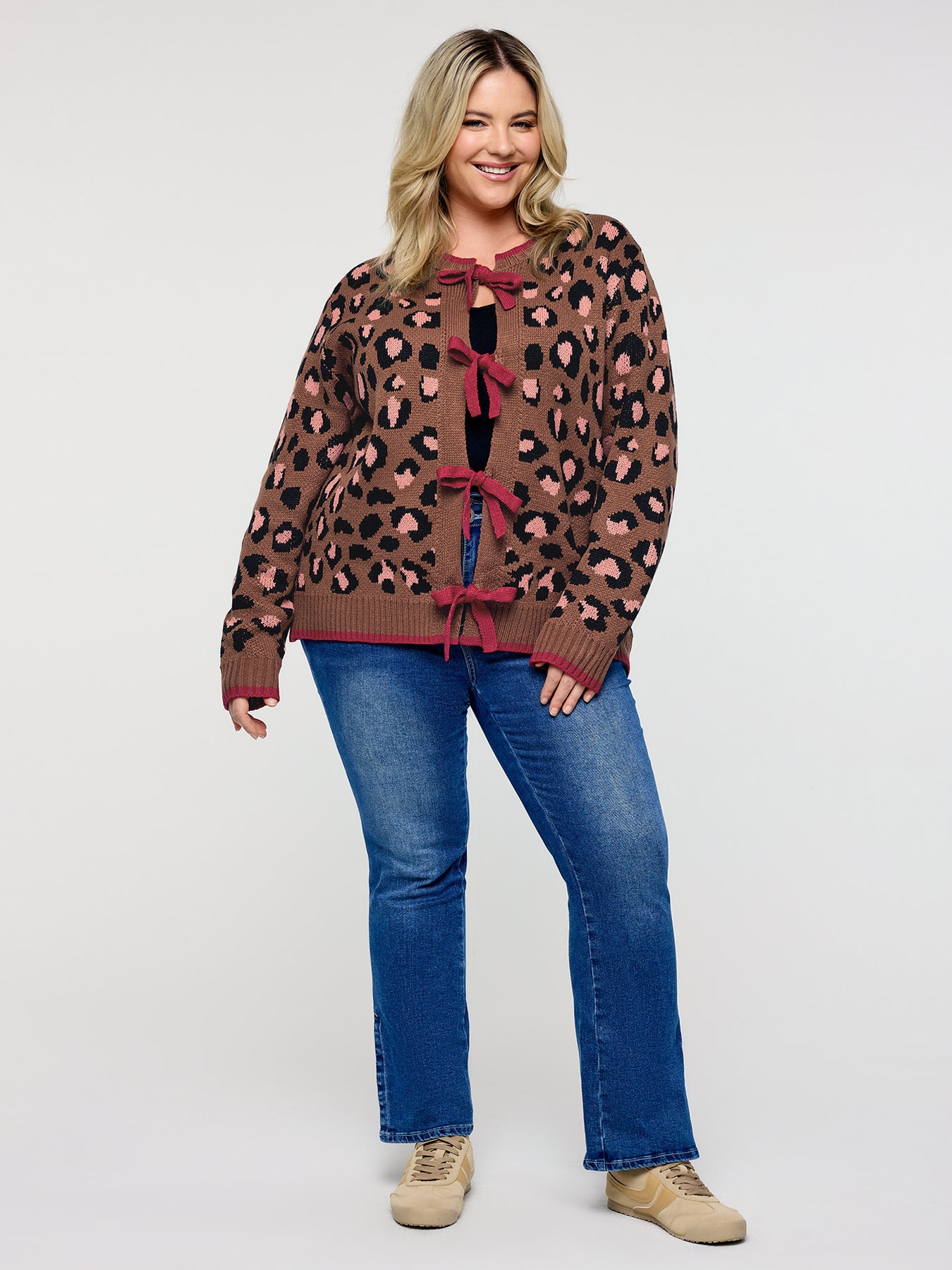 Leopard Pattern Color Contrast Bow Knit Cardigan