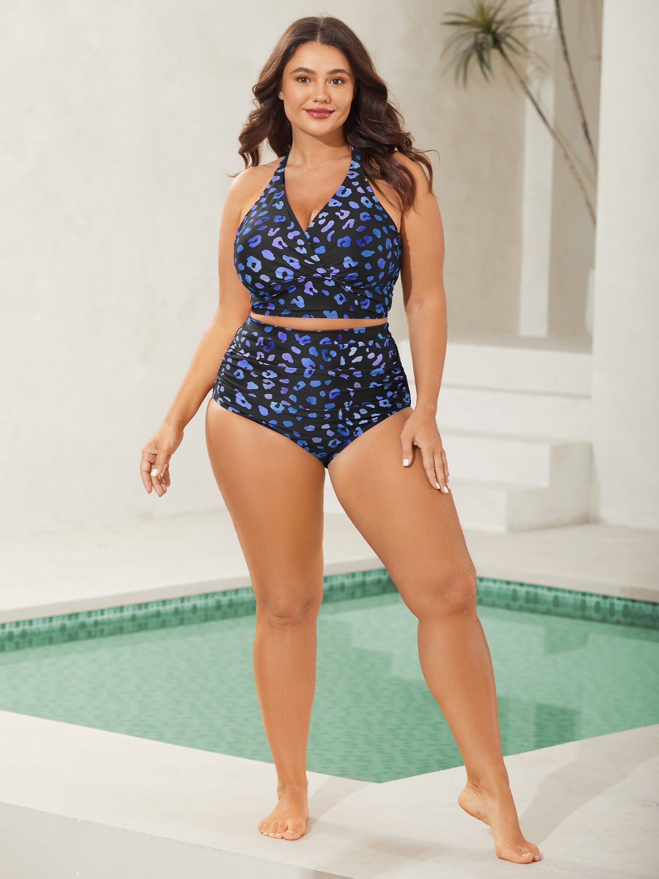 Pattern Print Cross-Straps Swim Top