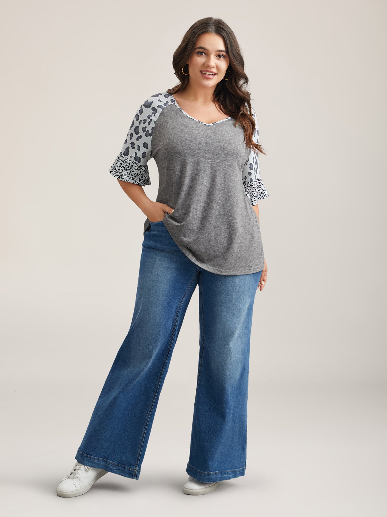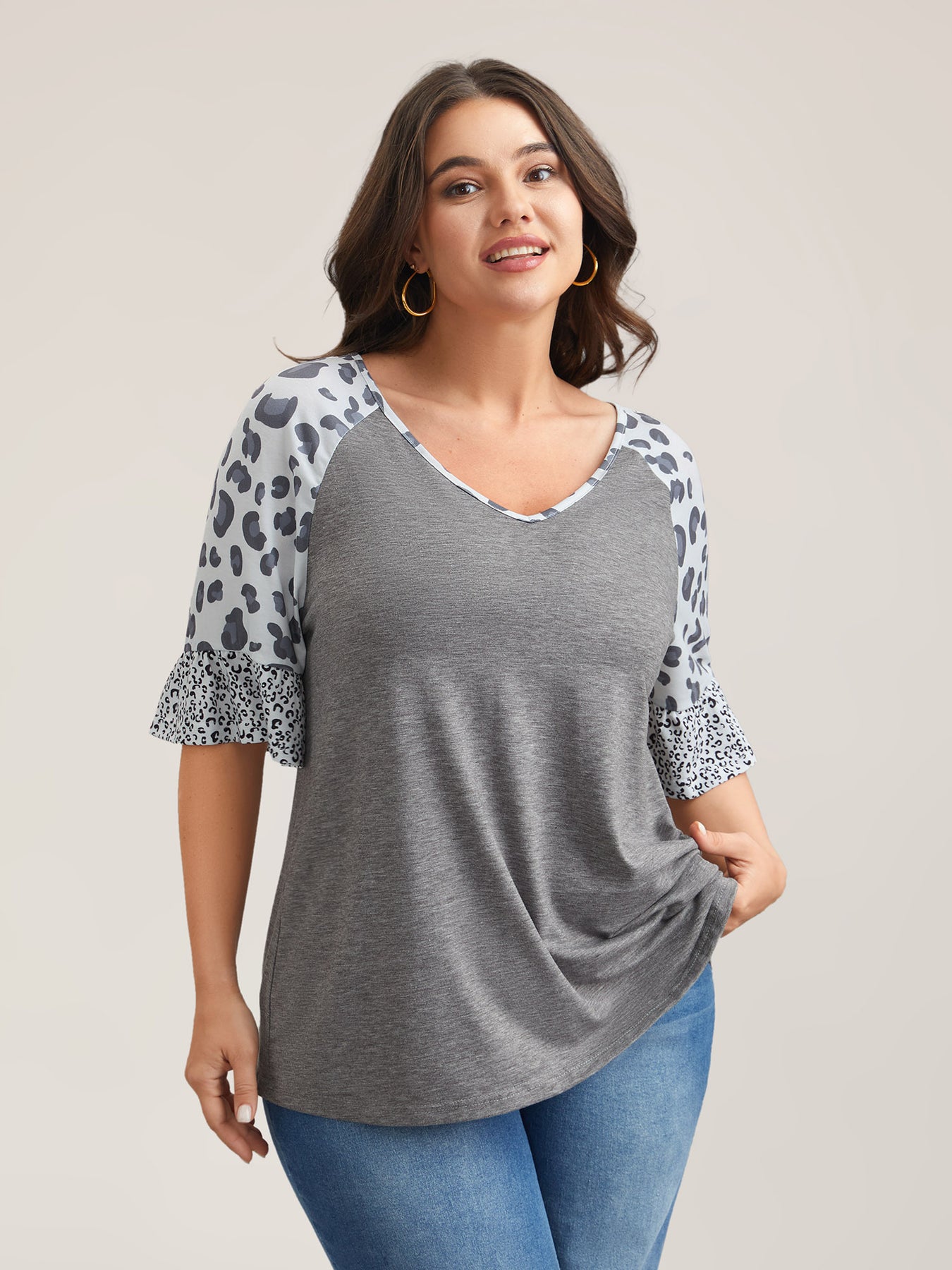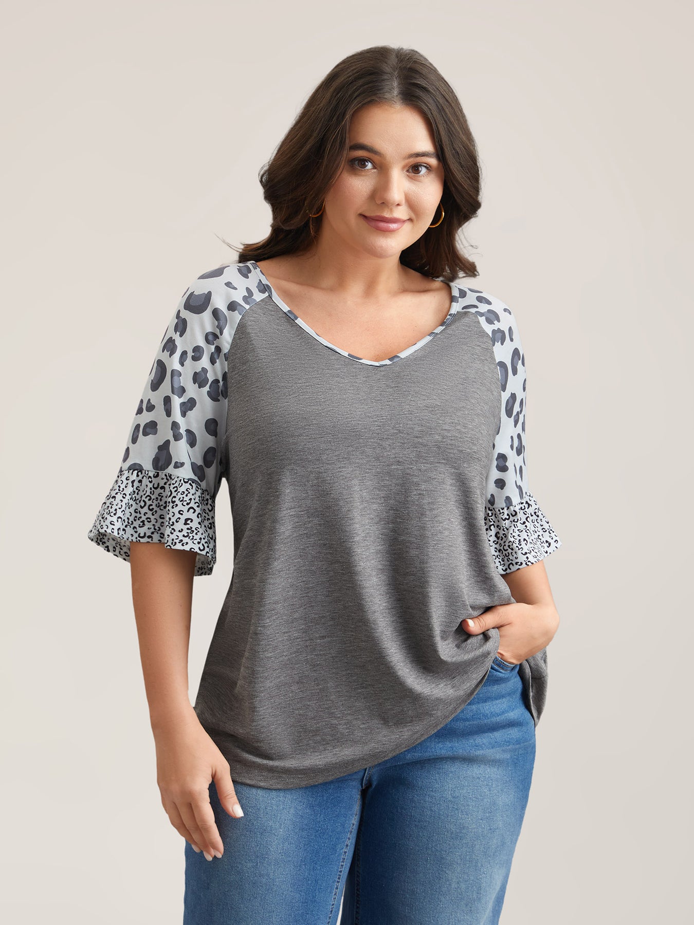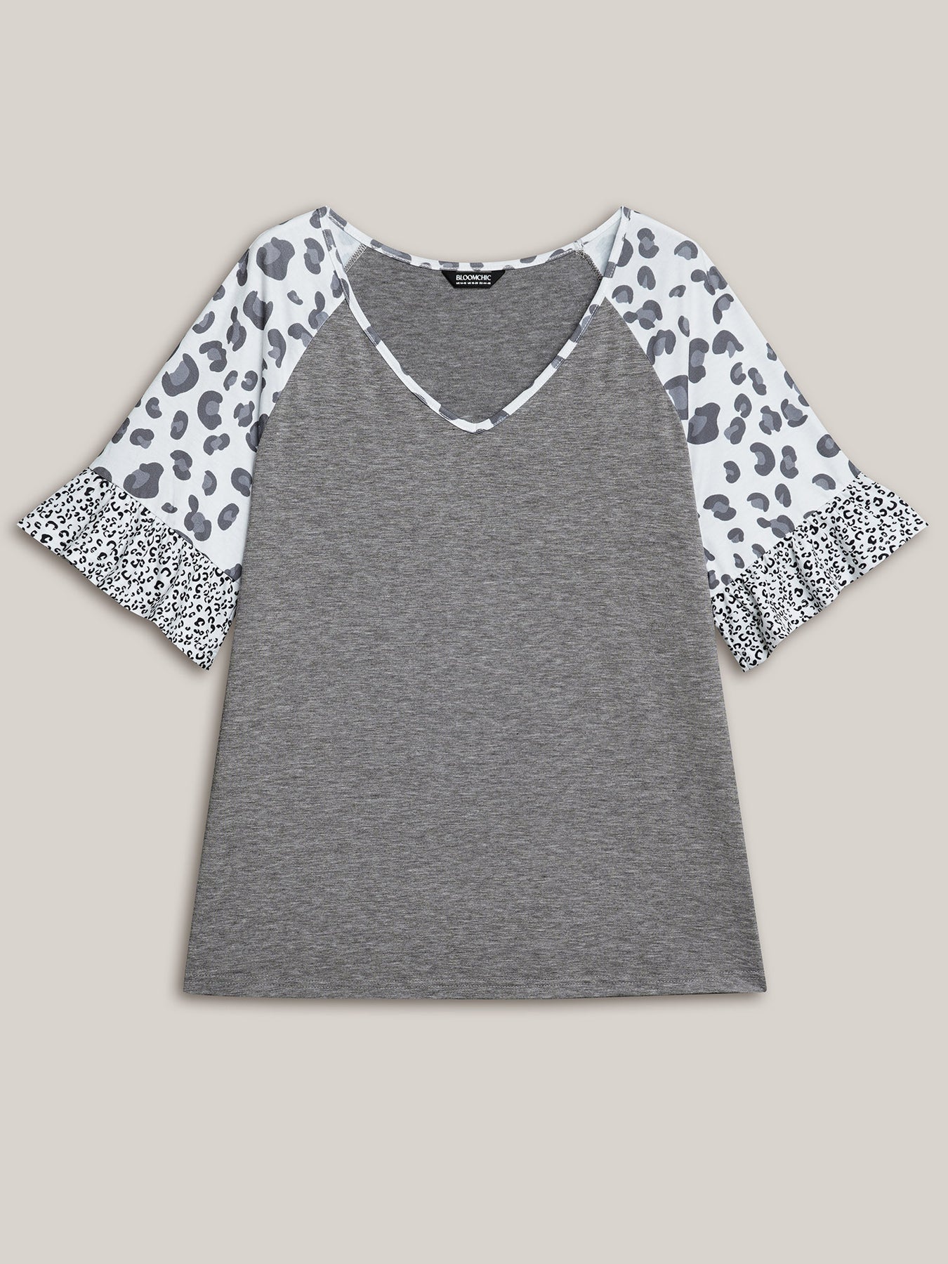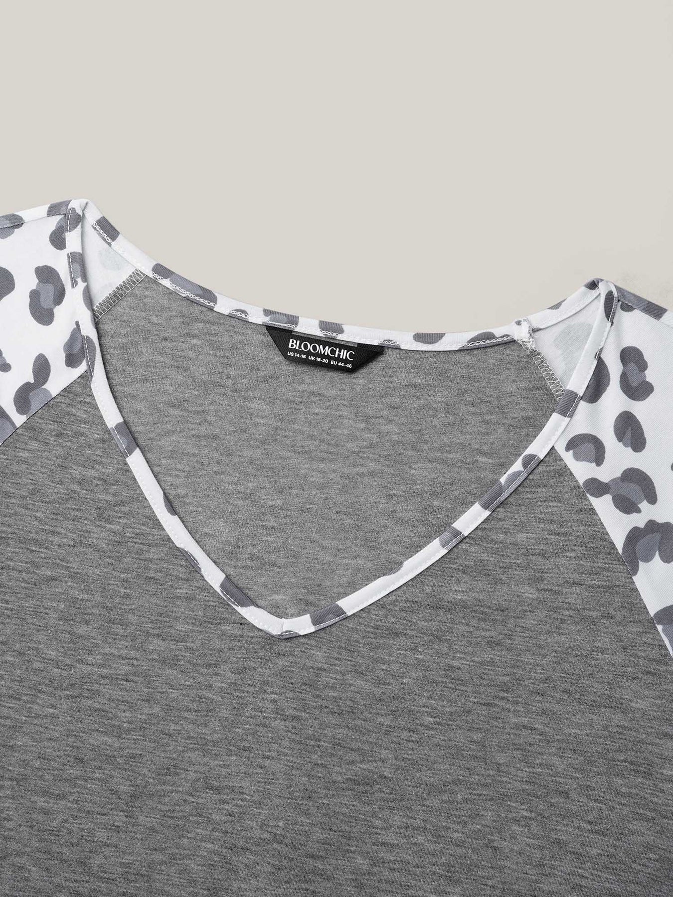 Leopard Print Heather Contrast V-Neck T-Shirt
