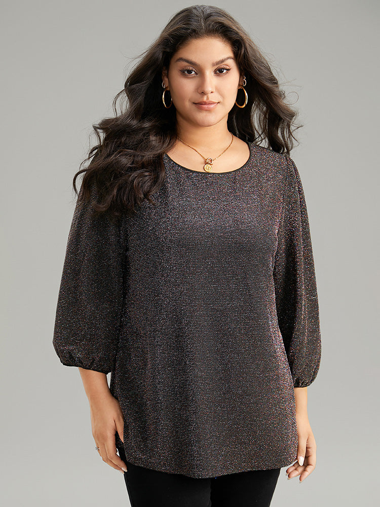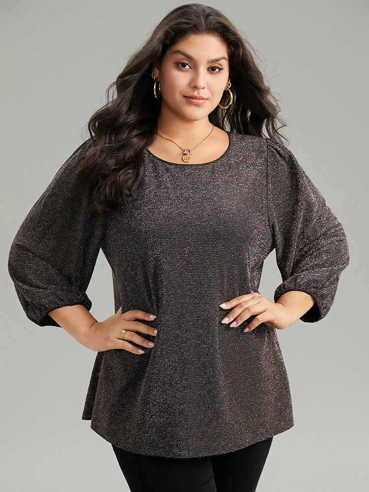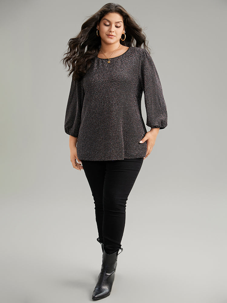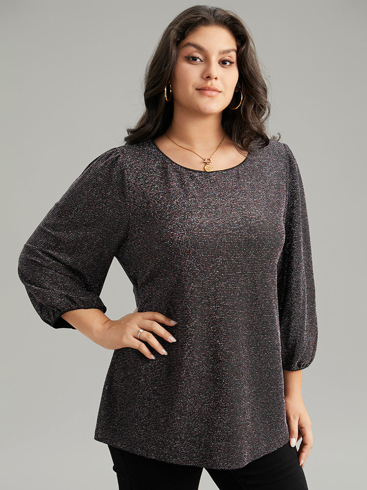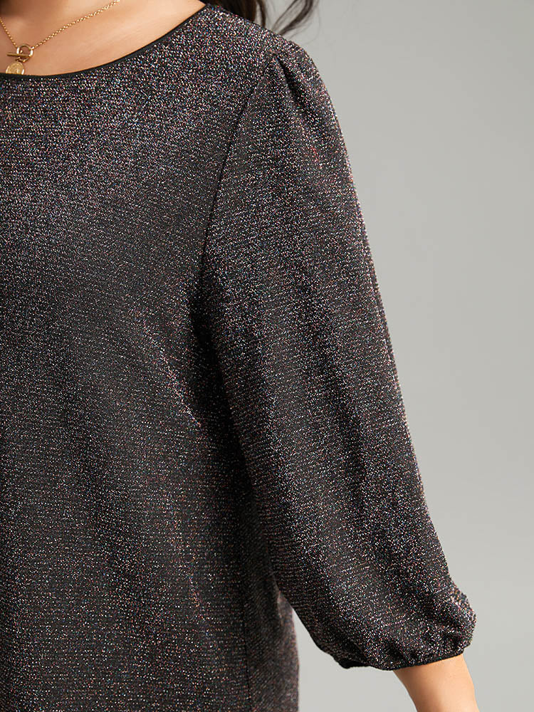 Lurex Round Neck Lantern Sleeve T-shirt