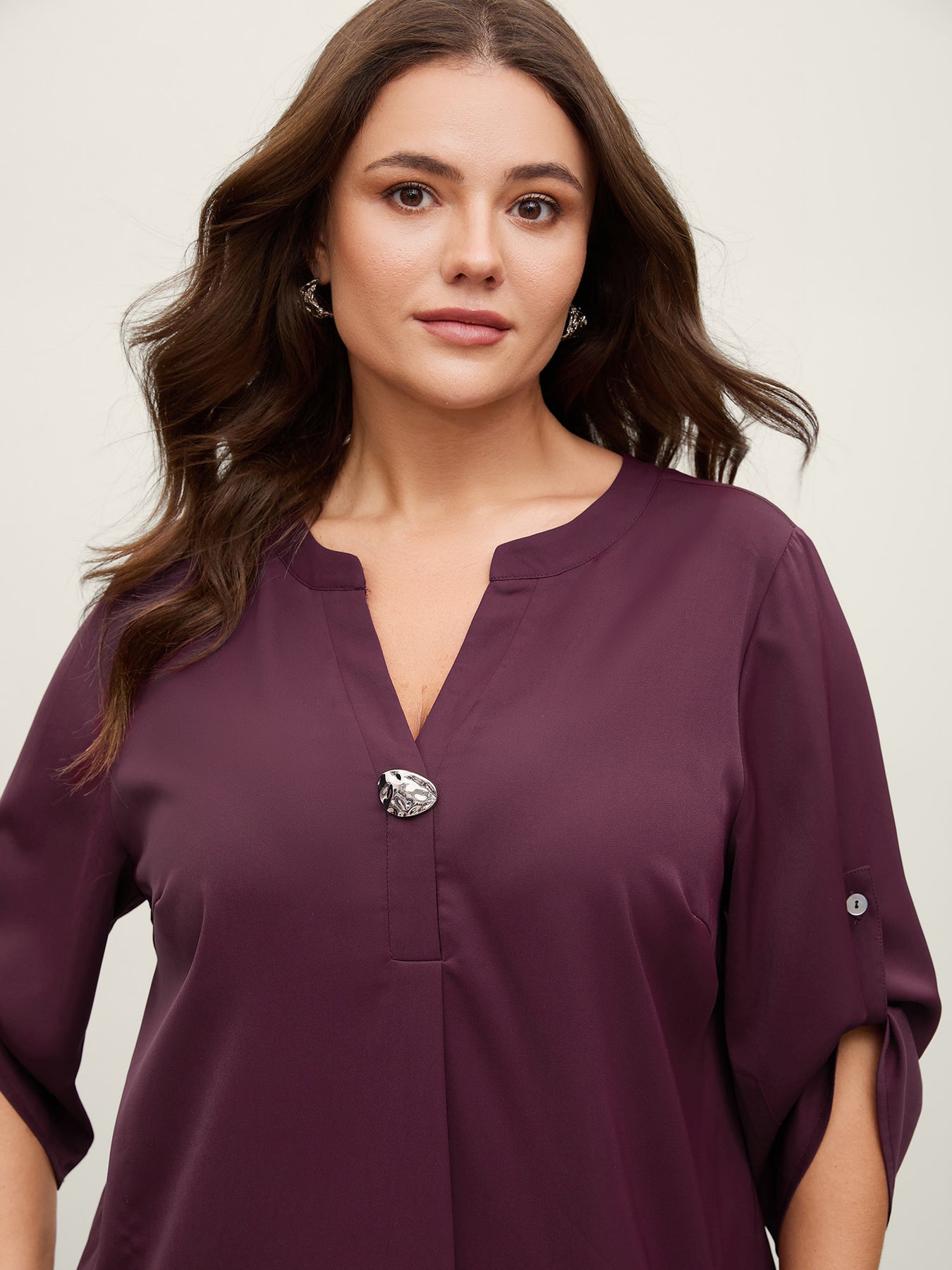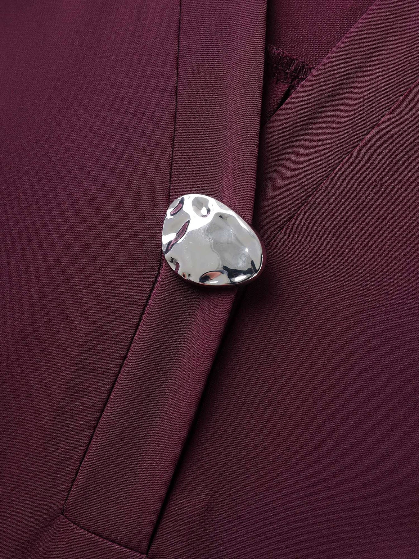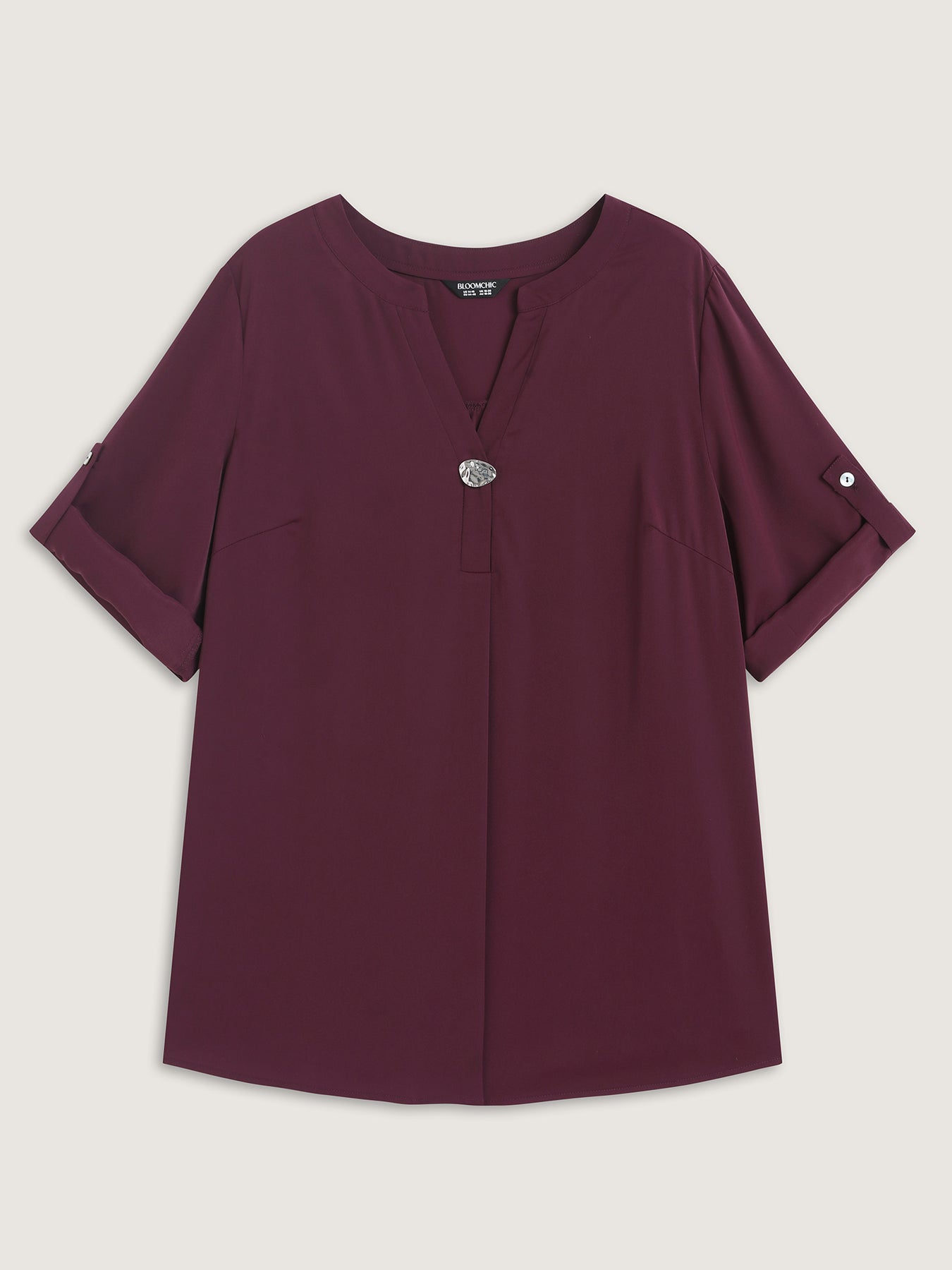 Metal Buckle Neckline Solid Blouse
