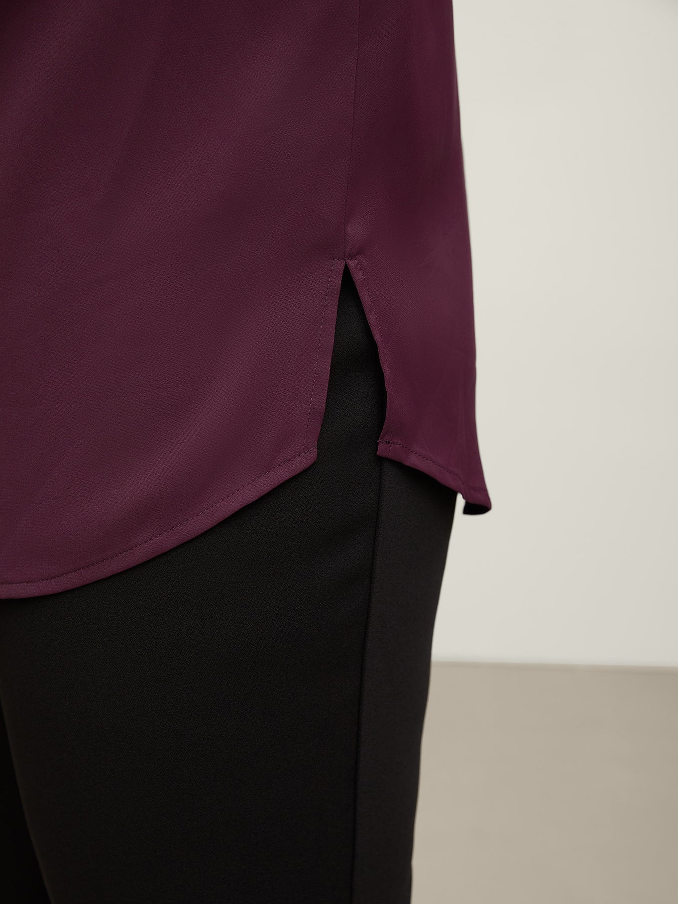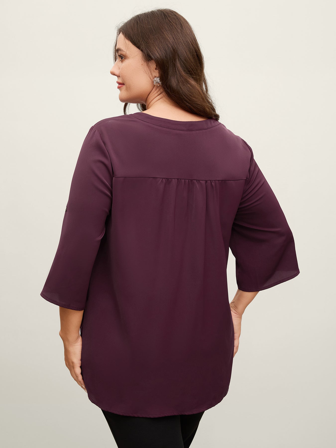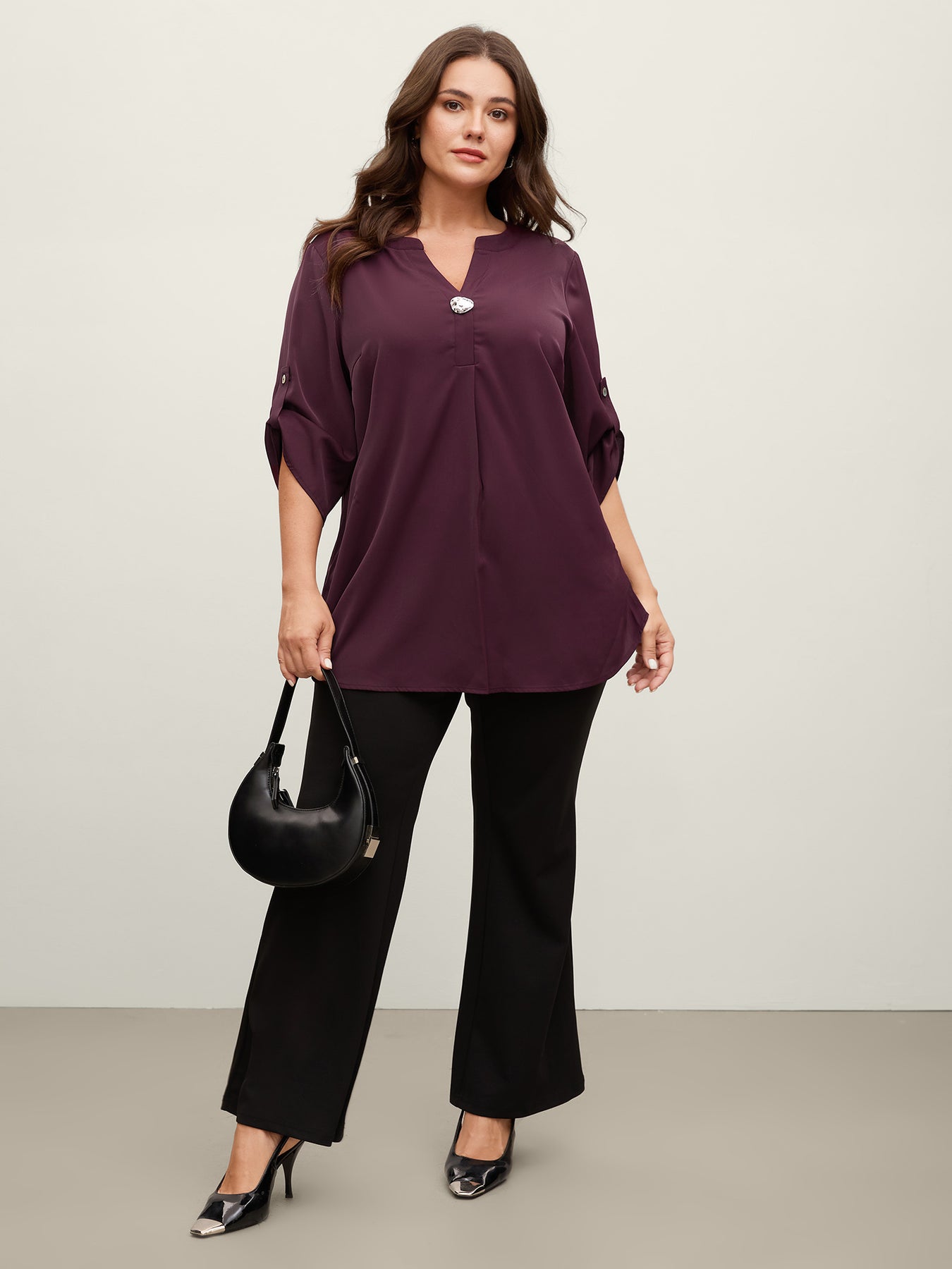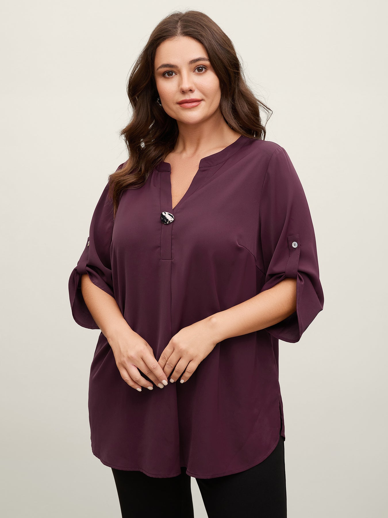 Metal Buckle Neckline Solid Blouse