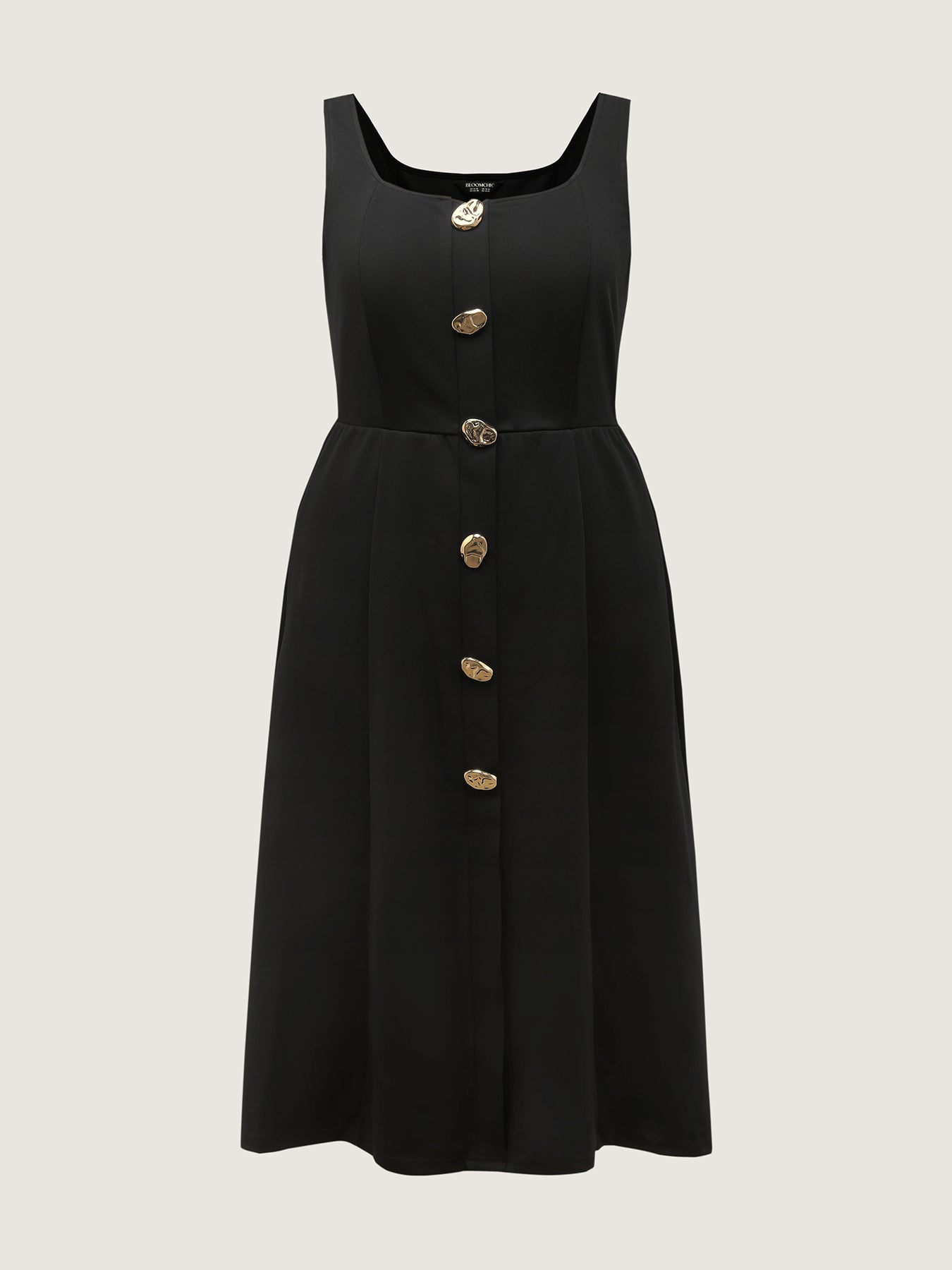 Metal Buttons Side Pockets Midi Dress