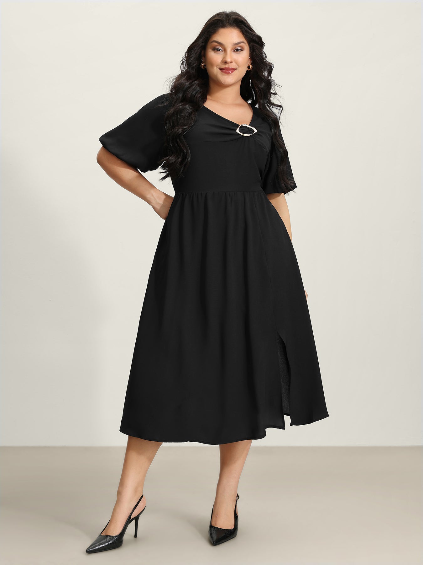 Metal Detail Asymmetrical Neckline Maxi Dress