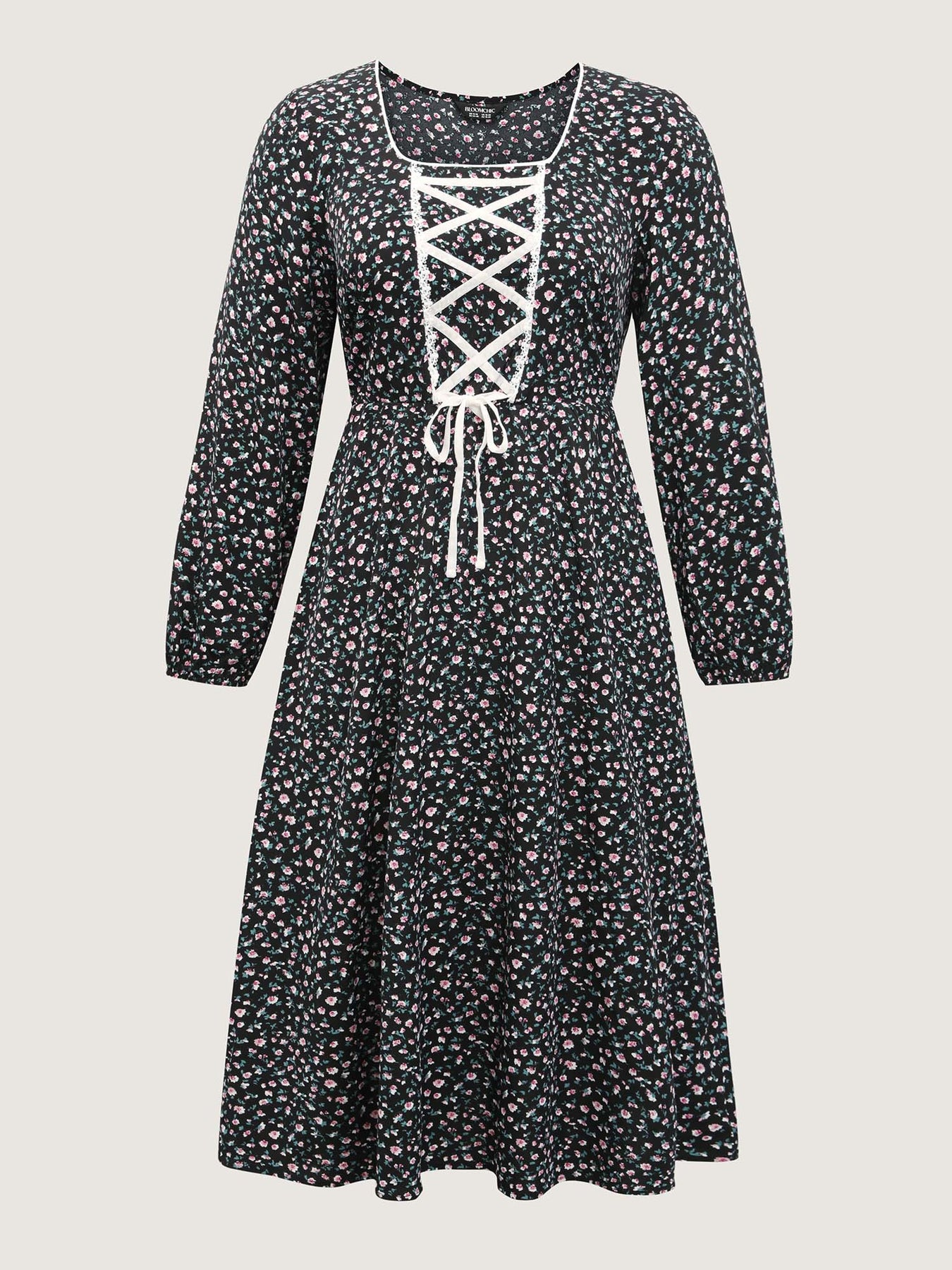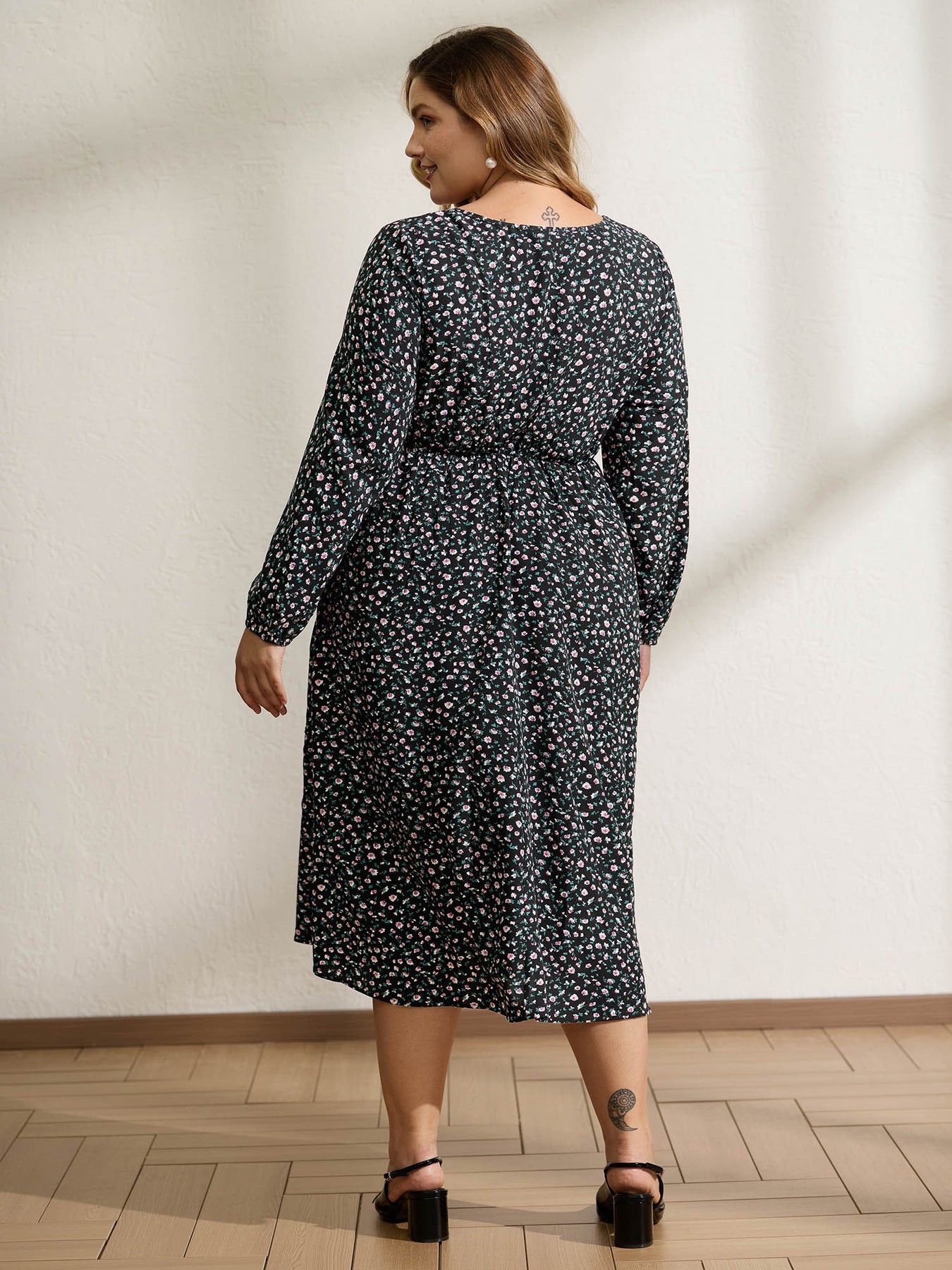 Micro Floral Print Adjustable Drawstring Maxi Dress