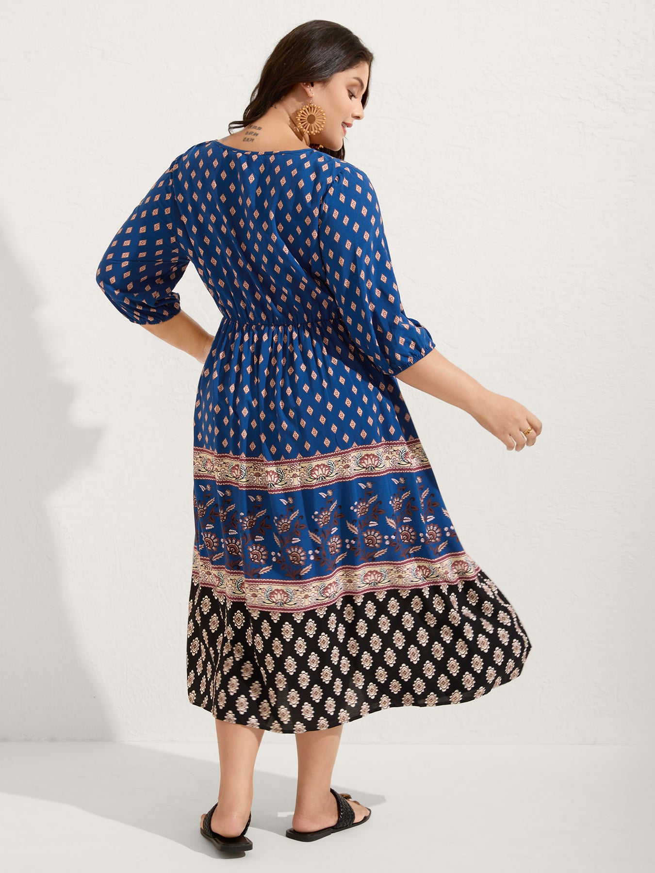 Mixed Floral Print Pockets Midi Dress