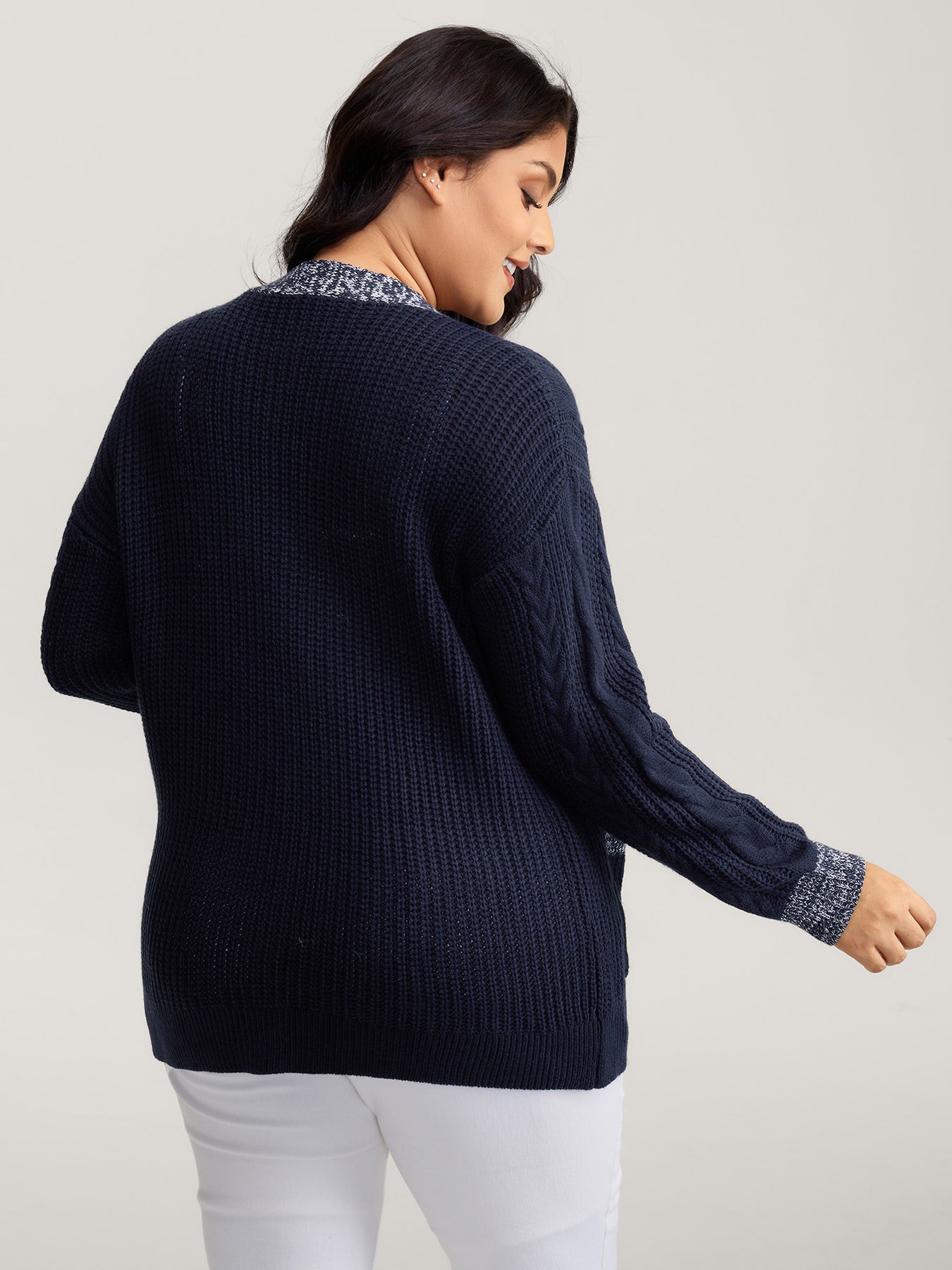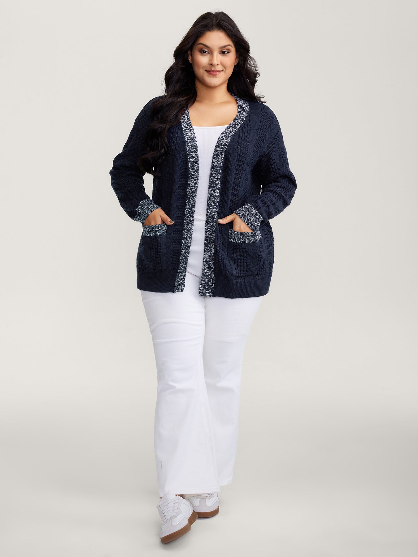 Mixed-Yarn Color Contrast Pockets Knit Cardigan