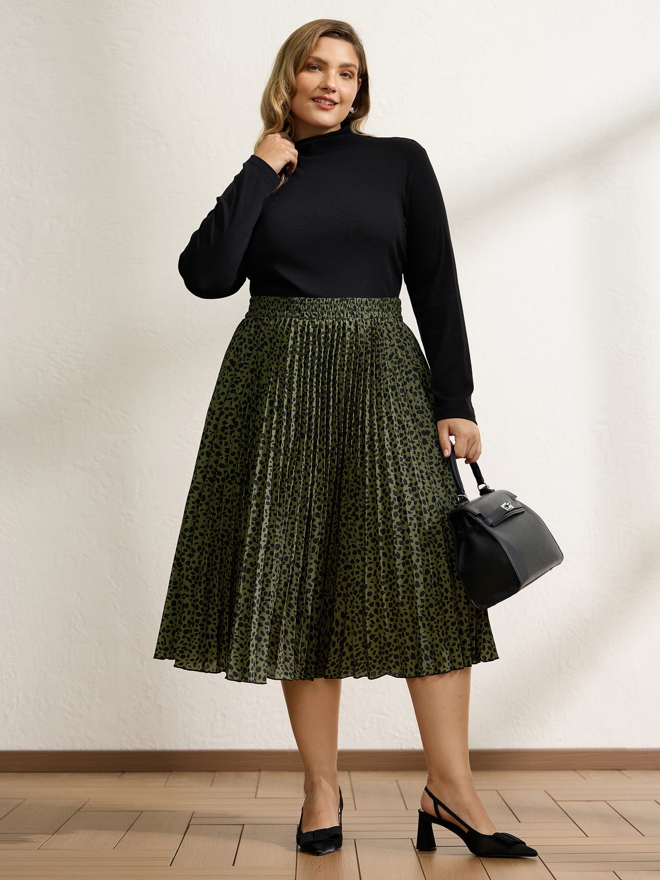 Monochrome Polka Dots Pleated Midi Skirt