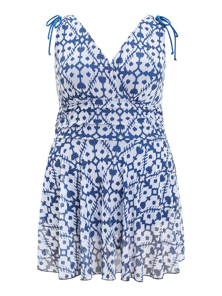 Moroccan Print Knot Detail Ruffle Hem Wrap Swim Dress