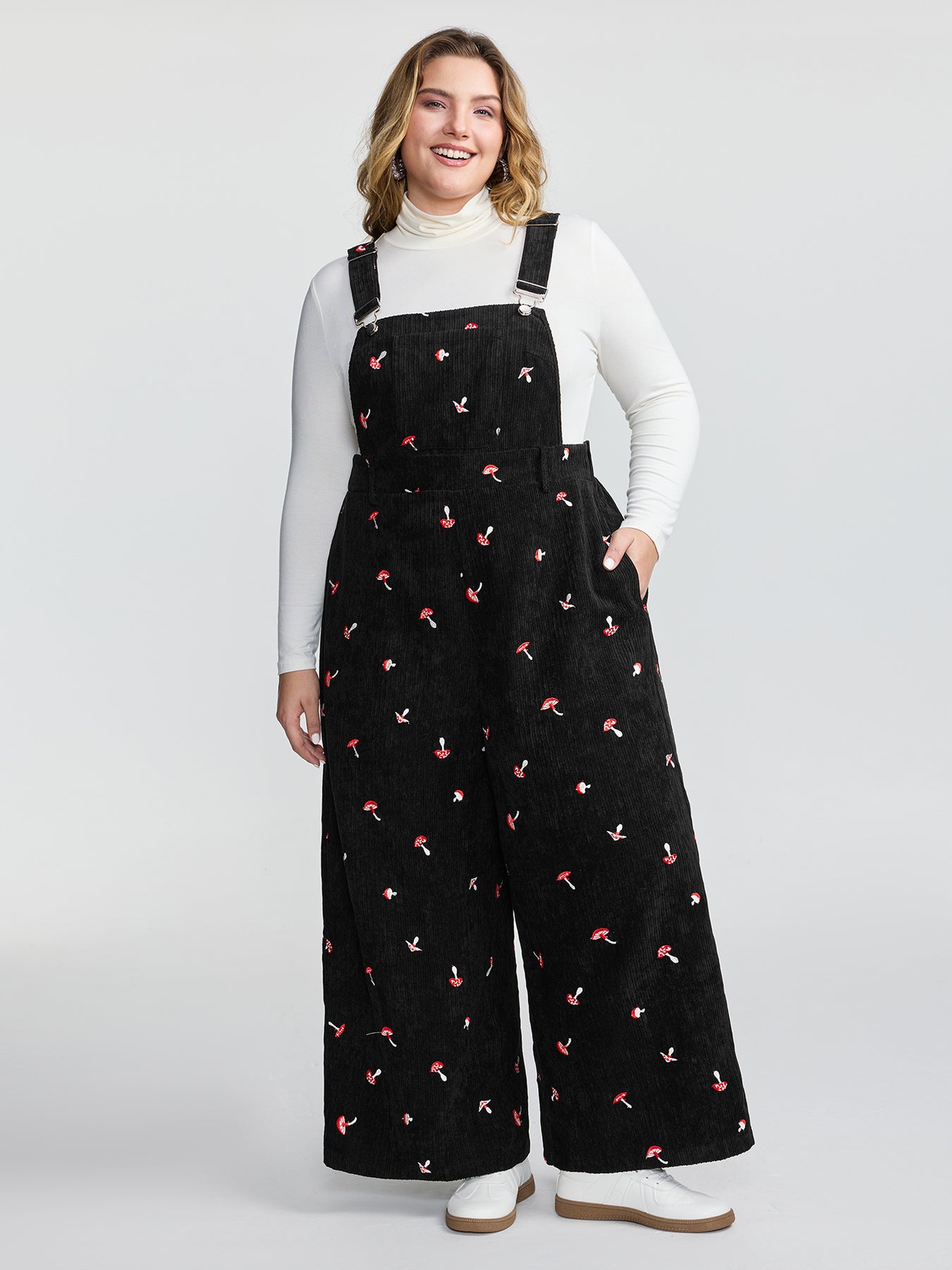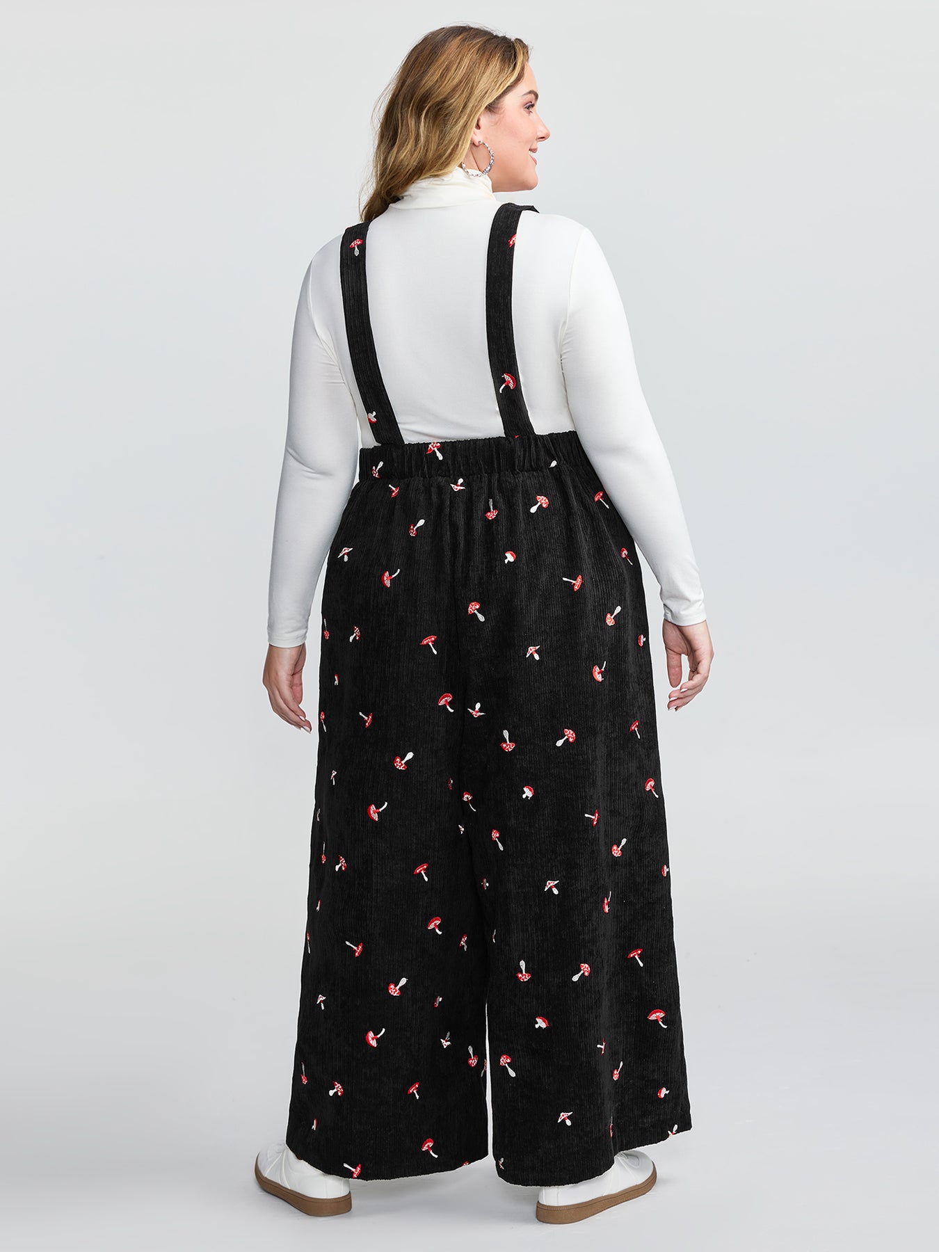 Mushroom Embroidered Textured Overall Jumpsuit