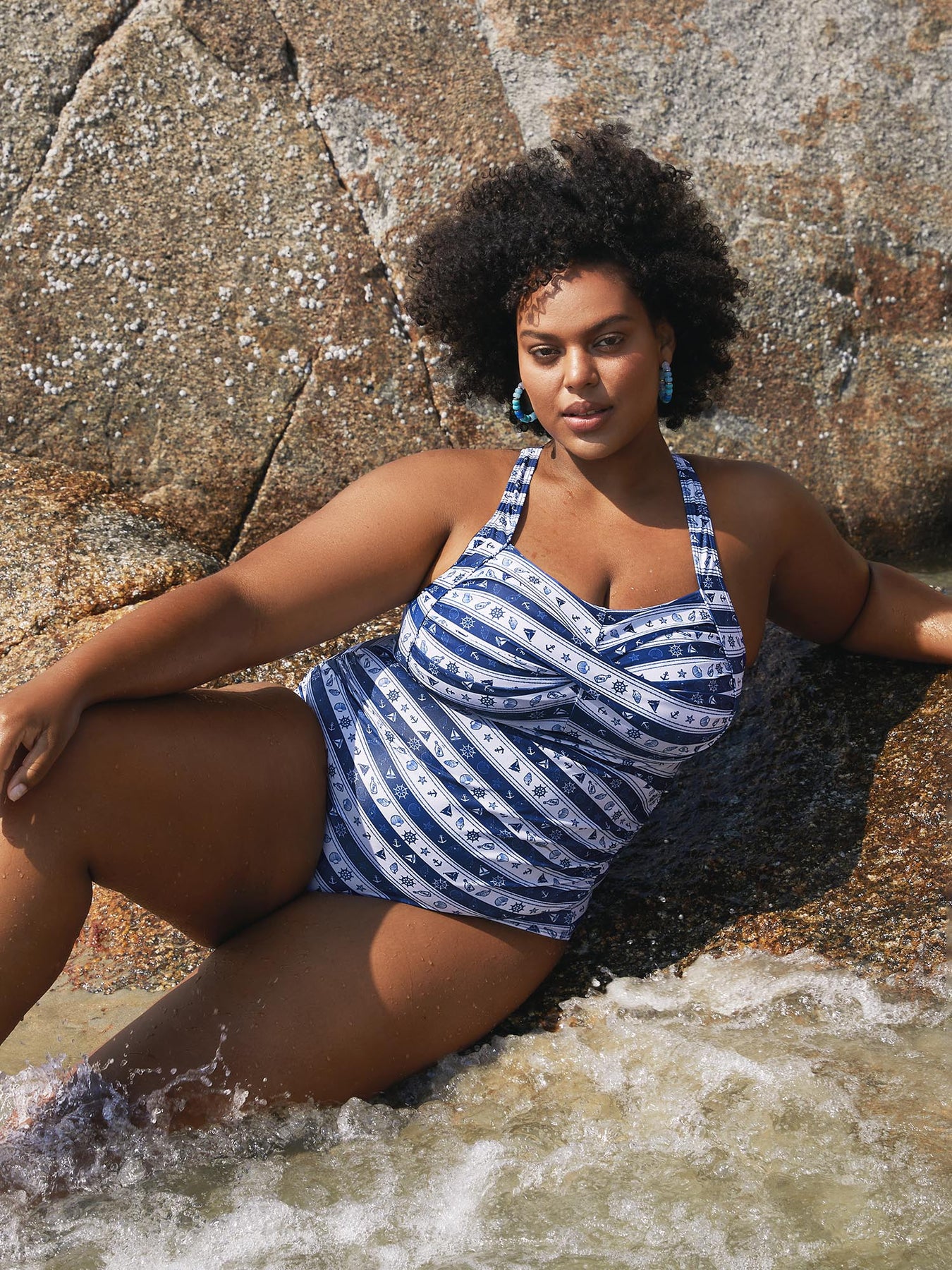 Nautical Striped Twist Front One-Piece Swimsuit