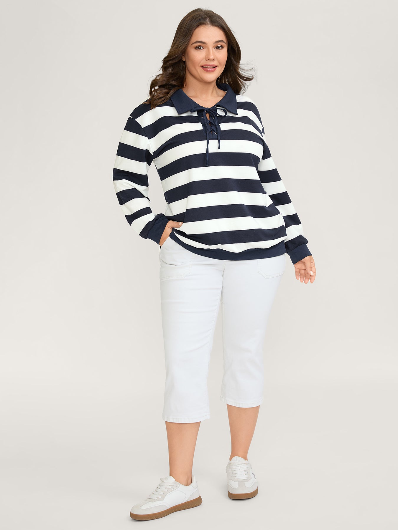 Nautical Stripes Neck Tie-Up Sweatshirt