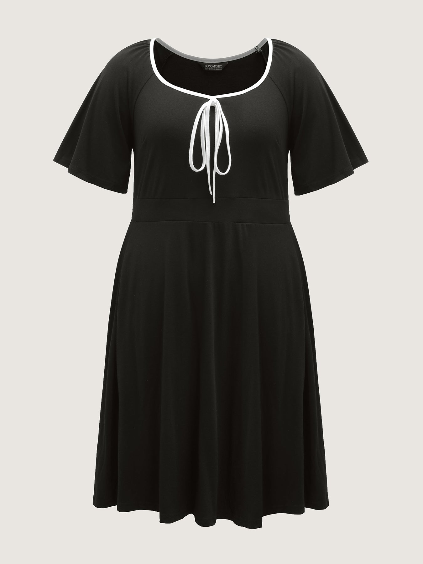 Neck Bow-Tie Contrast Pockets Midi Dress