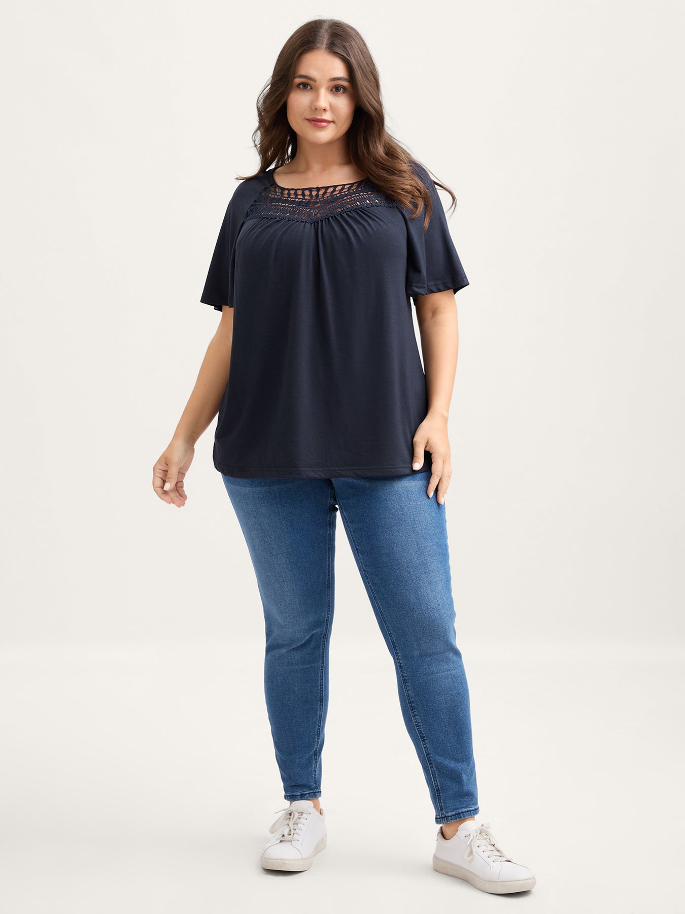 Supersoft Neckline Sheer Lace Neck T-Shirt
