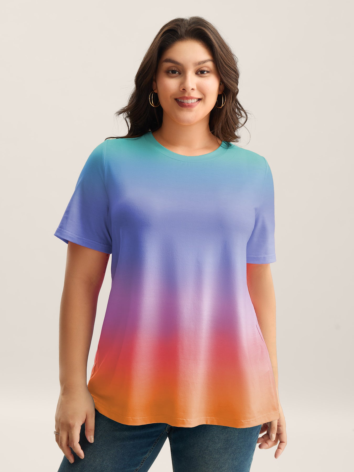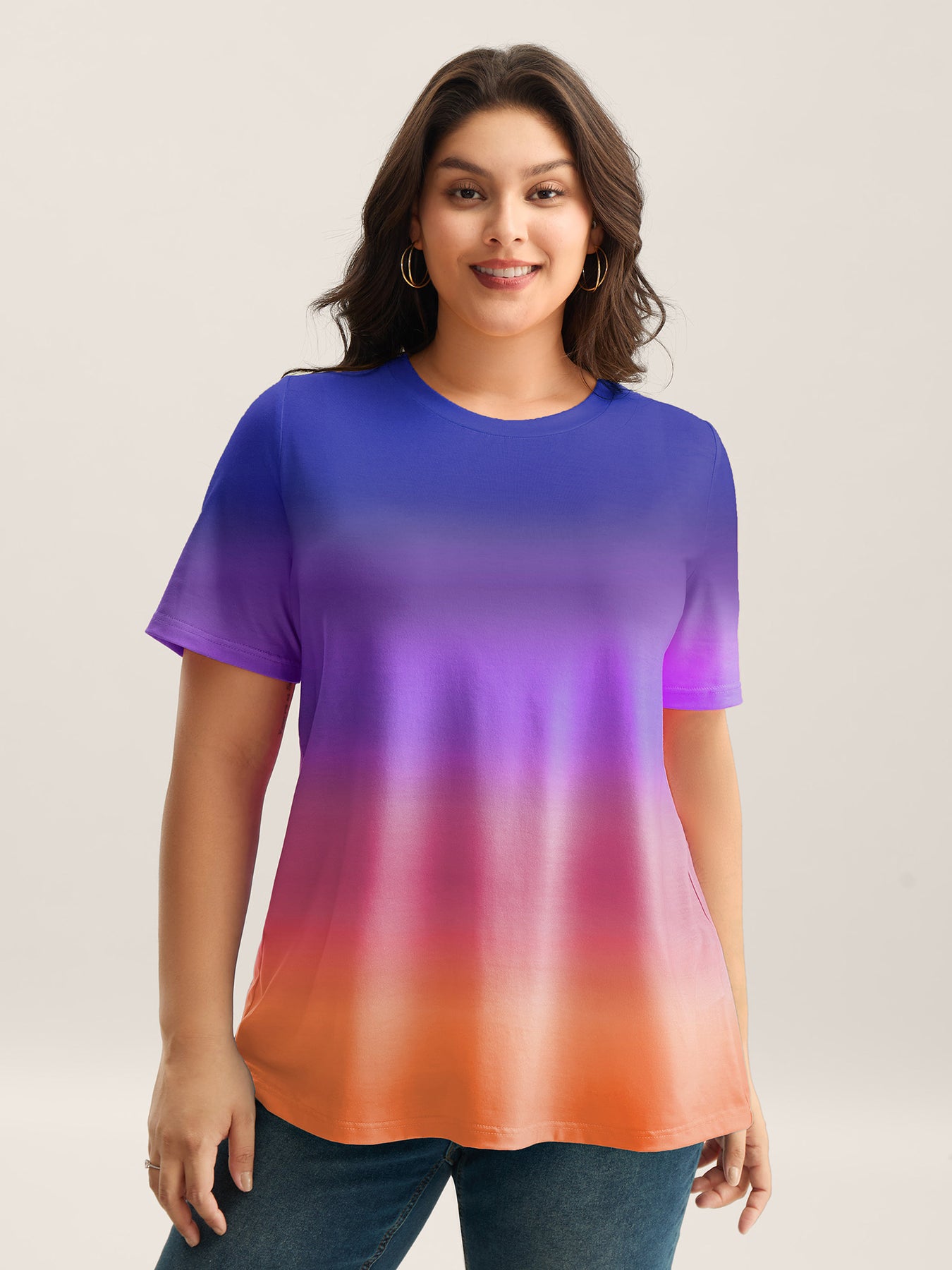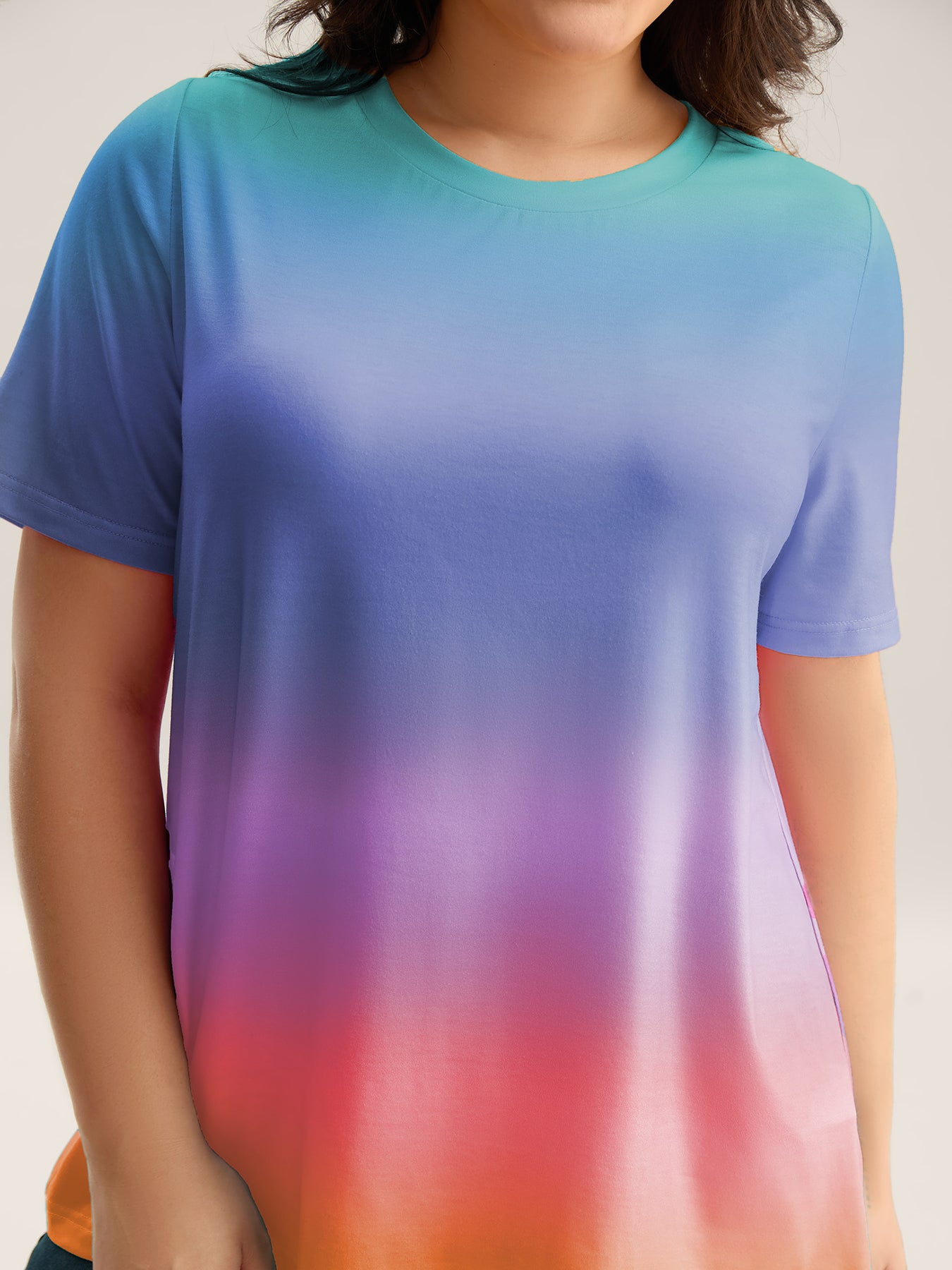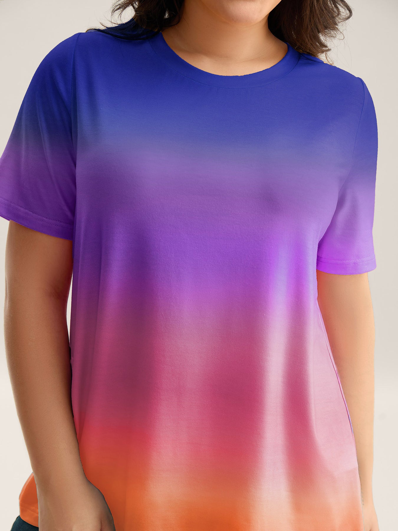 Ombre Gradient Crew Neck Curvy T-Shirt