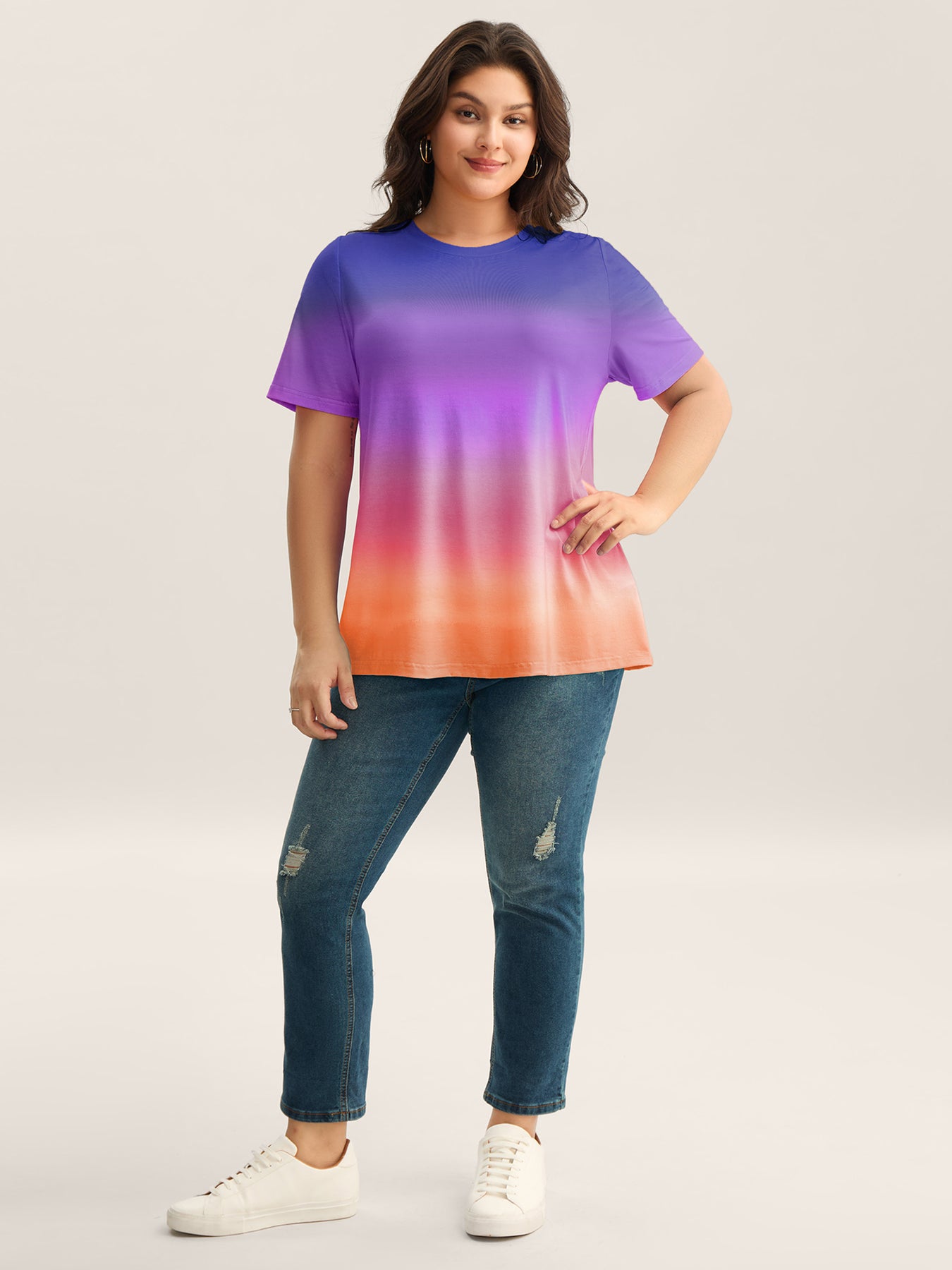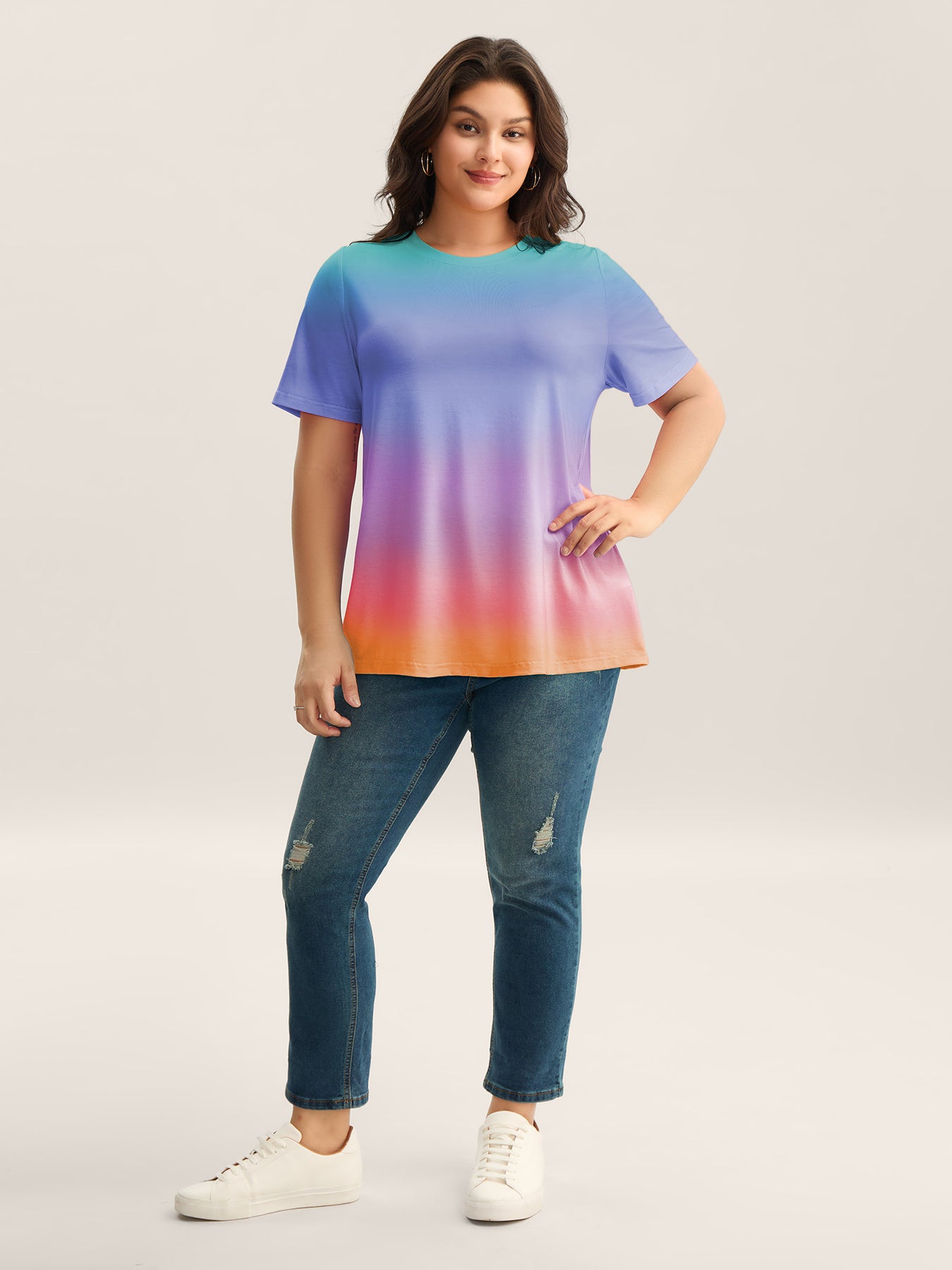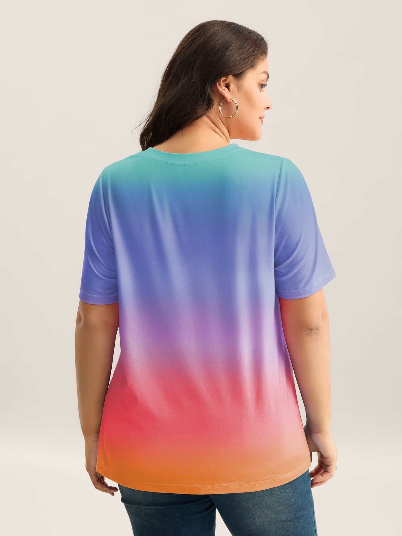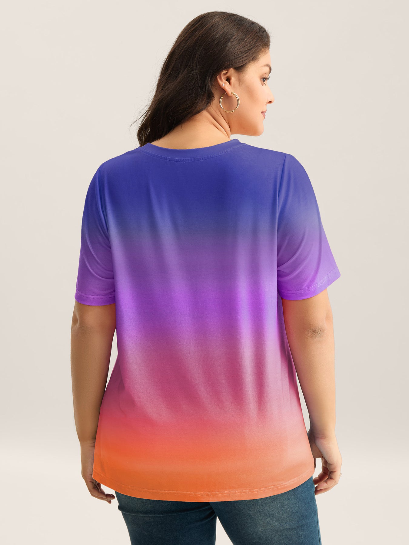 Ombre Gradient Crew Neck Curvy T-Shirt