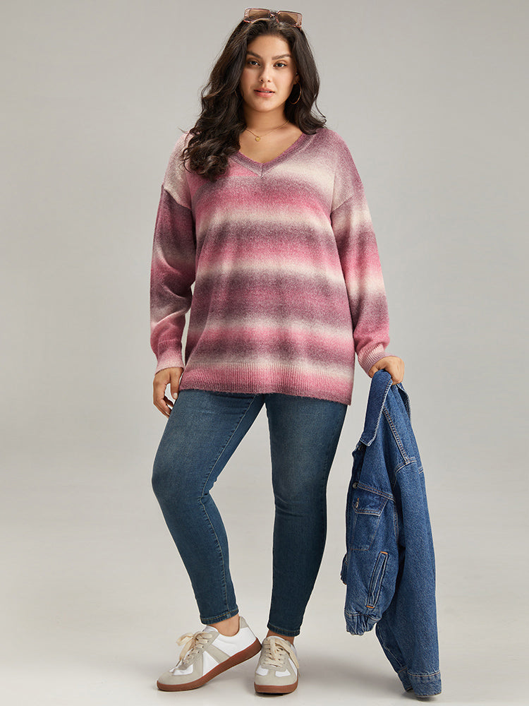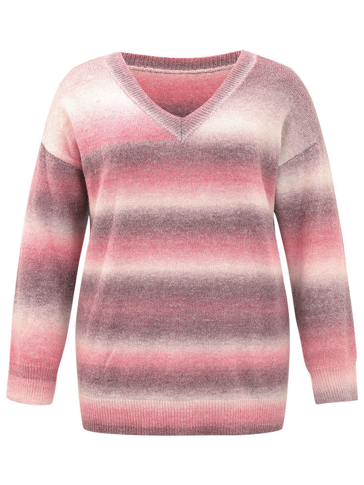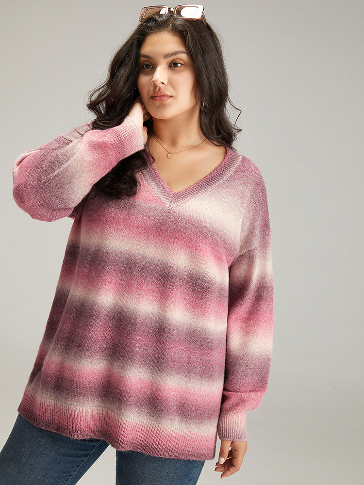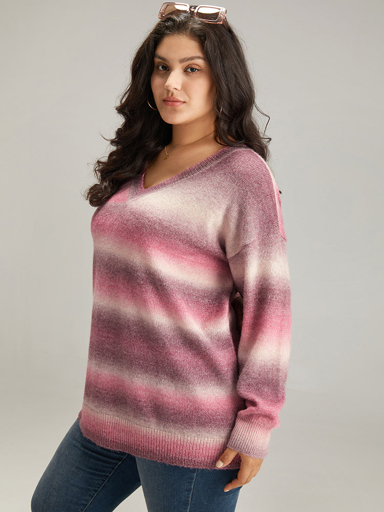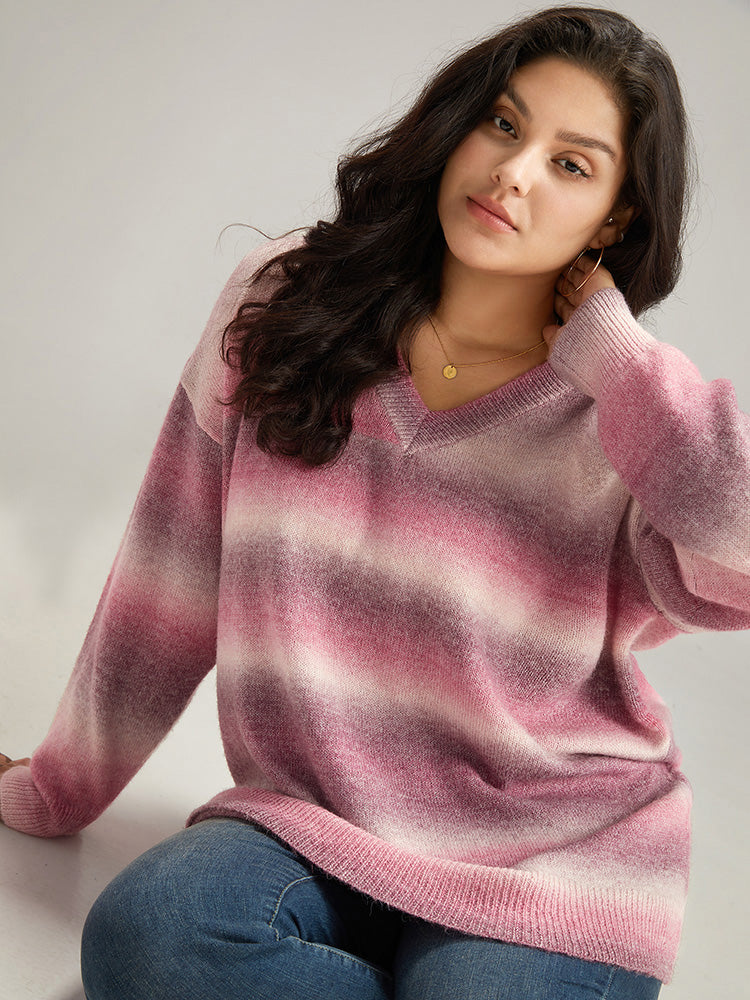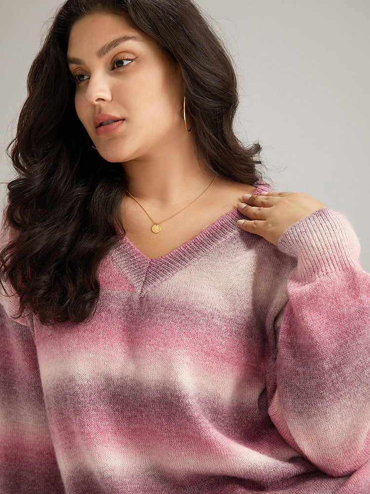 Ombre Heather V Neck Elastic Cuffs Pullover