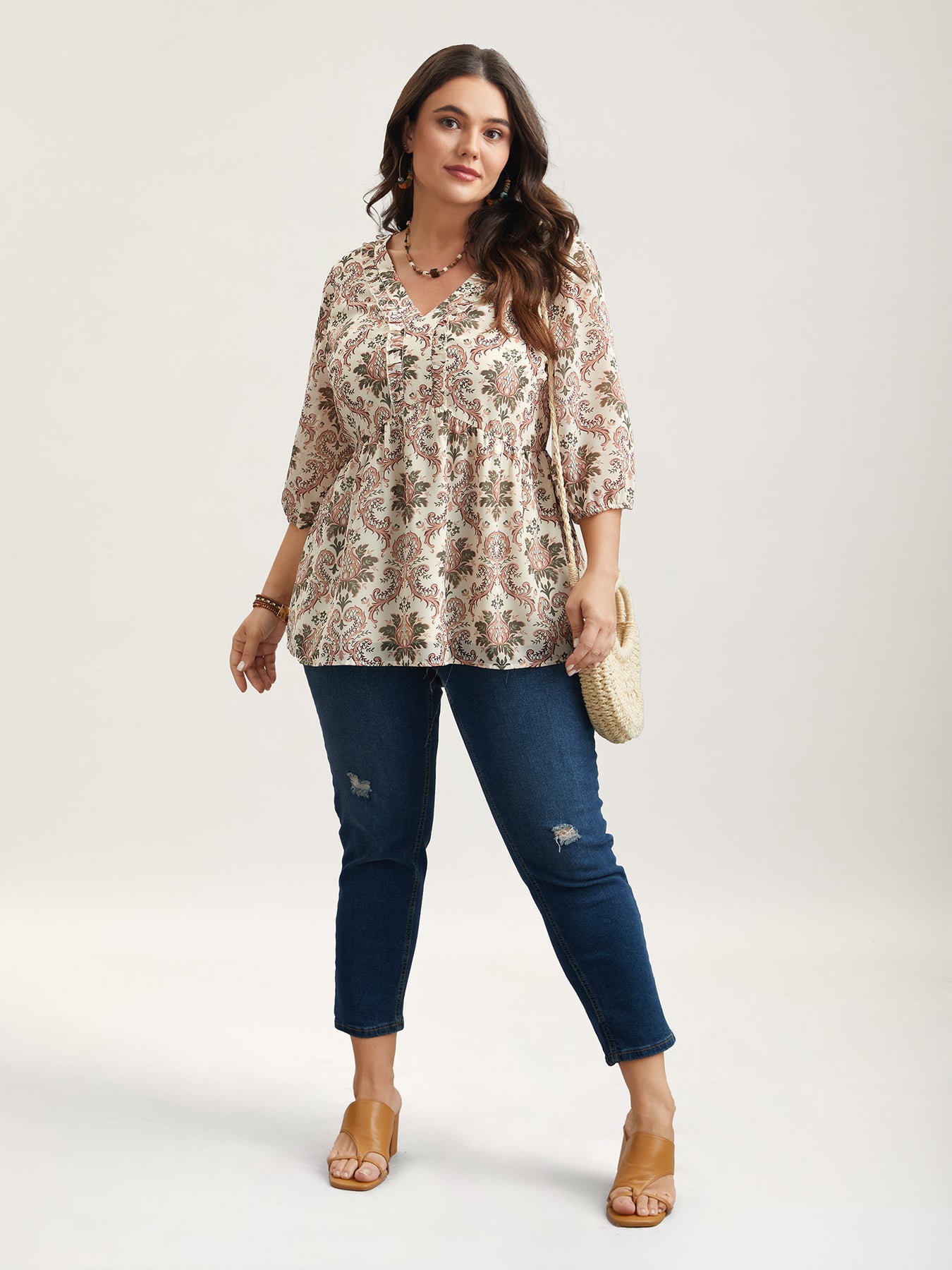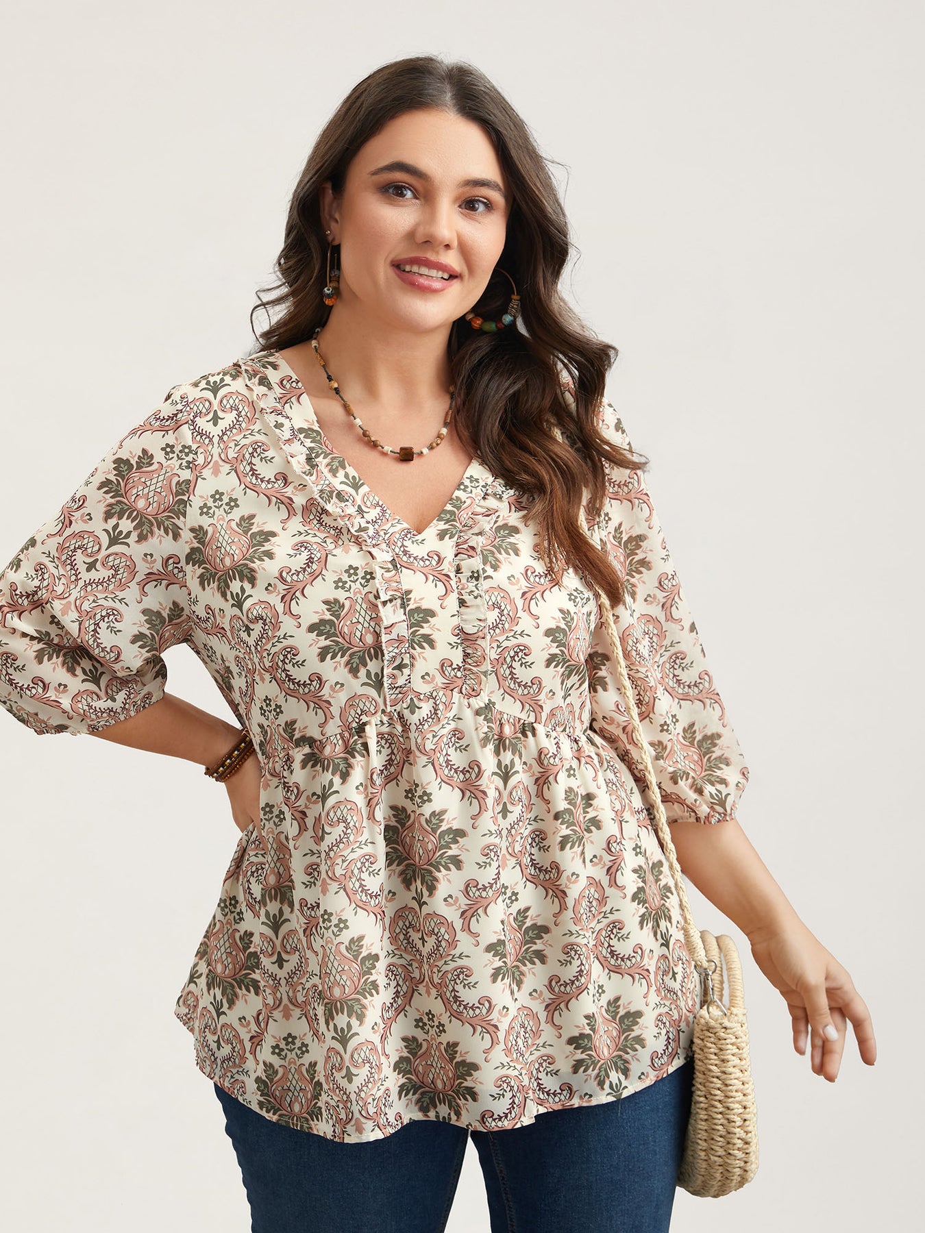 Ornate Print Stretchy Waist Lined Shirt