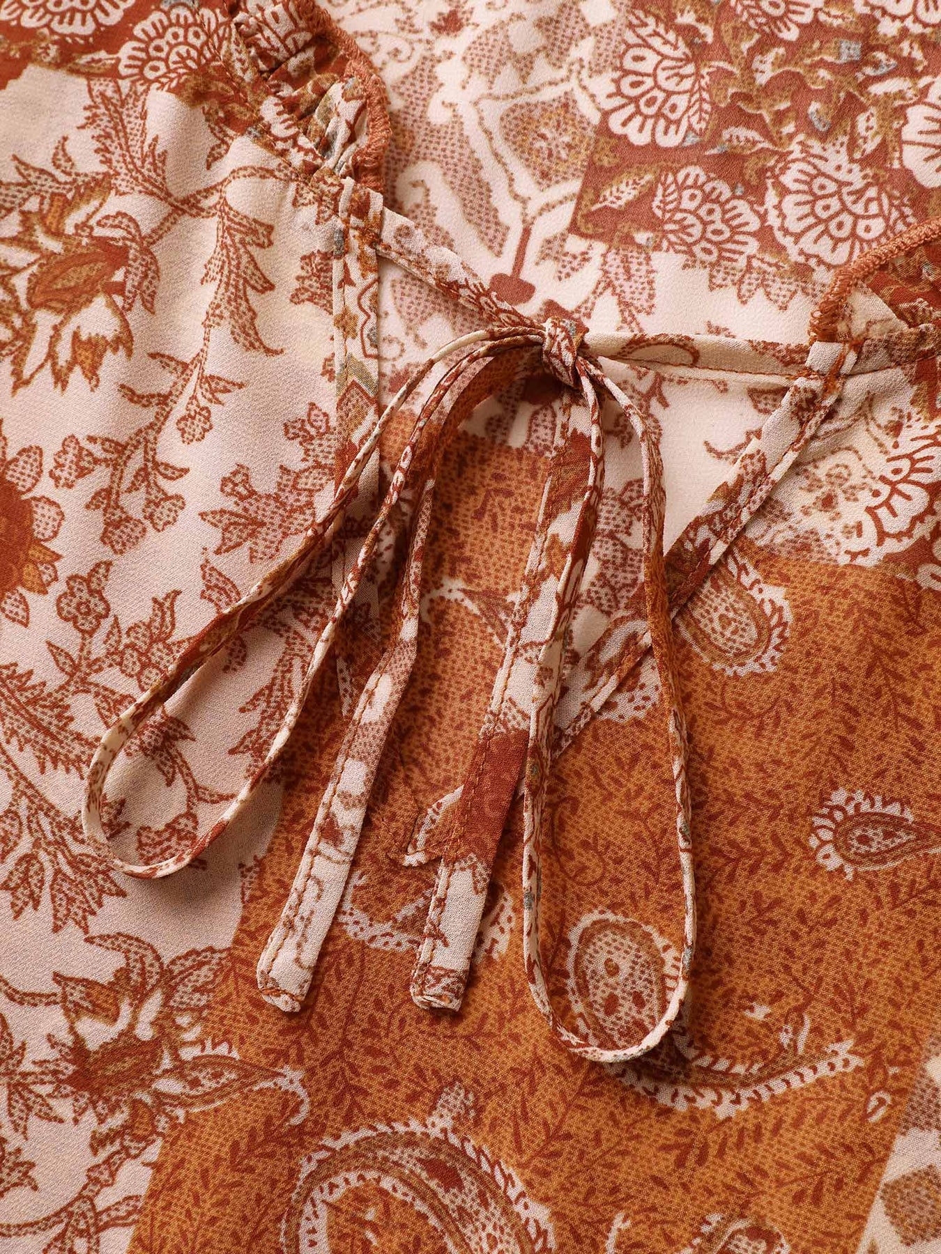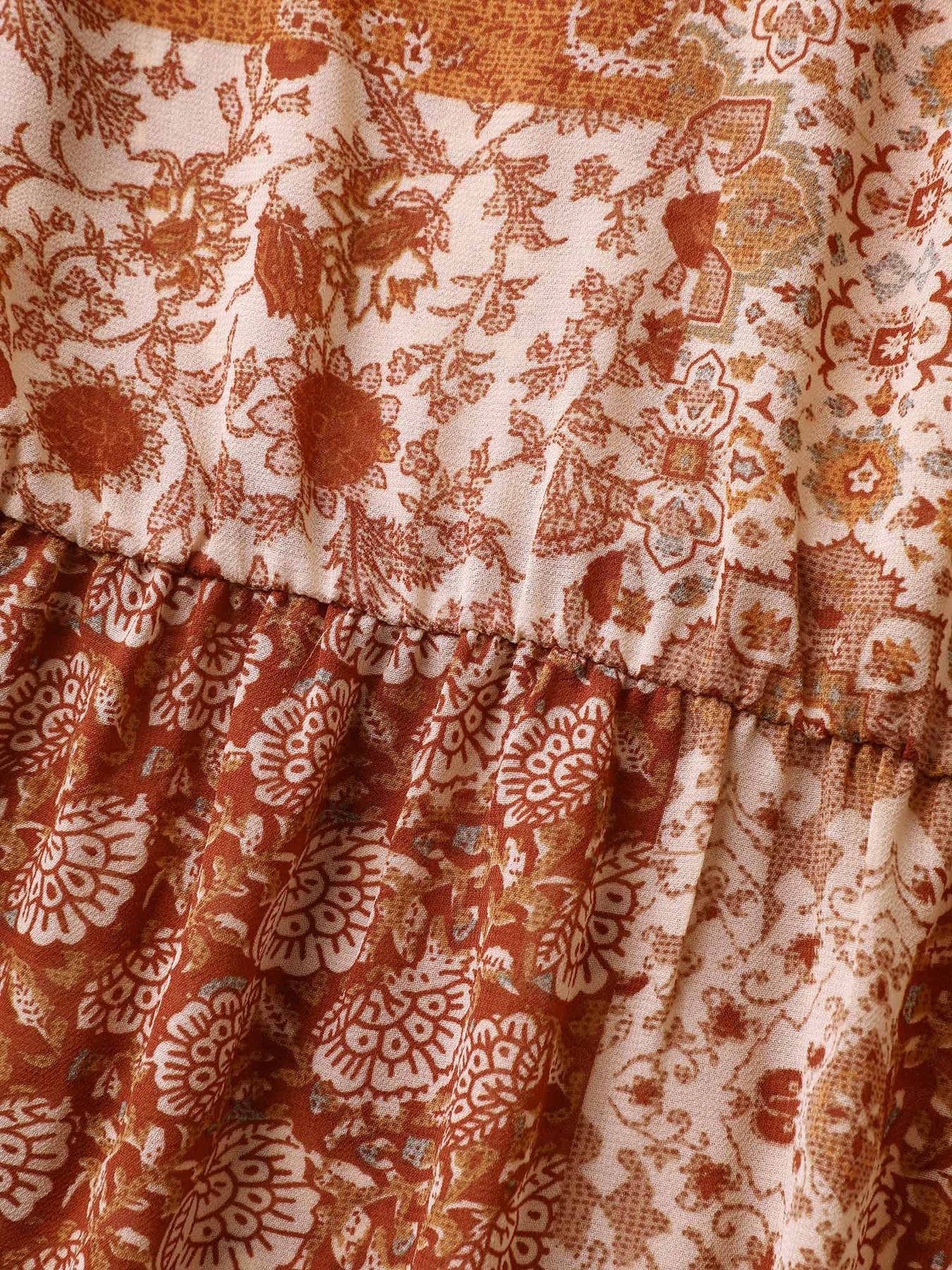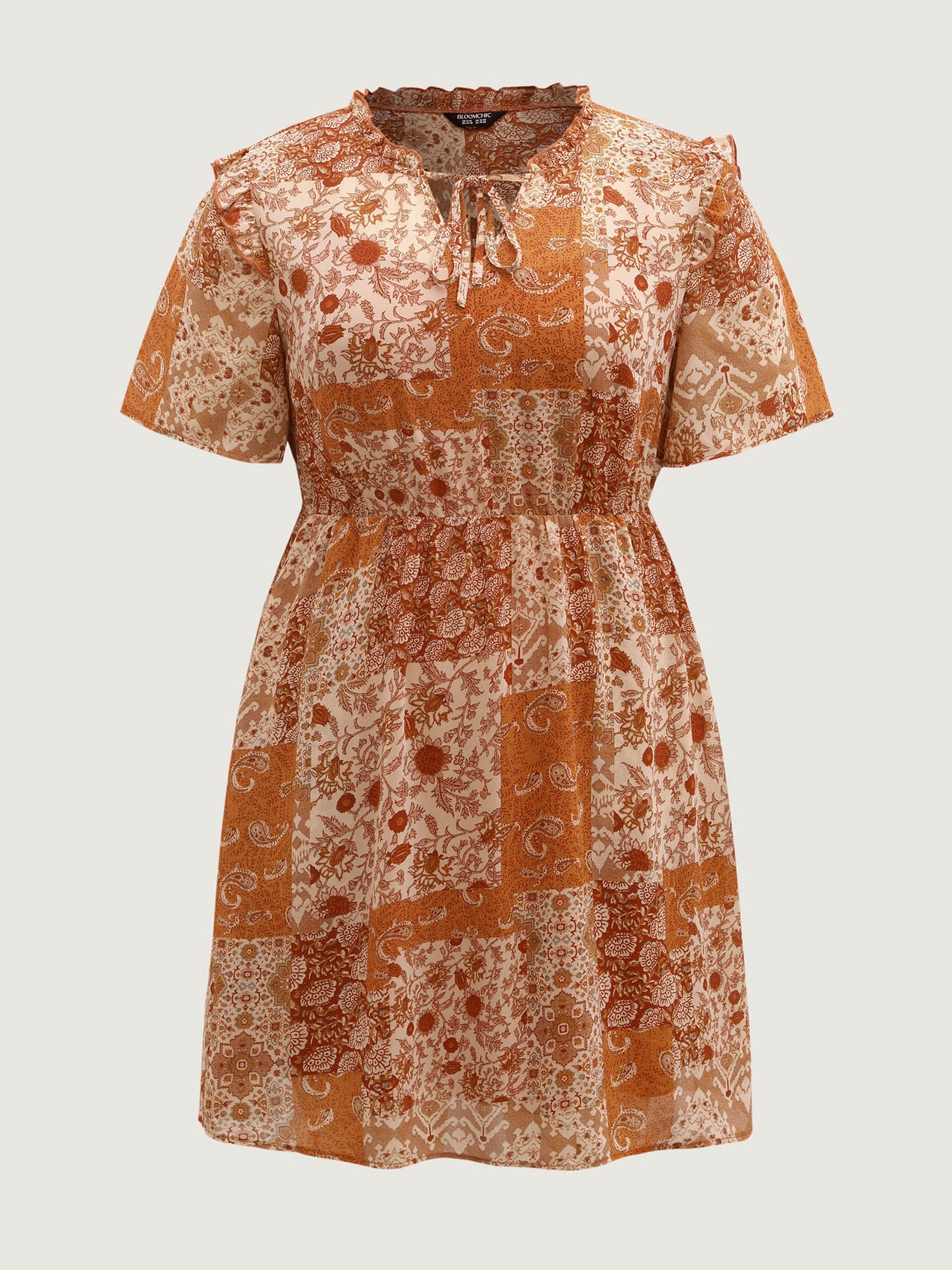Paisely Collage Ruffled Lined Knee-Length Dress