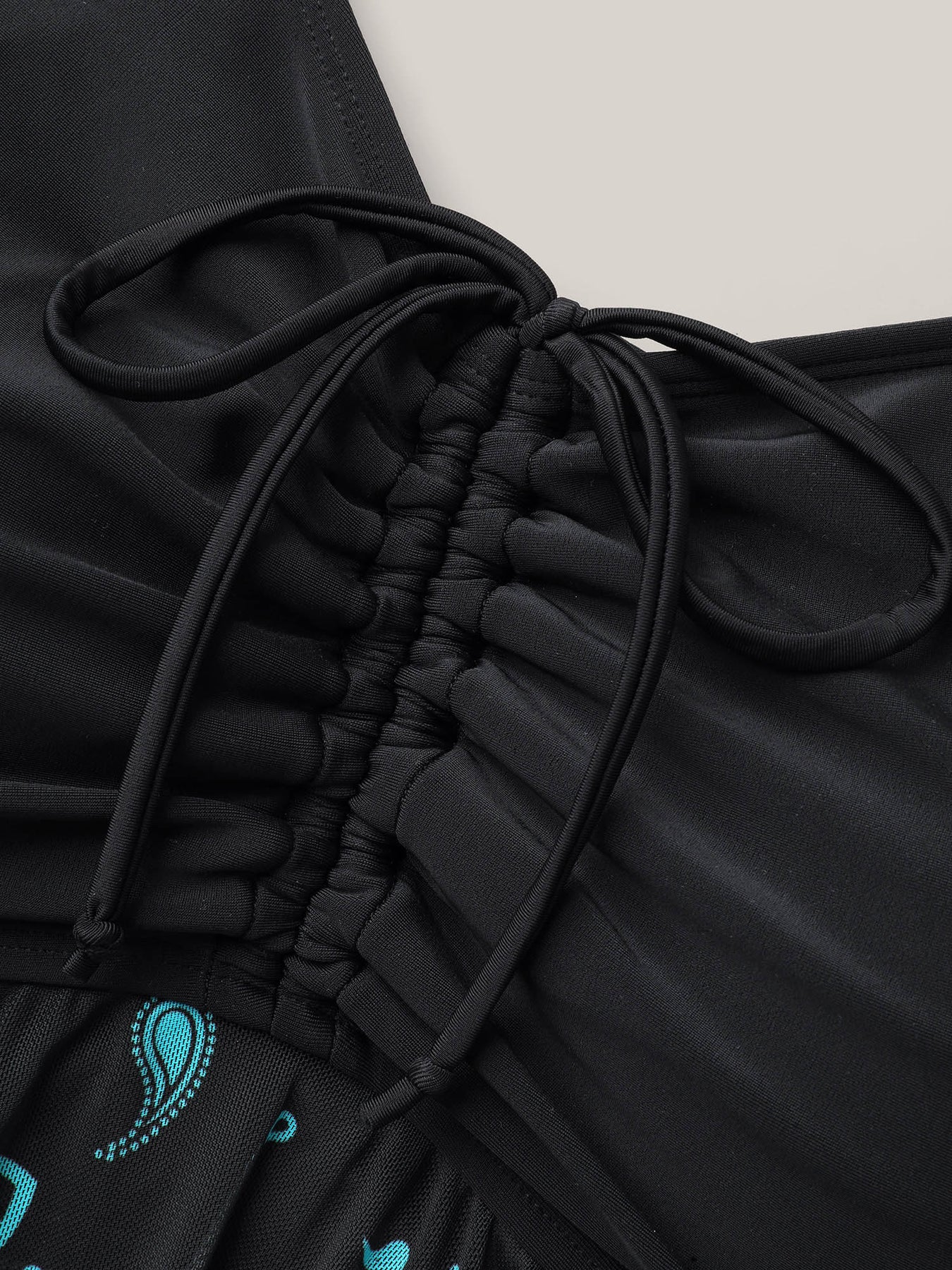 Paisley Print Handkerchief Hem Drawstring Swim Top