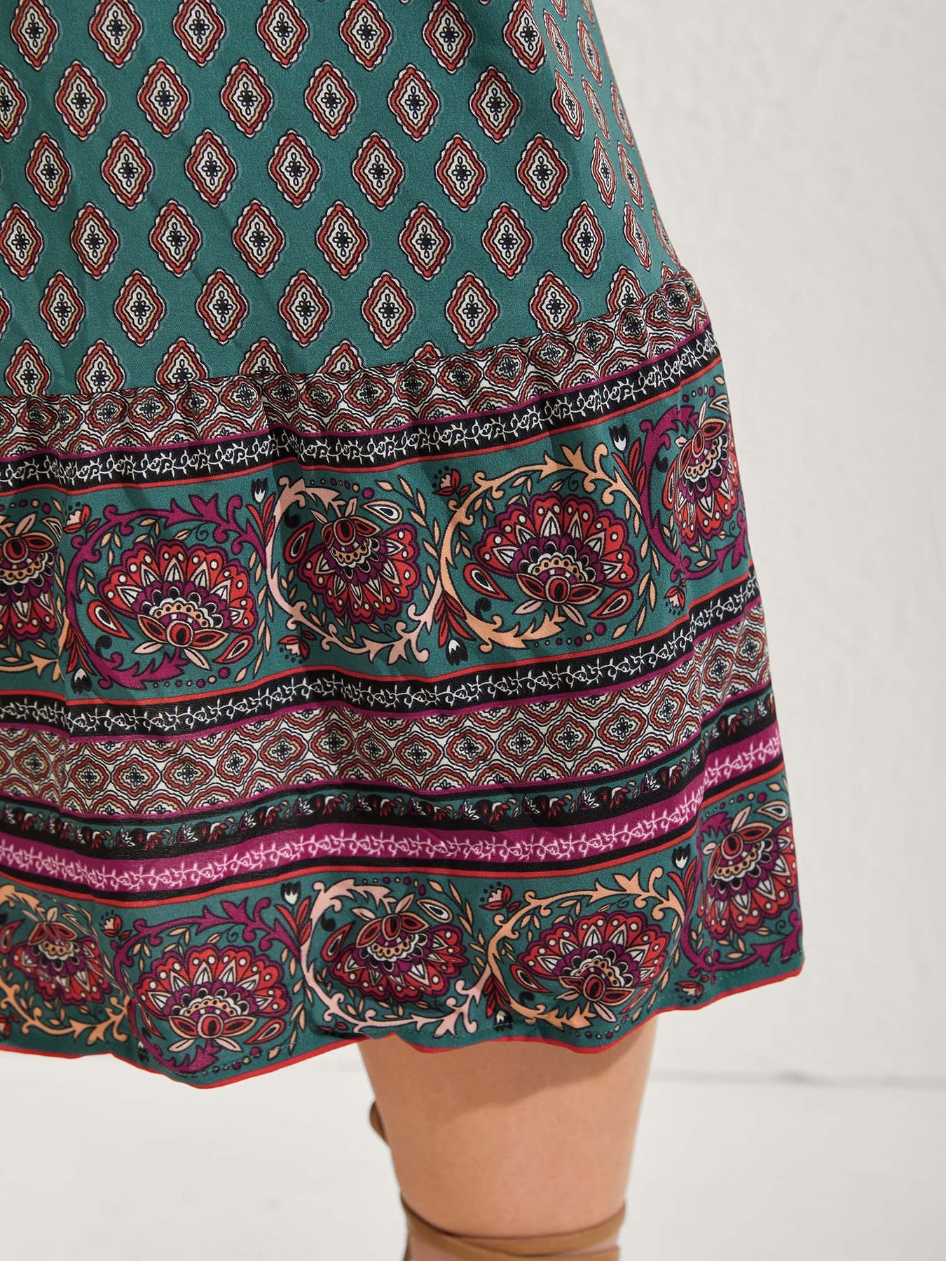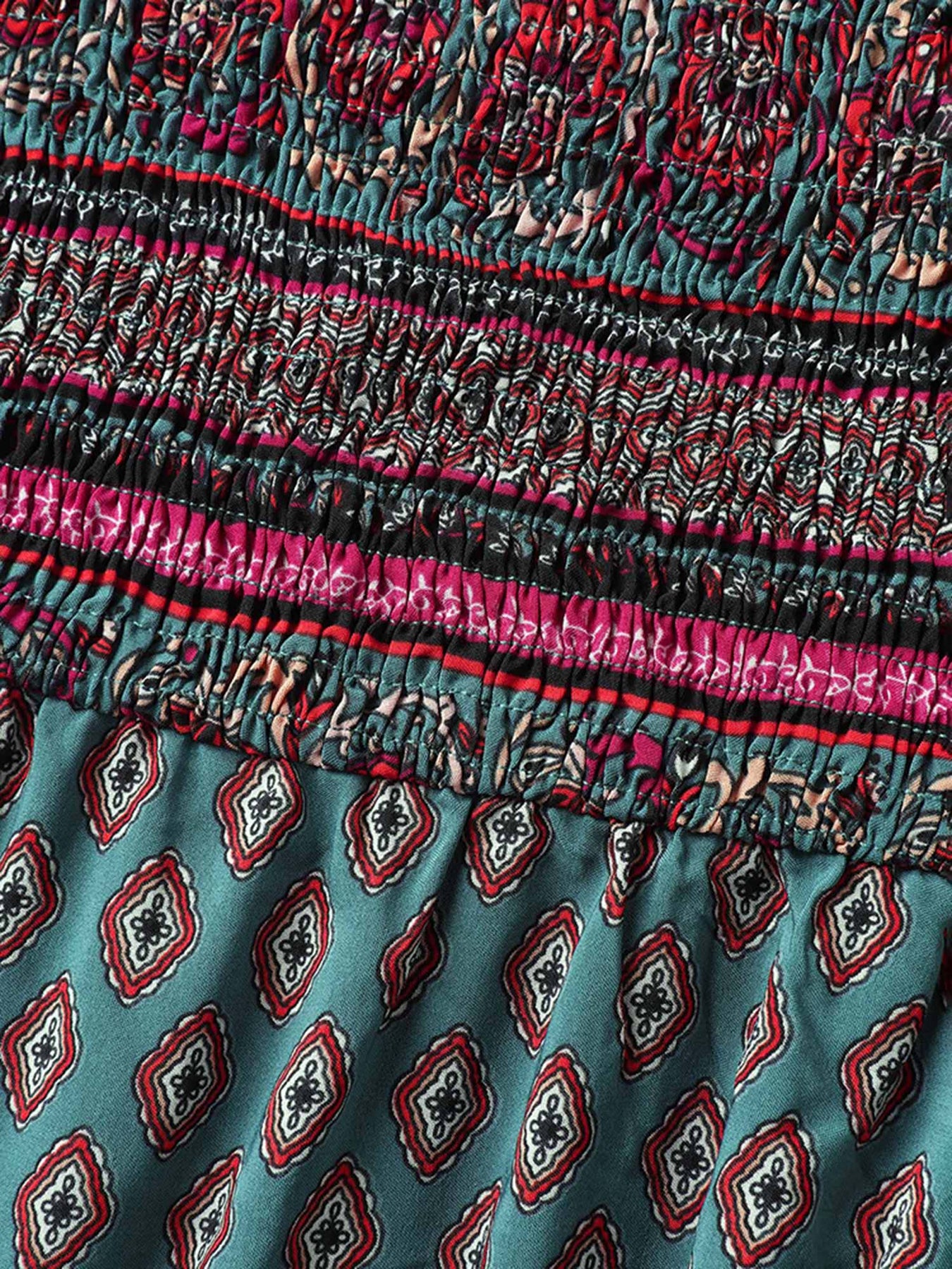 Paisley Print Shirred Bodice Midi Dress