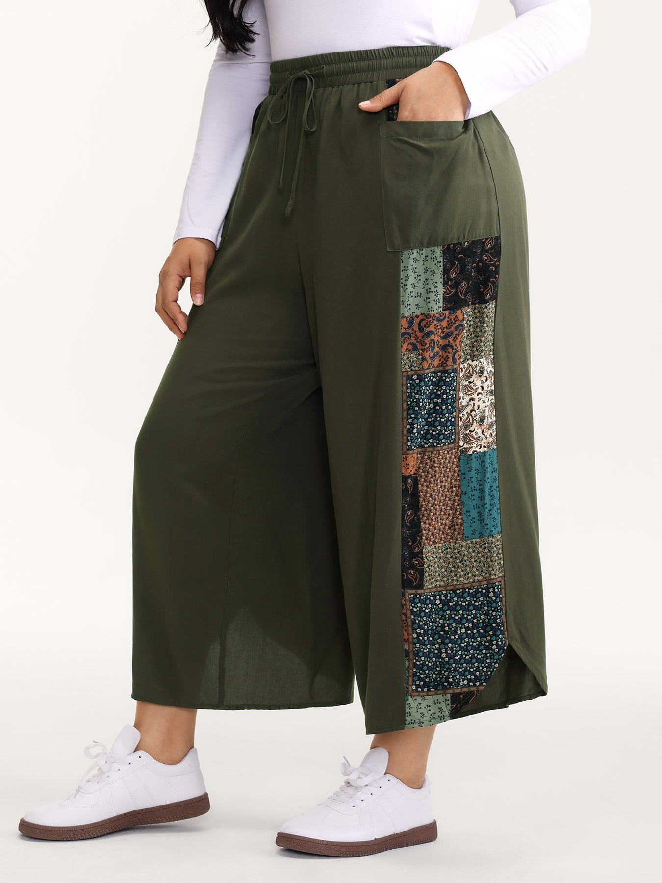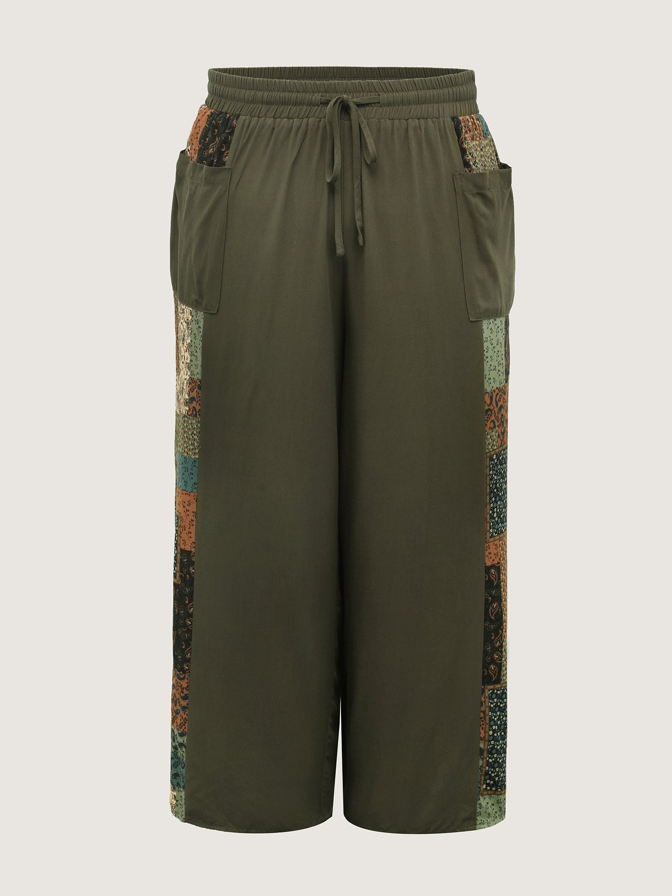 Patch Print Drawstring Wide-Leg Pants