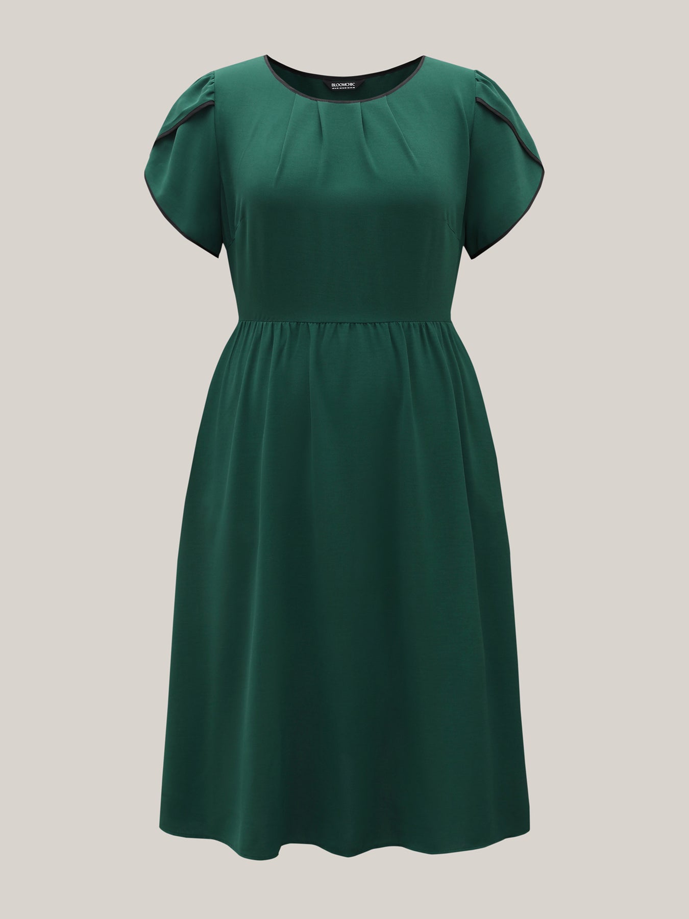 Petal Sleeve Pleated Pockets Midi Dress