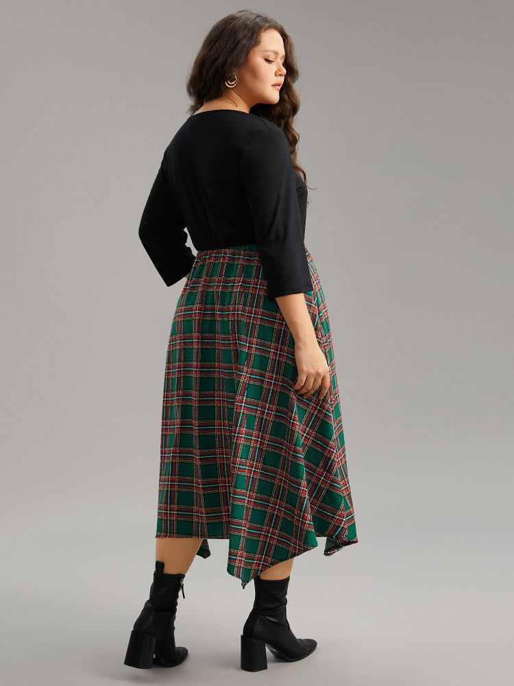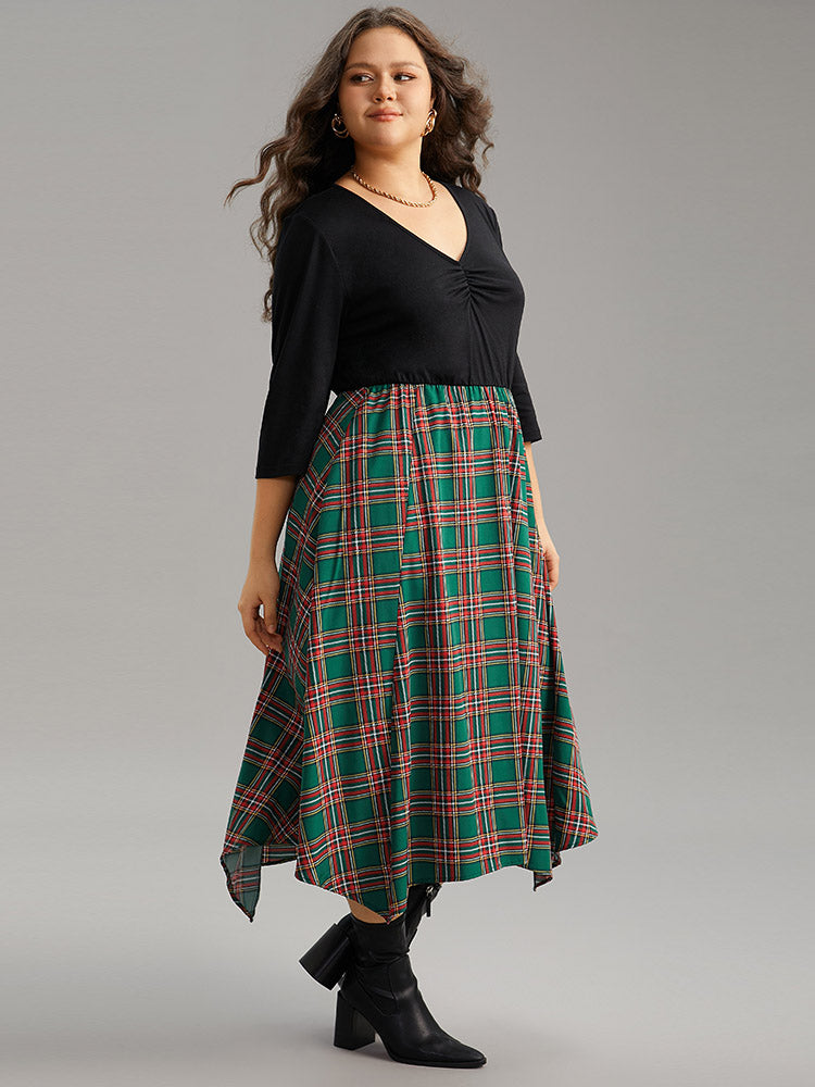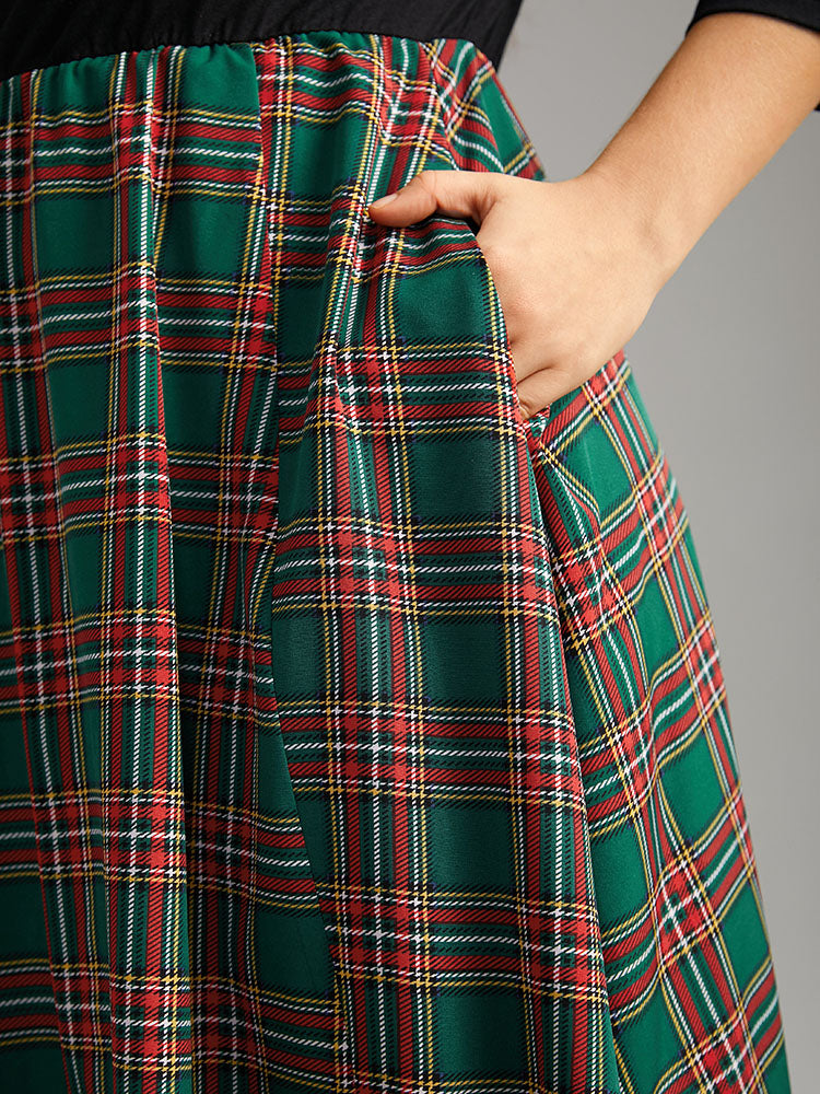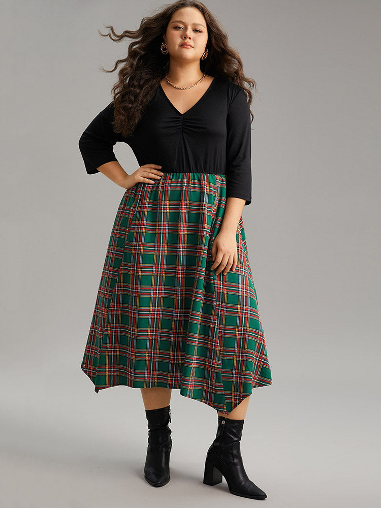 Plaid Contrast Patchwork Ruched Pocket Dress