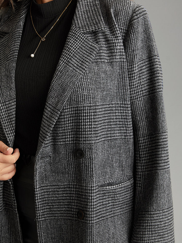 Plaid Double Breasted Patched Pocket Tunic Coat
