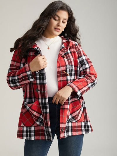 Plaid Hooded Pocket Duffle Button Coat