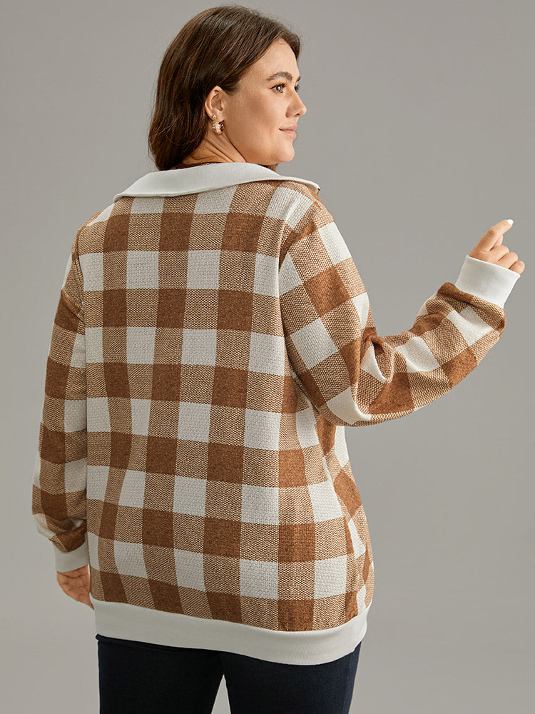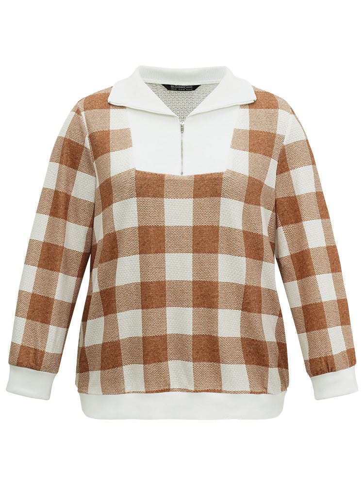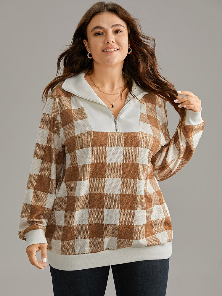 Plaid Patchwork Contrast Half Zip Sweatshirt