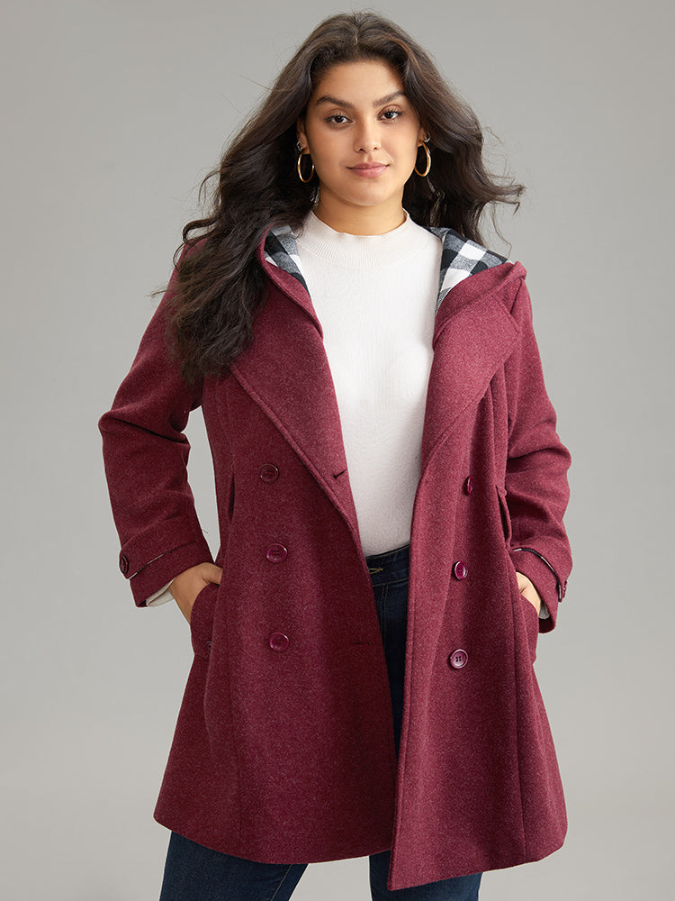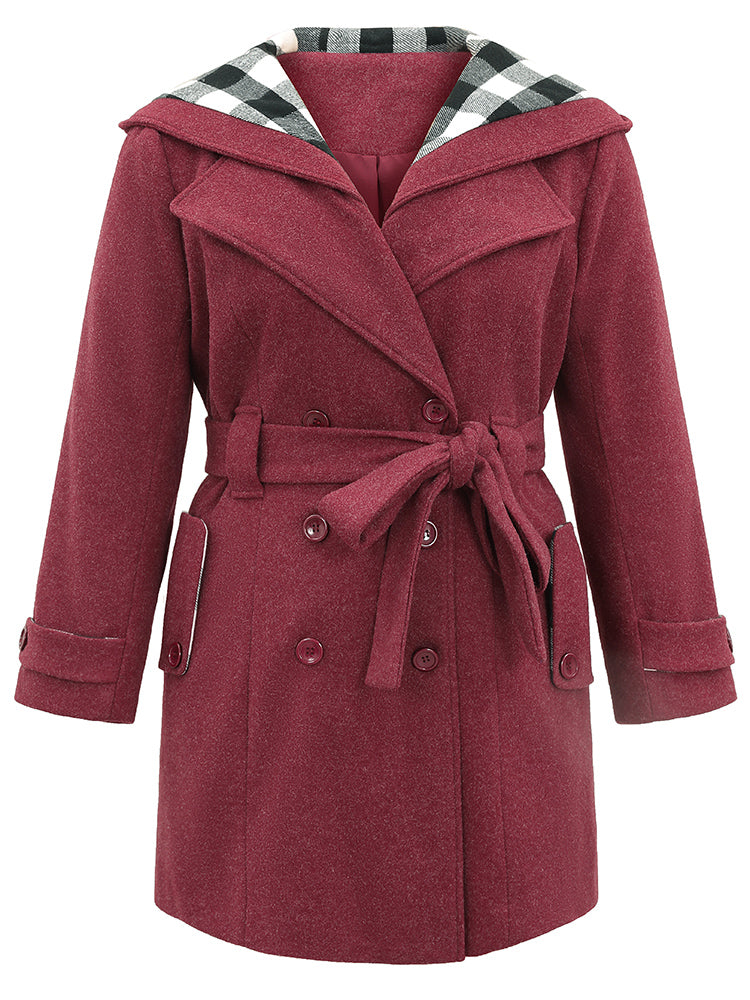 Plaid Patchwork Double Breasted Belted Hooded Coat