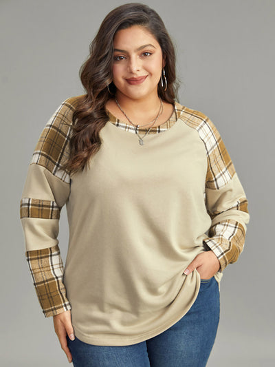 Plaid Patchwork Raglan Sleeve Sweatshirt
