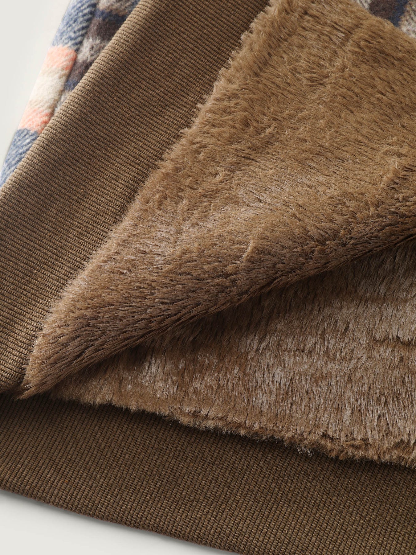 Plaid Pattern Fuzzy Collar Zipper Jacket