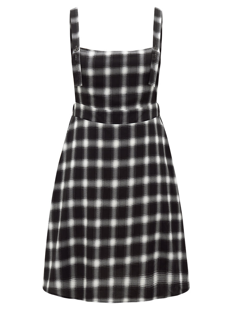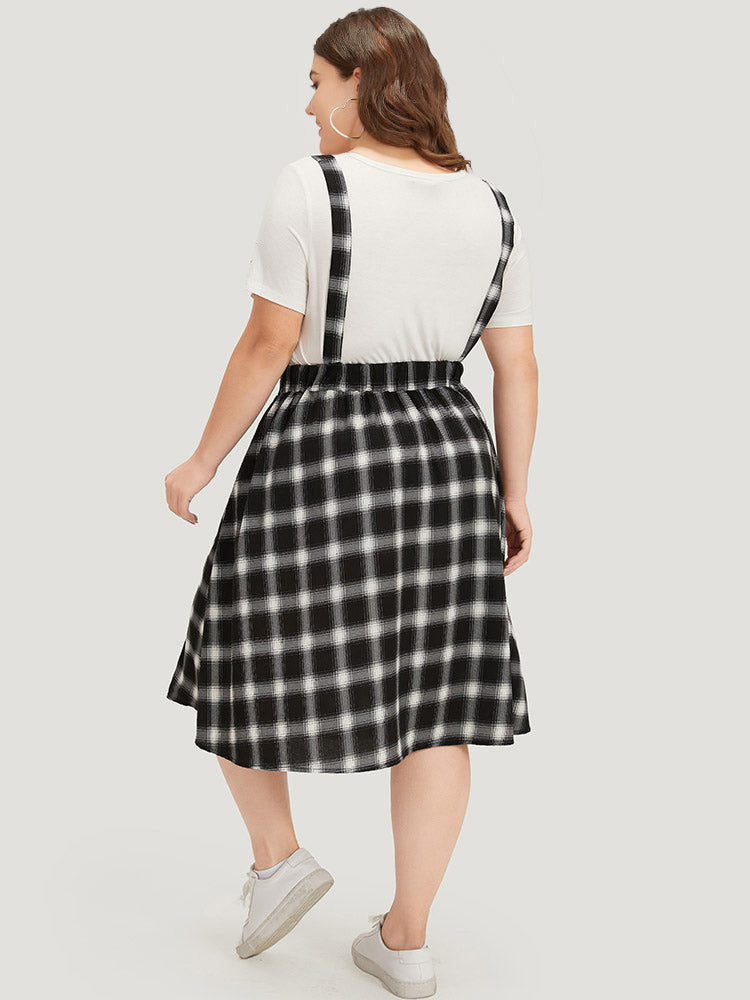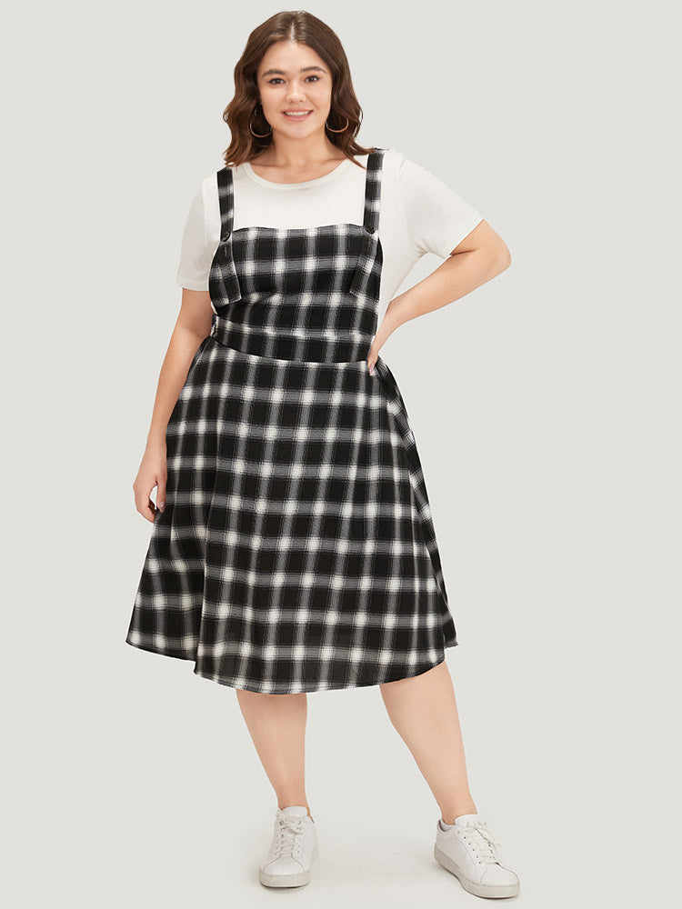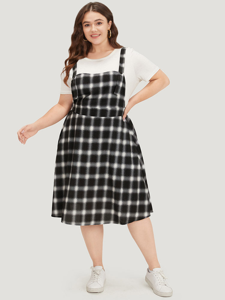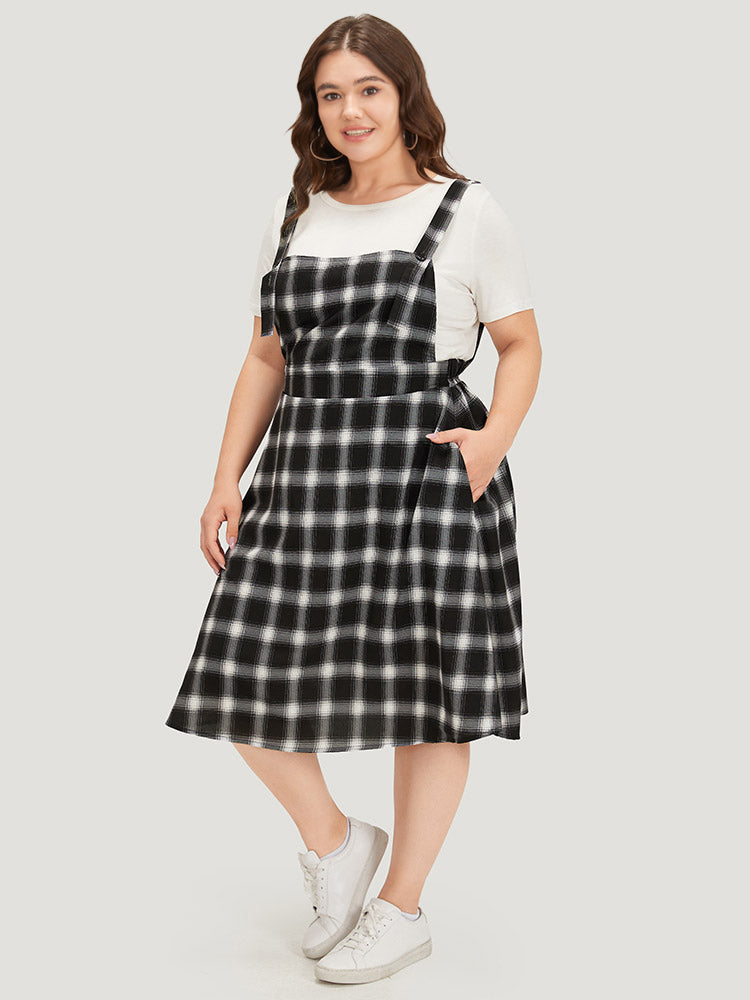 Plaid Pocket Elastic Waist Overall Cami Dress