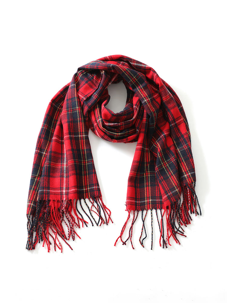 Letter Patched Plaid Print Fringe Trim Scarf