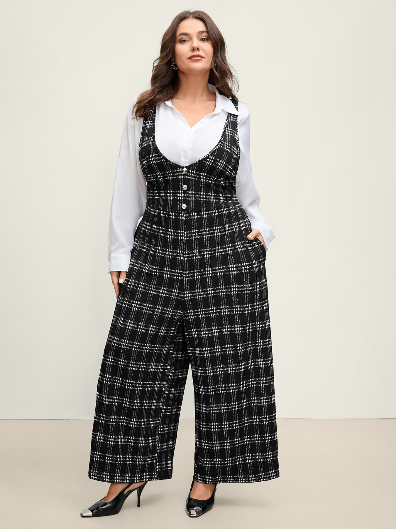 Plaid Print Overall Straps Wide-Leg Jumpsuit