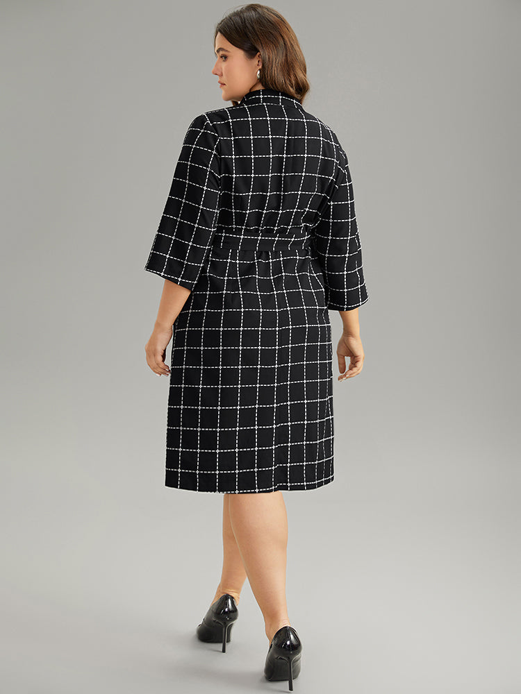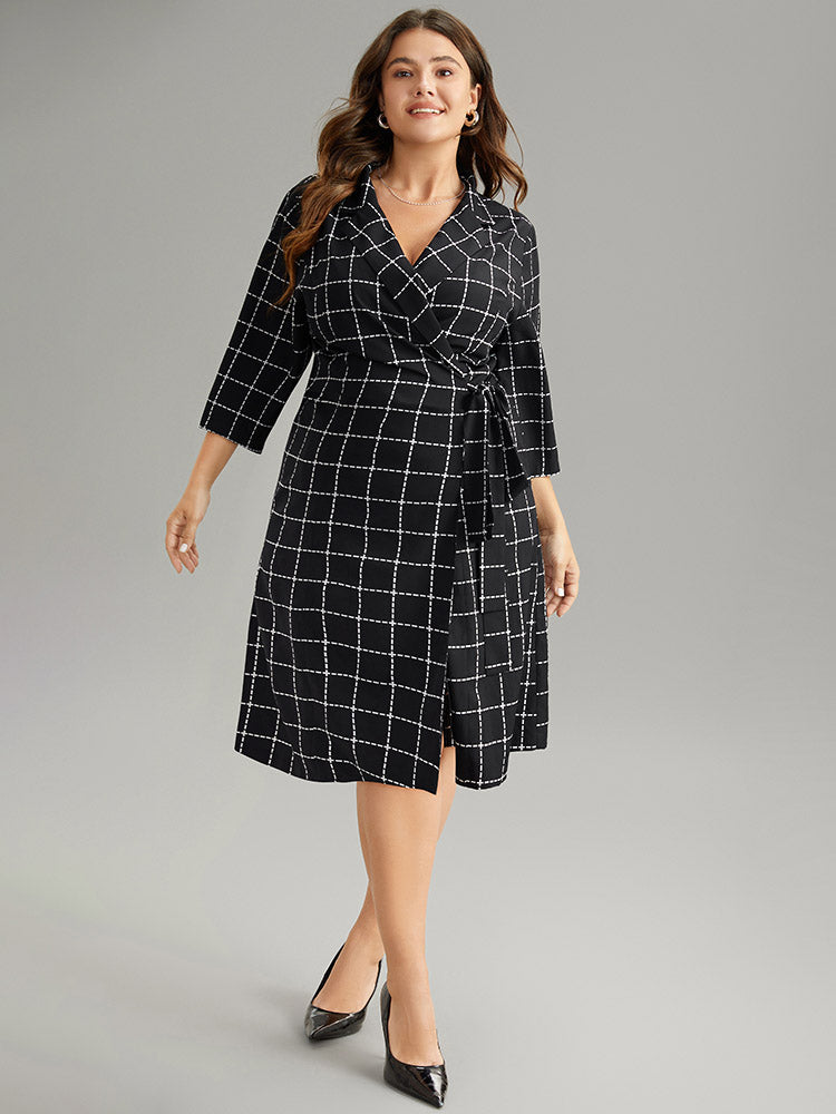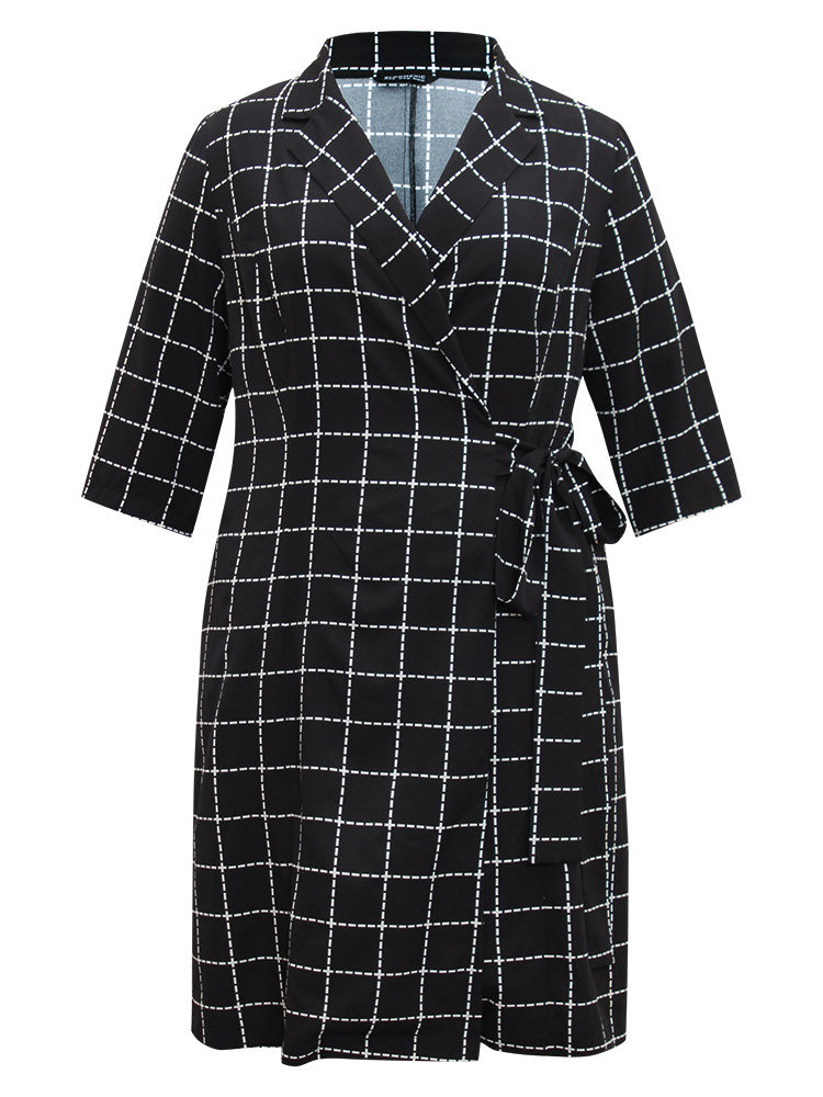 Plaid Suit Collar Pocket Ties Wrap Dress