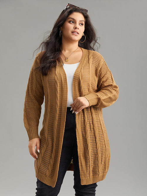 Plain Cable Knit Elastic Cuffs Cardigan