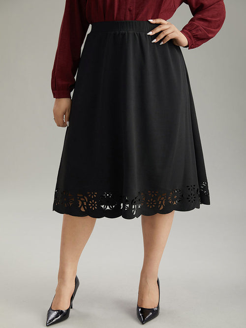 Plain Elastic Waist Pocket Laser Cut Skirt