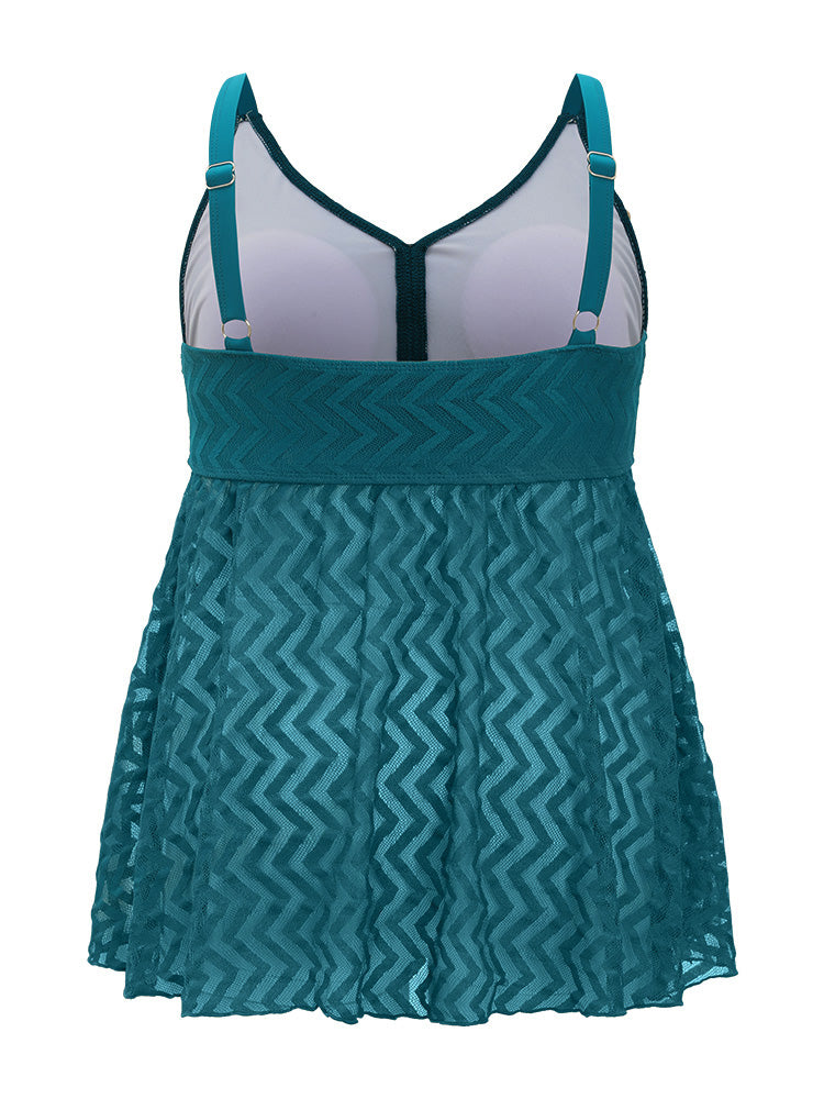 Plain Geometric Mesh Flutter Hem V Neck Tankini Top