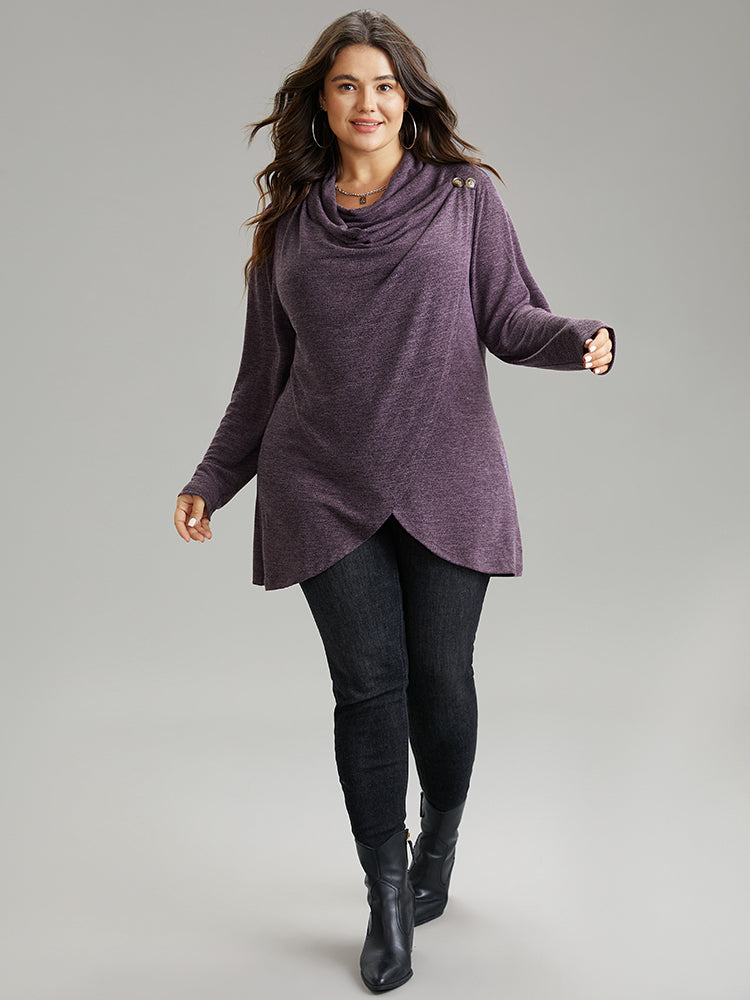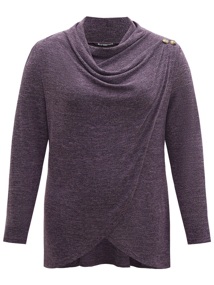 Plain Heather Cowl Neck Button Detail Sweatshirt